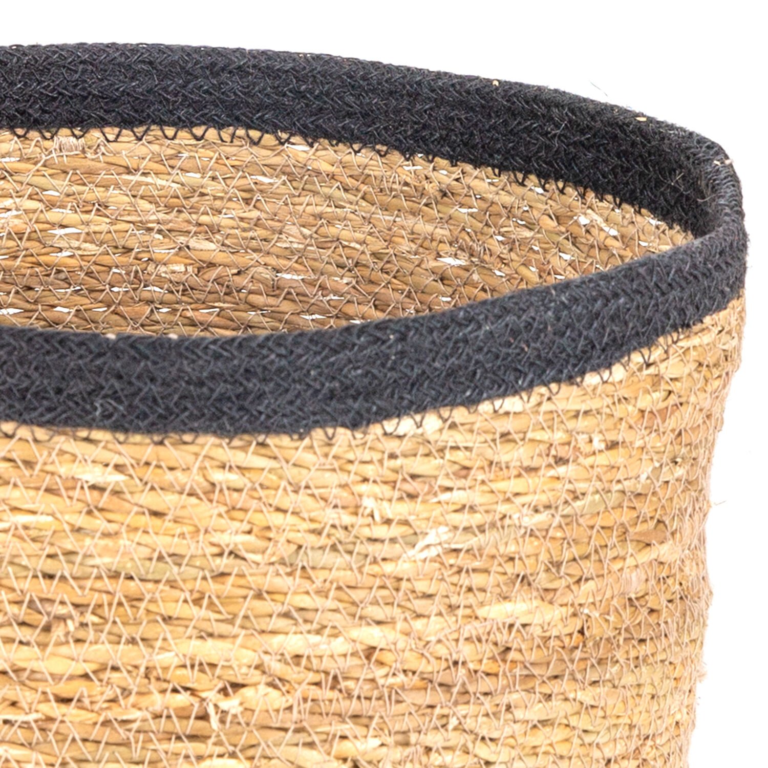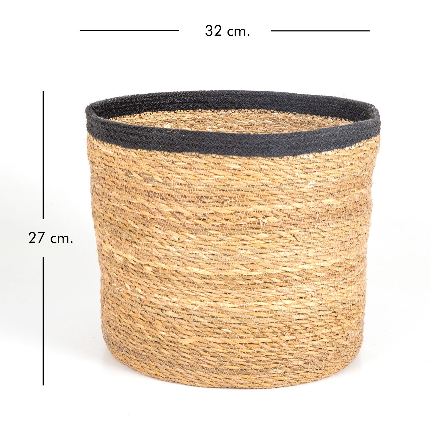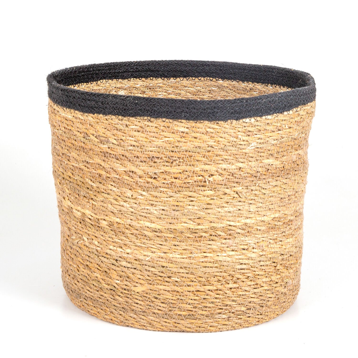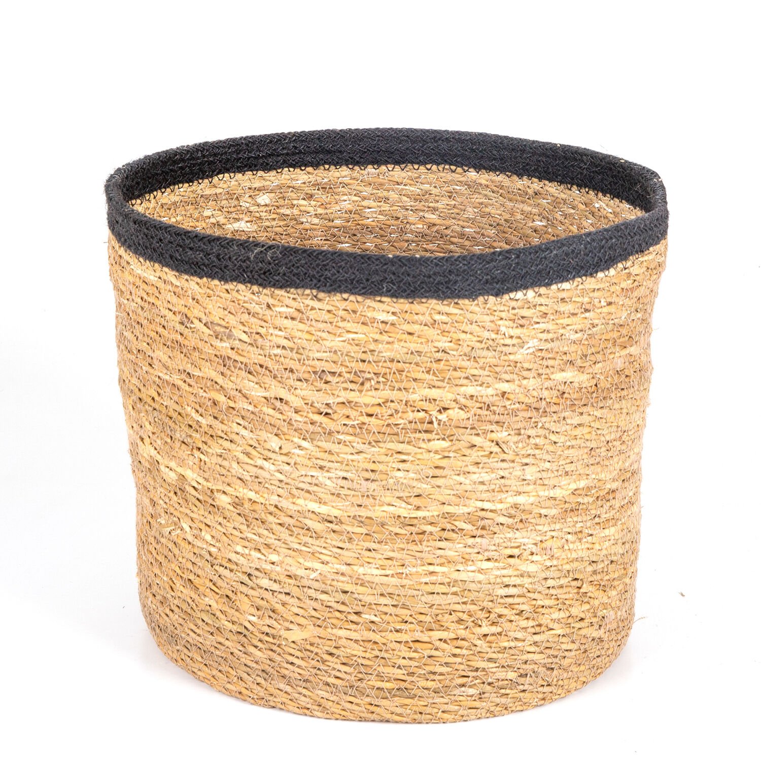 Hasır Sepet, Yuvarlak, Natural - Siyah Kuşaklı, Büyük, 32 x 27 cm