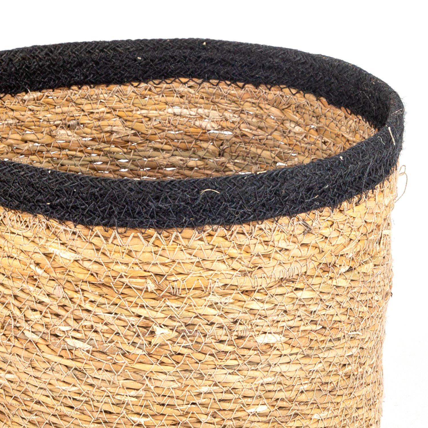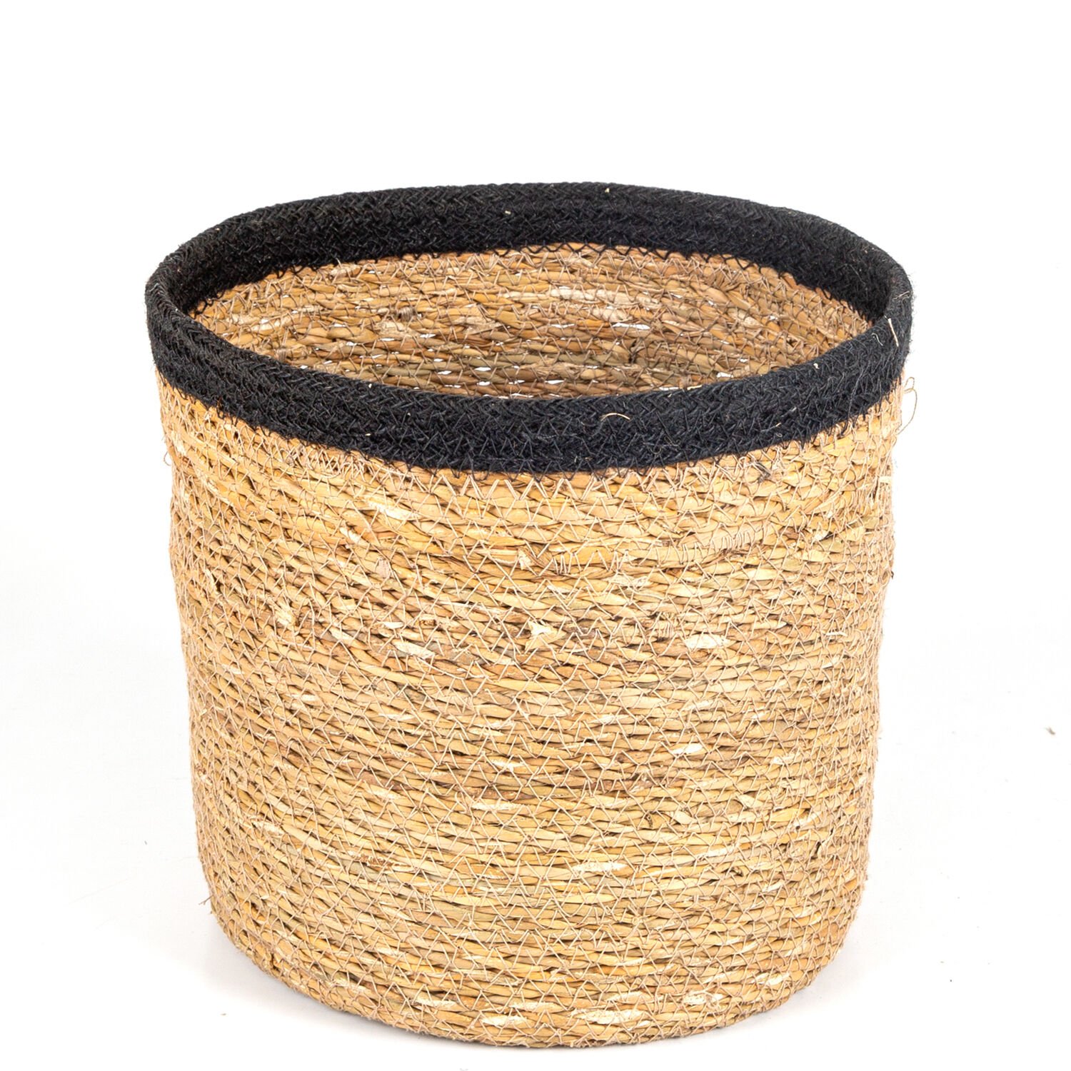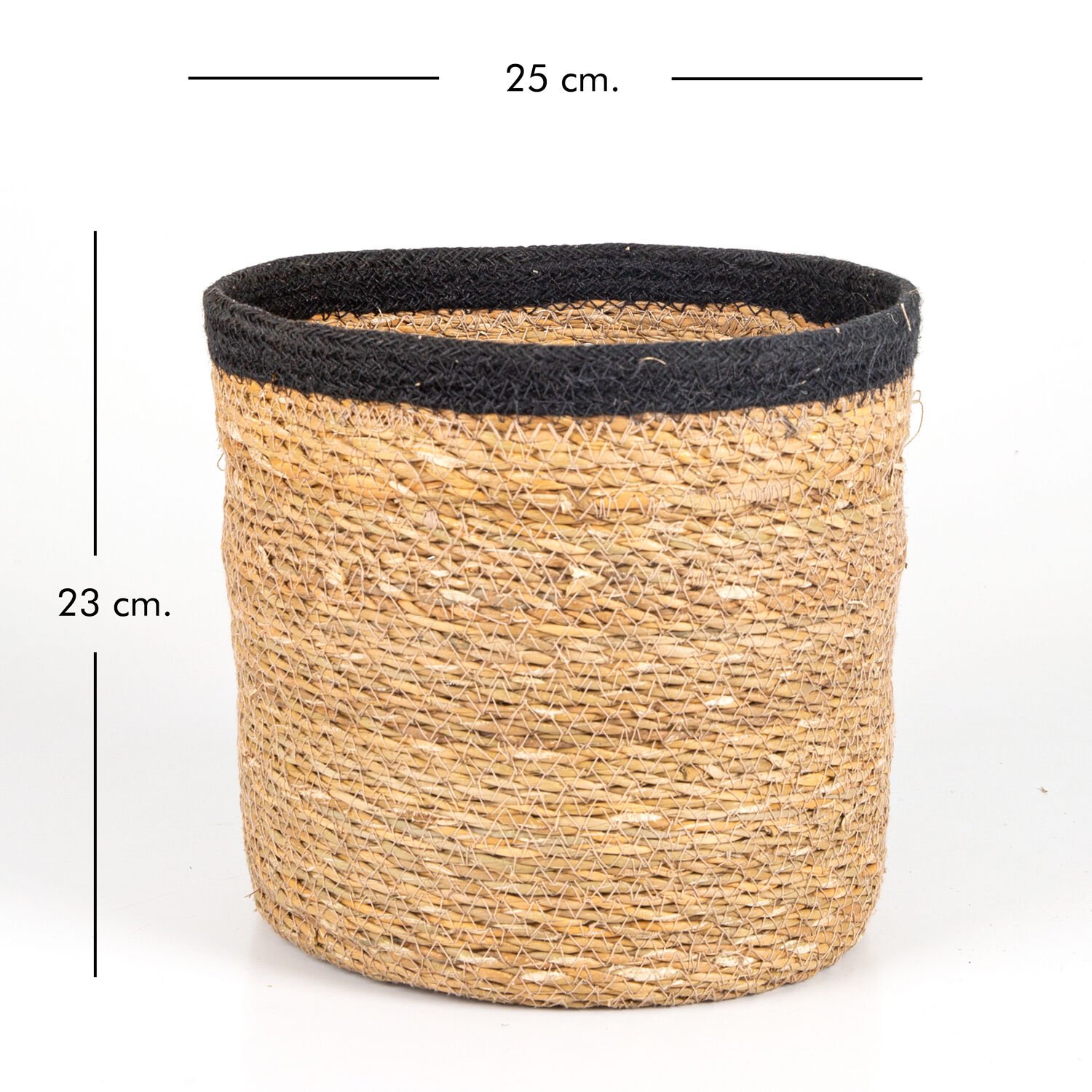 Hasır Sepet, Yuvarlak, Natural - Siyah Kuşaklı, Küçük, 25 x 23 cm