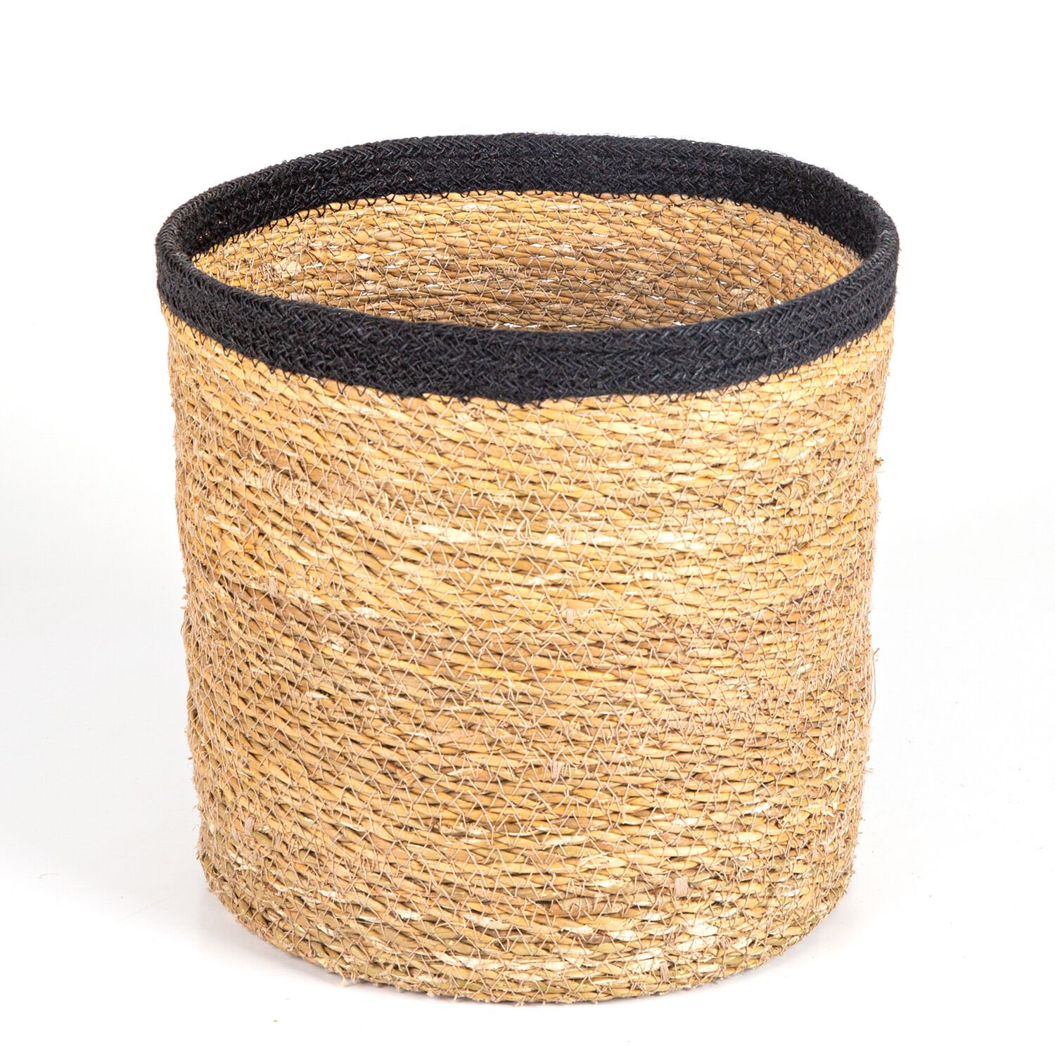 Hasır Sepet, Yuvarlak, Natural - Siyah Kuşaklı, Orta, 28 x 26 cm