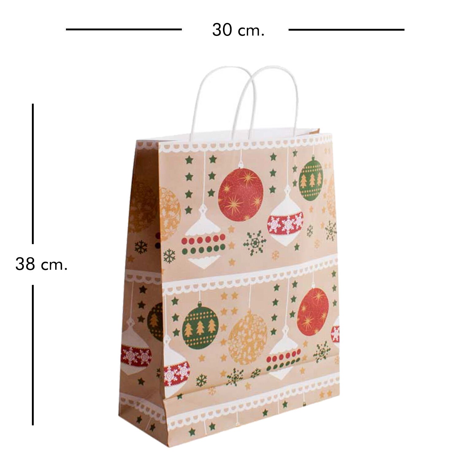 Hediye Poşeti, Yılbaşı Desenli, Yılbaşı Topları Modeli - 30x11,5x38 cm
