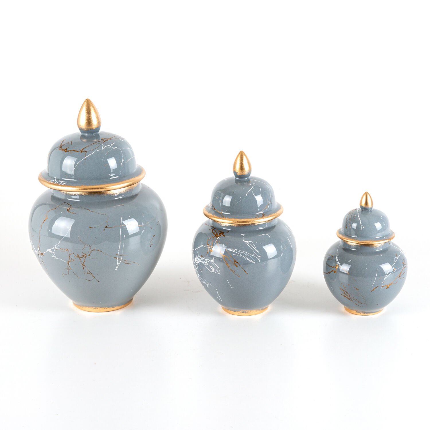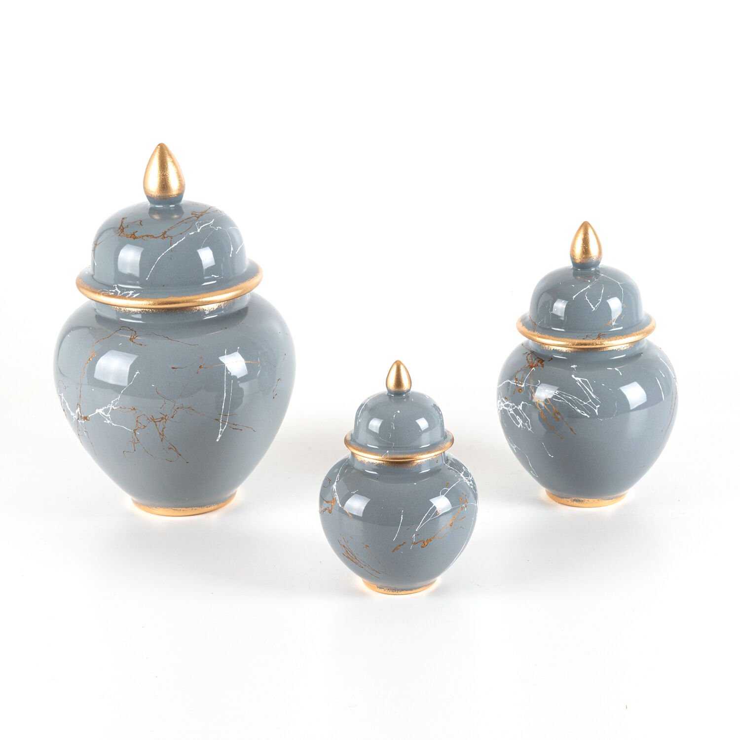 Jar Set, Seramik, Mermer Dekor, Gri - 3'lü, (12X18) (16X23) (21X31) cm