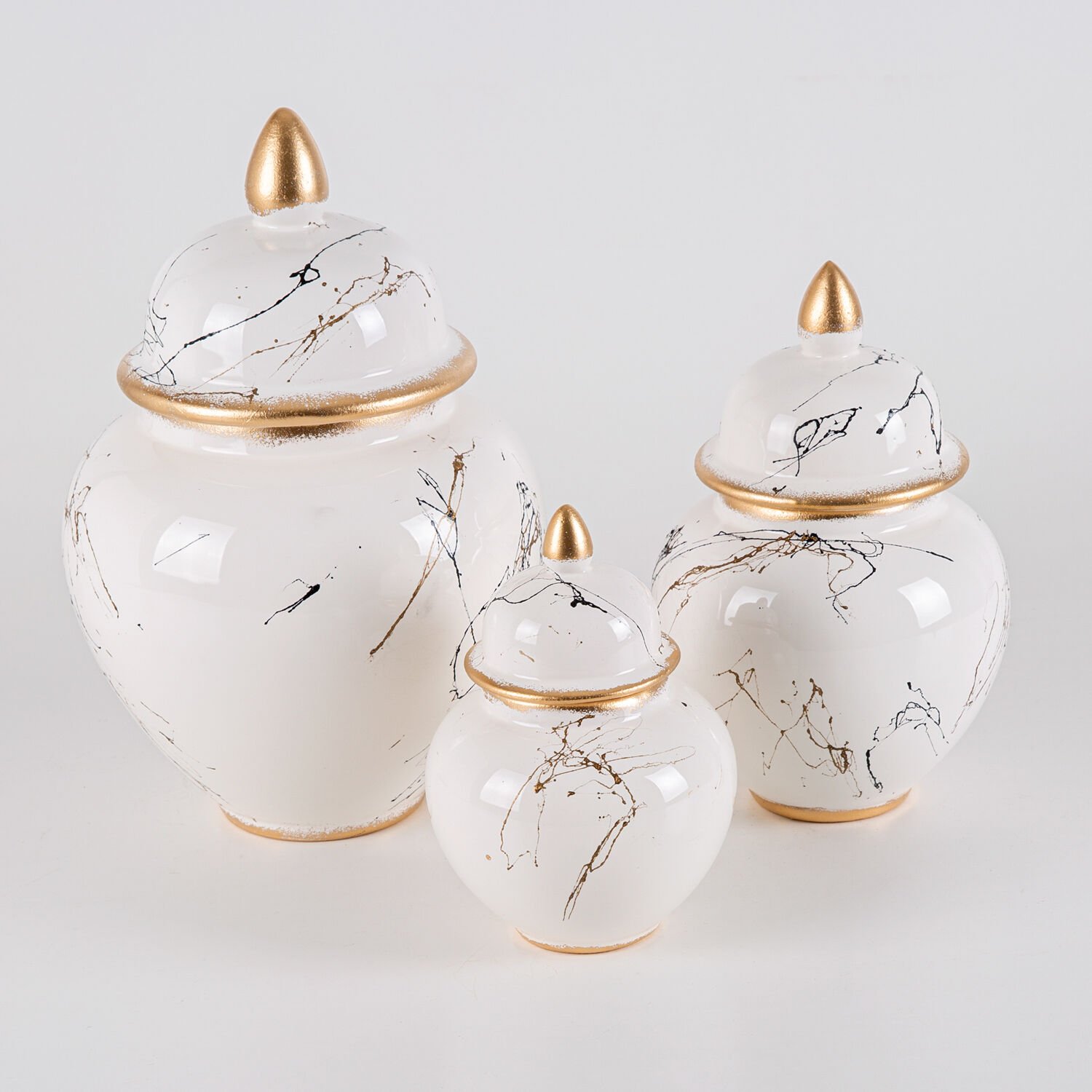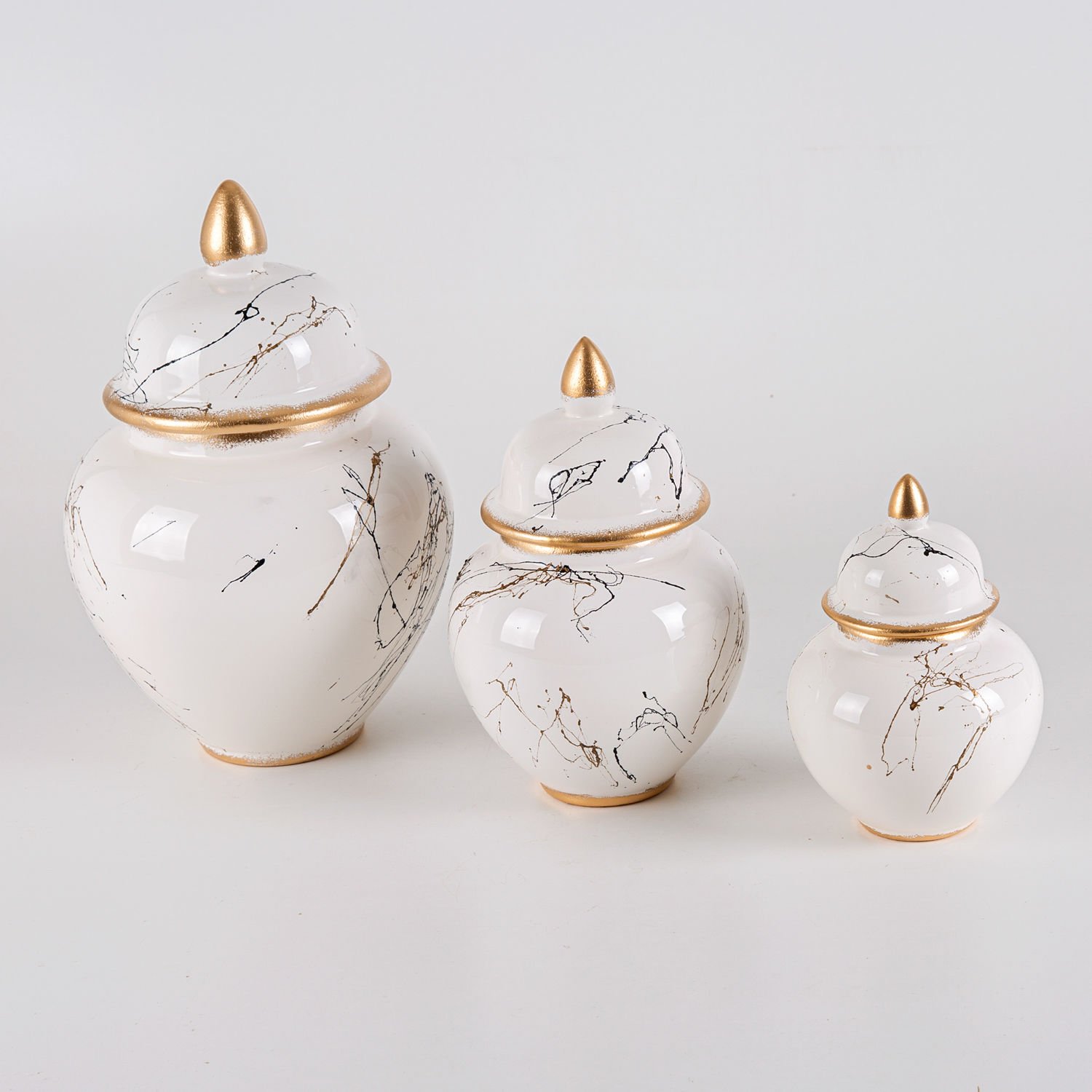 Seramik 3'lü Jar Set Mermer Dekor Krem