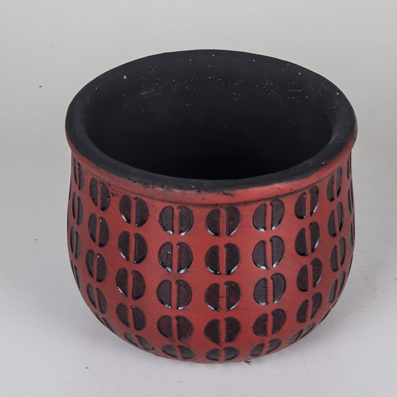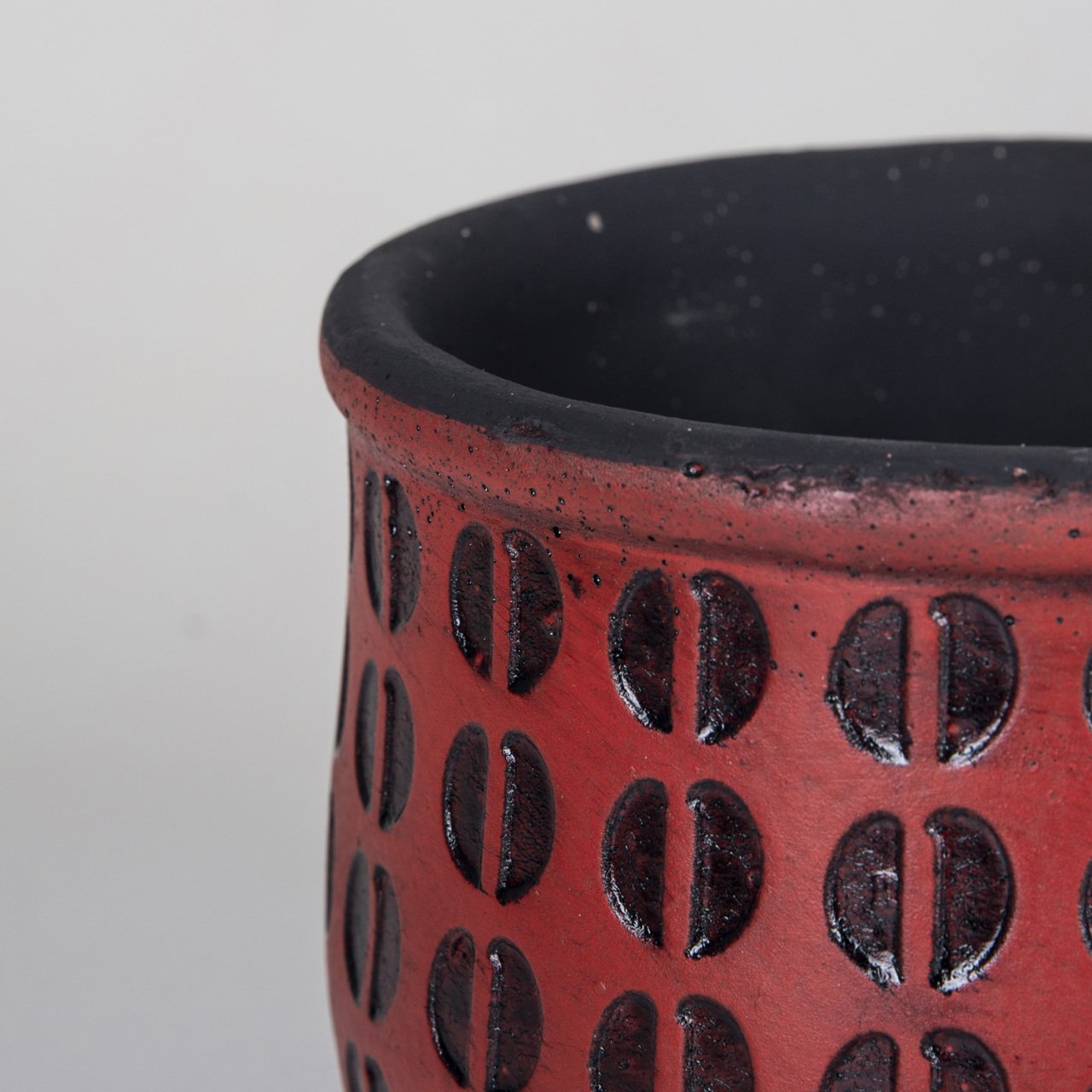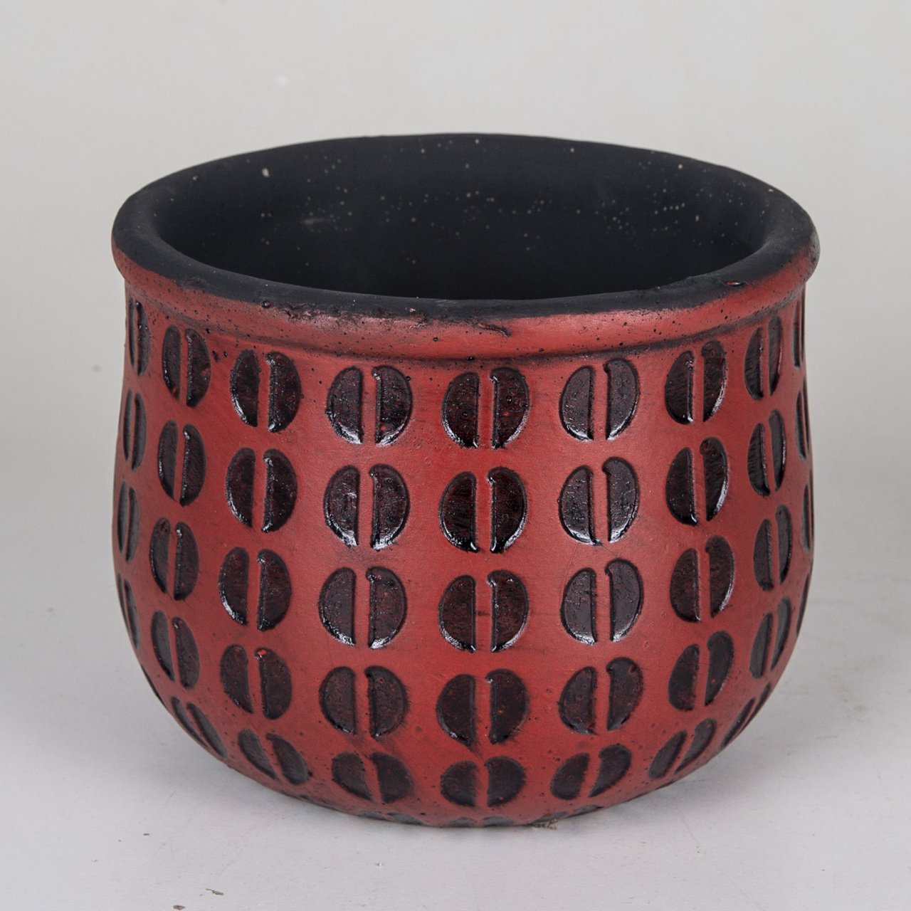 Kahve Çekirdeği Desenli Büyük Boy Bordo Siyah Beton Saksı 2 Lt