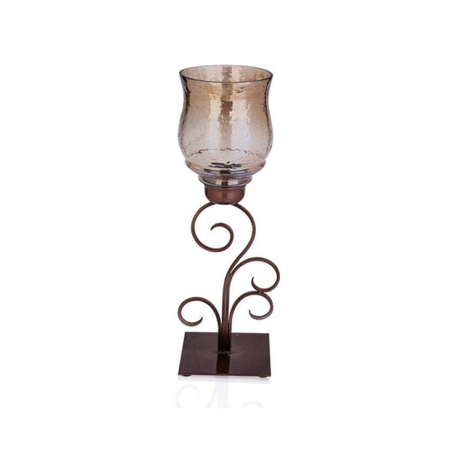 Kahverengi Metal Üstü Cam Mumluk 16*16*44