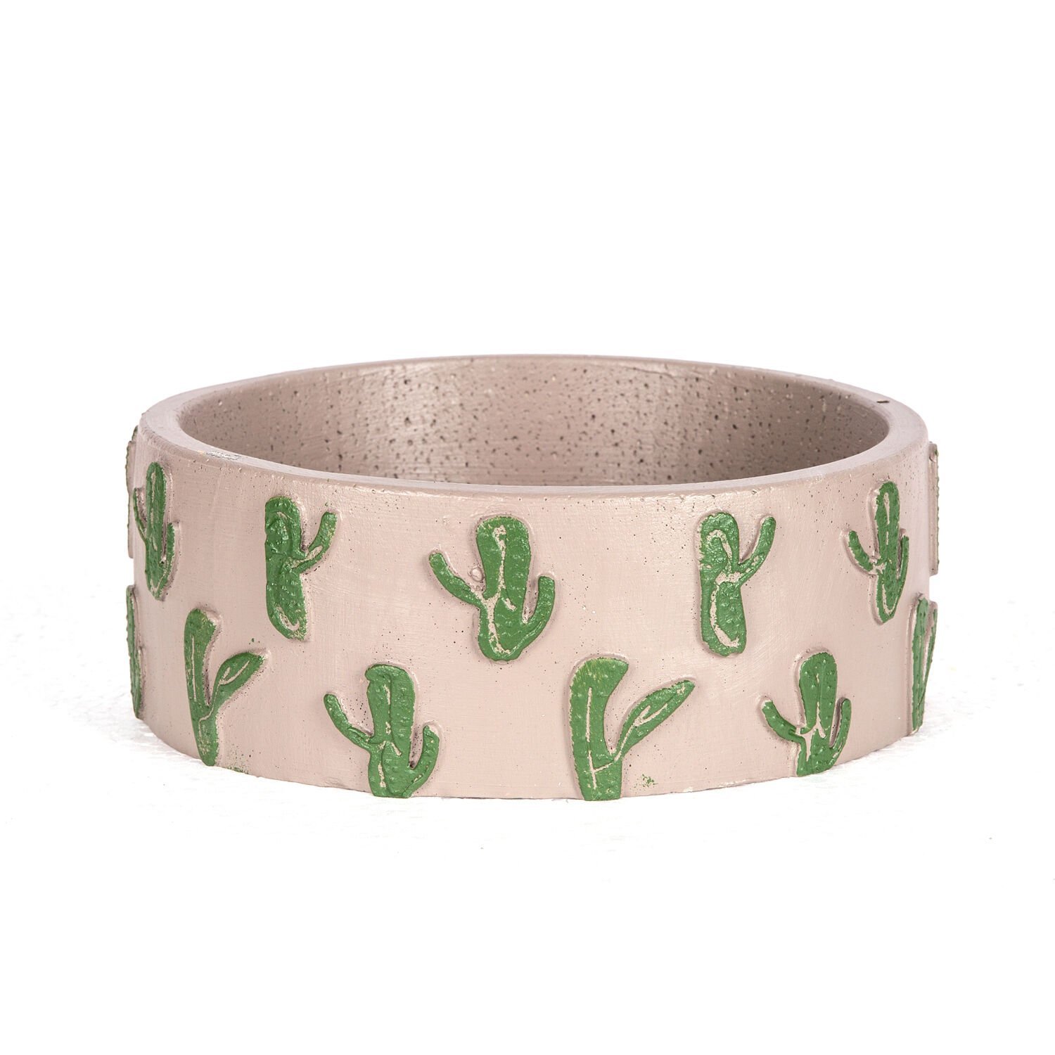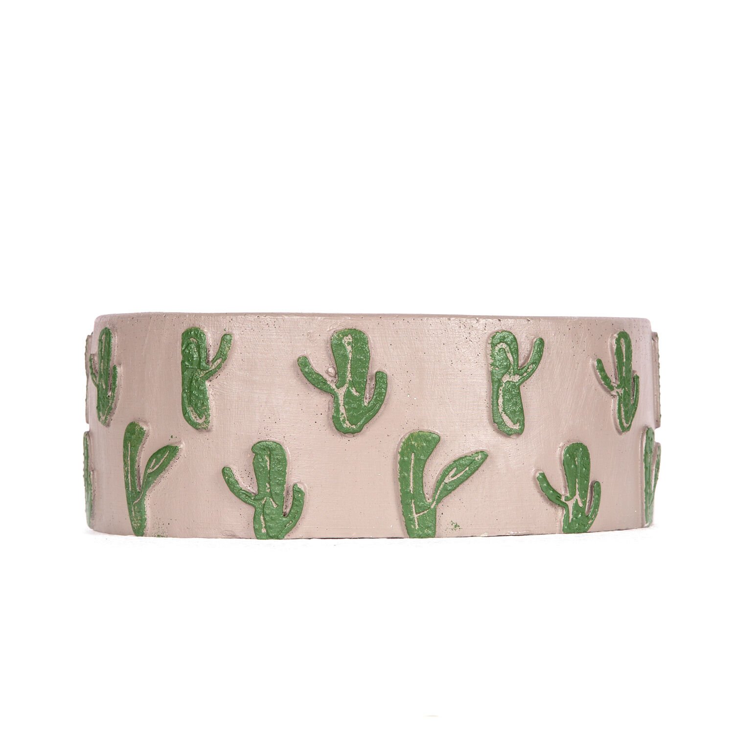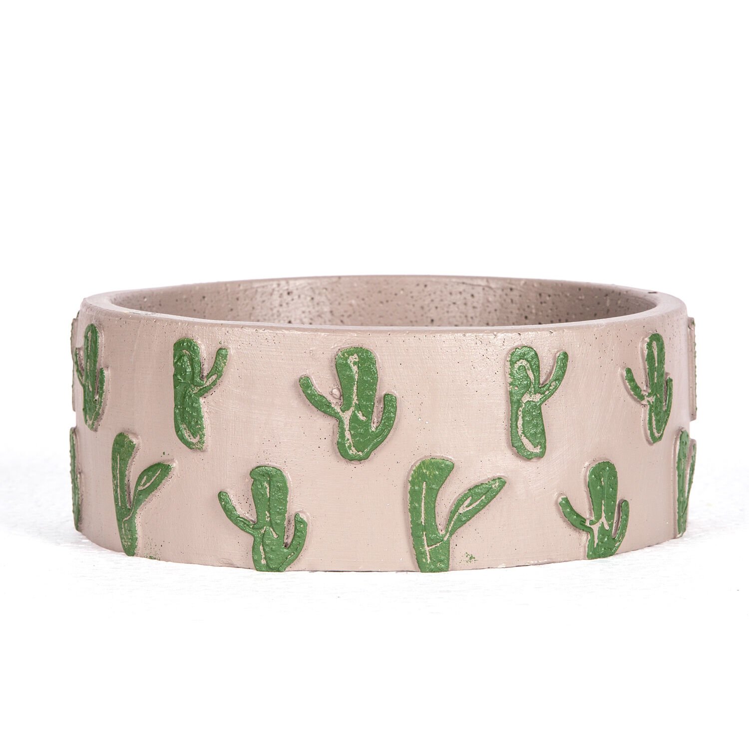 Kaktüs Kabartmalı Aranjman Yuvarlak Beton Saksı Açık Vizon-Yeşil 22x8,5 Cm.