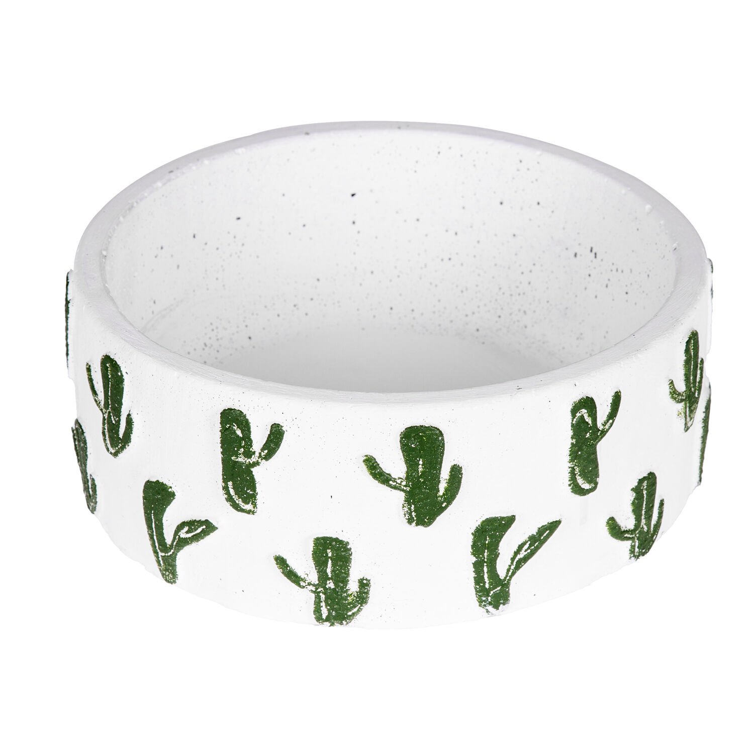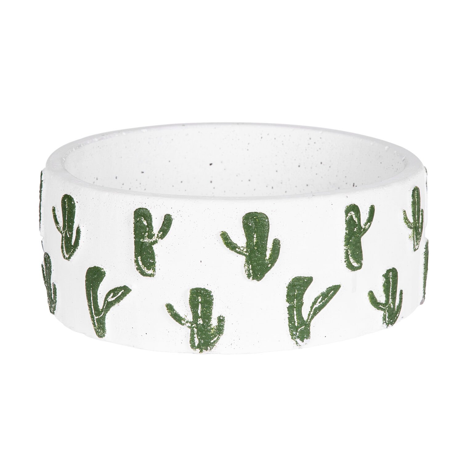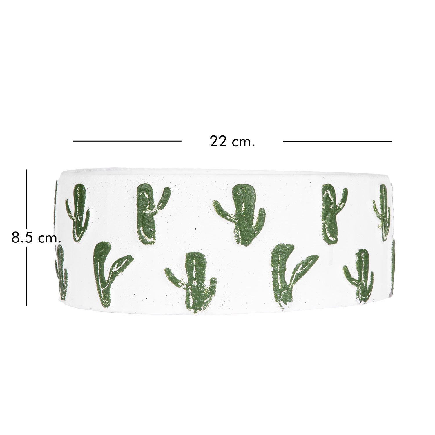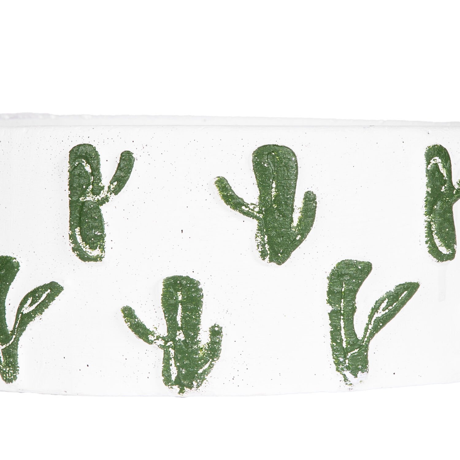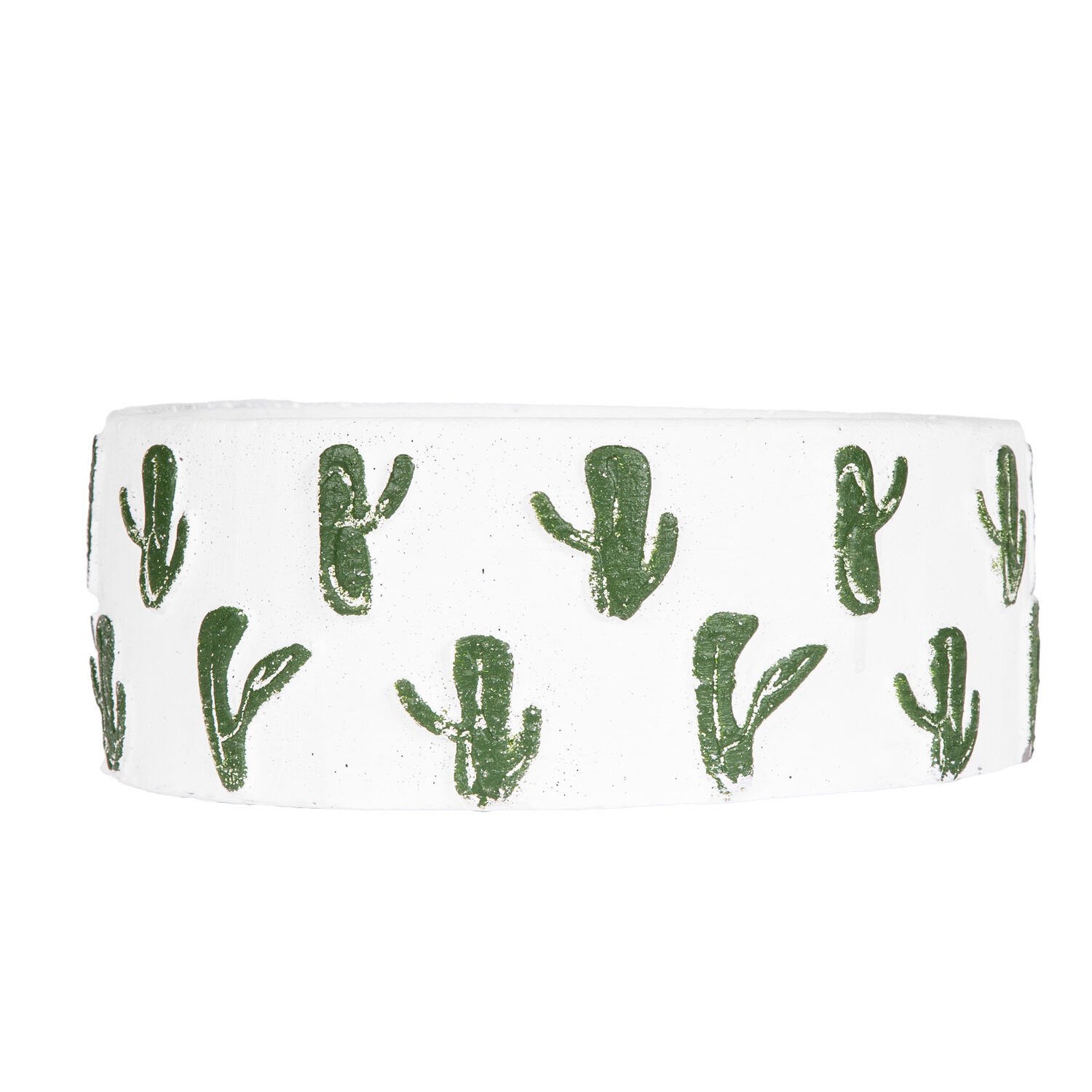 Kaktüs Aranjman, Kaktüs Kabartmalı, Beyaz-Yeşil - Yuvarlak Beton Saksı, 22x8,5 cm
