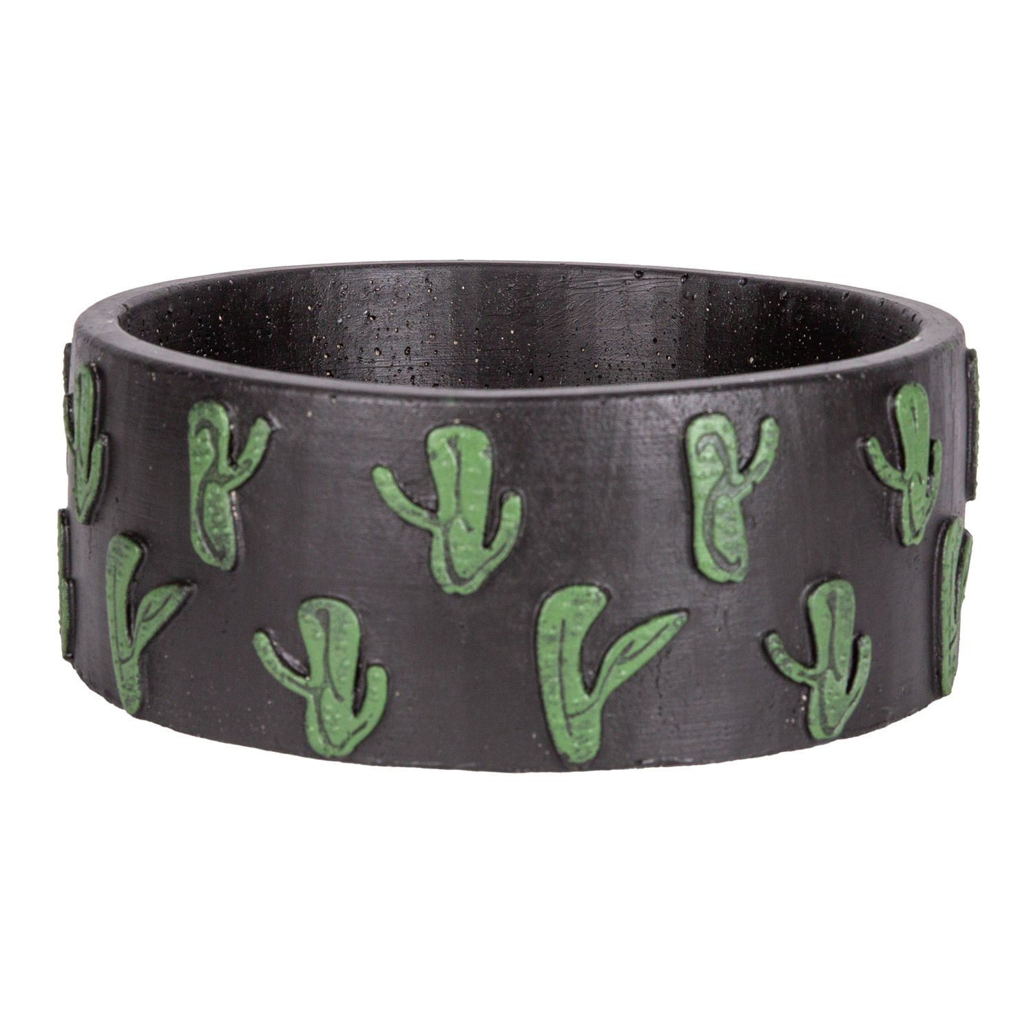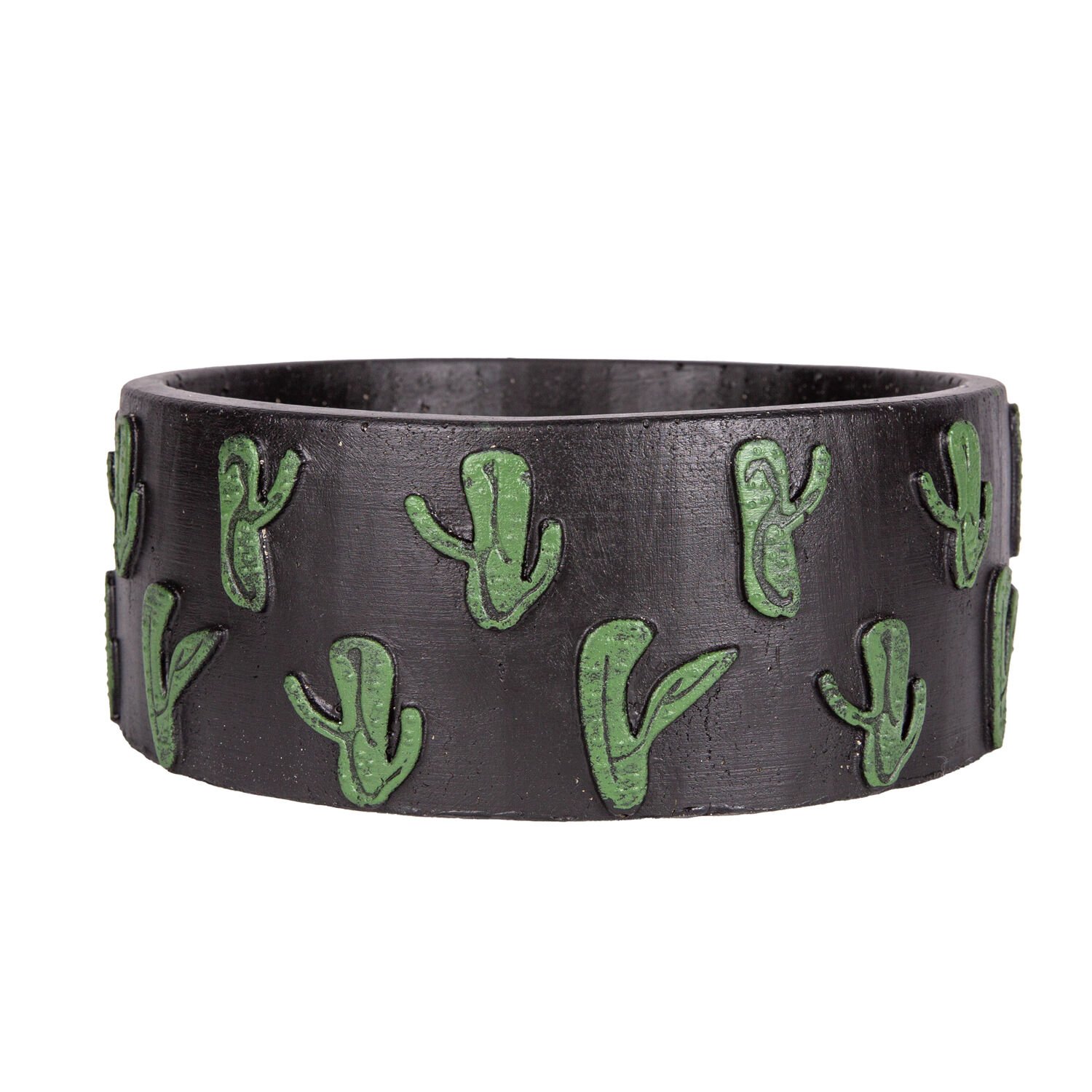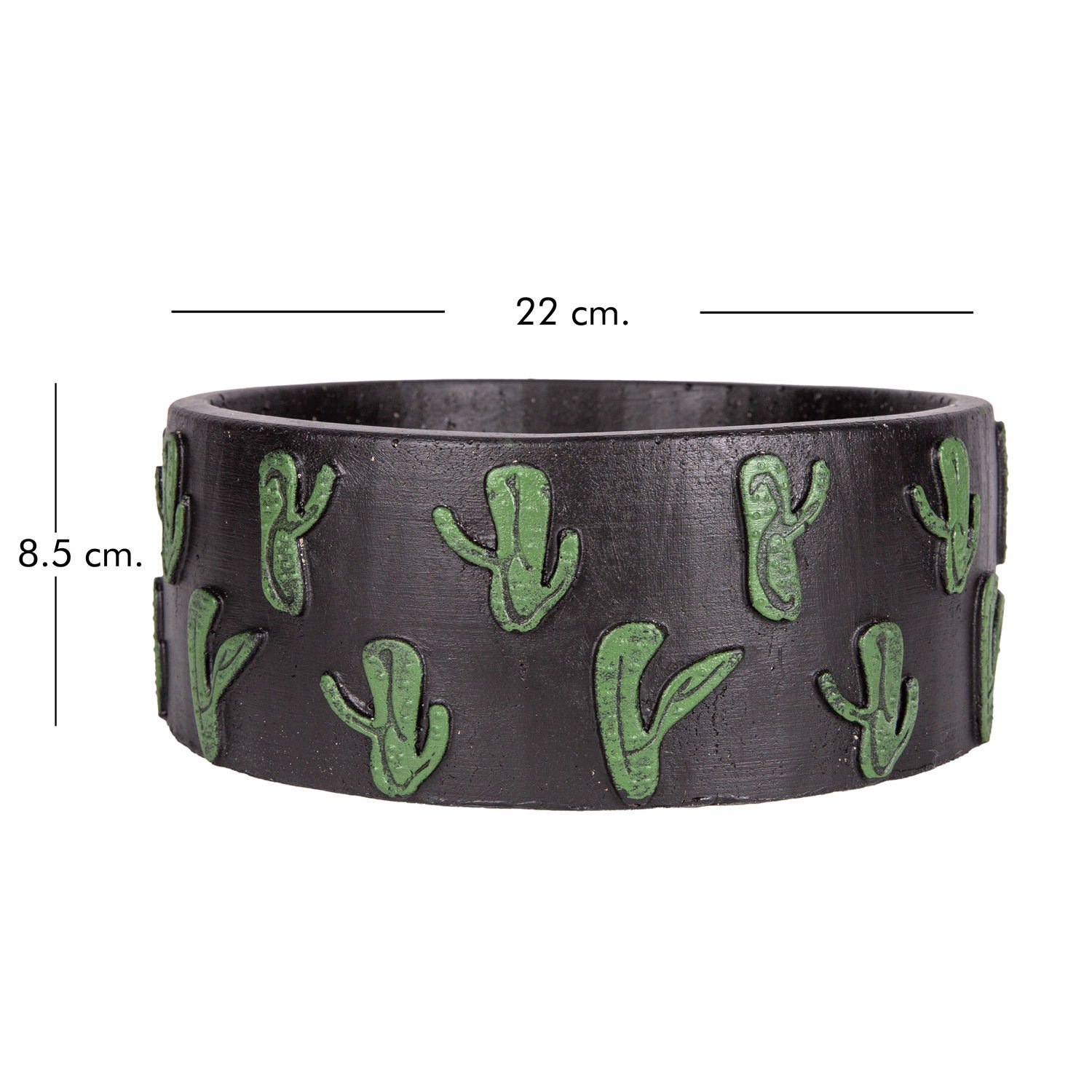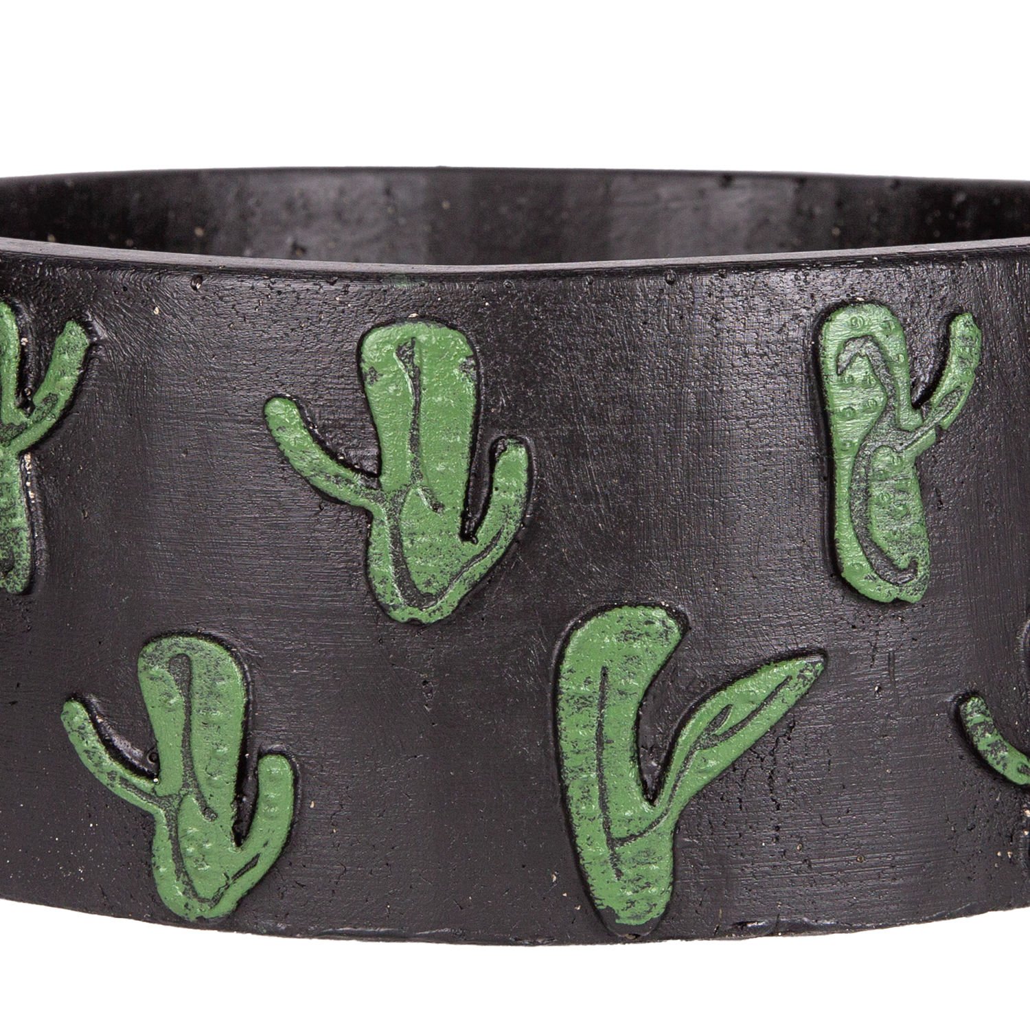 Kaktüs Aranjman, Kaktüs Kabartmalı, Siyah-Yeşil - Yuvarlak Beton Saksı, 22x8,5 cm