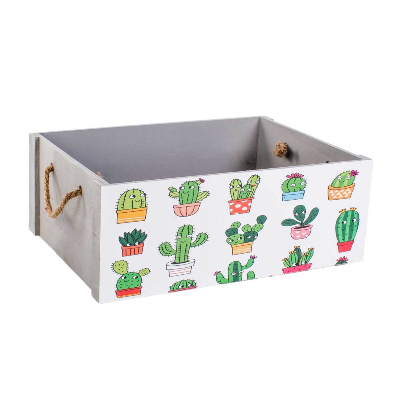 Kaktüs desenli ahşap kasa 40x28x15 cm - Evi düzenlemek hiç bu kadar eğlenceli olmamıştı. Oyuncak, dergi ya da havluları toplayan ahşap kasalar neşeli kaktüsleriyle evlere renk kattı. Hem samimi, hem de çok şık. Üstelik kaktüslü ahşap kasa .