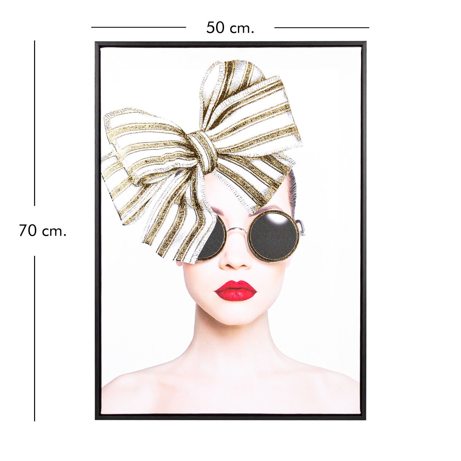 Kanvas Tablo, Kurdelalı Kadın, Siyah Ahşap Çerçeveli, Gold Kabartmalı, Gold-Beyaz - 50x3x70 cm