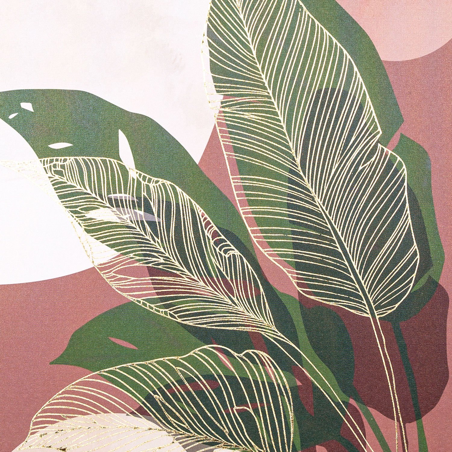 Kanvas Tablo, Palmiye Yaprağı, Doğal Ahşap Çerçeveli, Gold Kabartmalı, Bordo-Yeşil - 50x2,5x70 cm