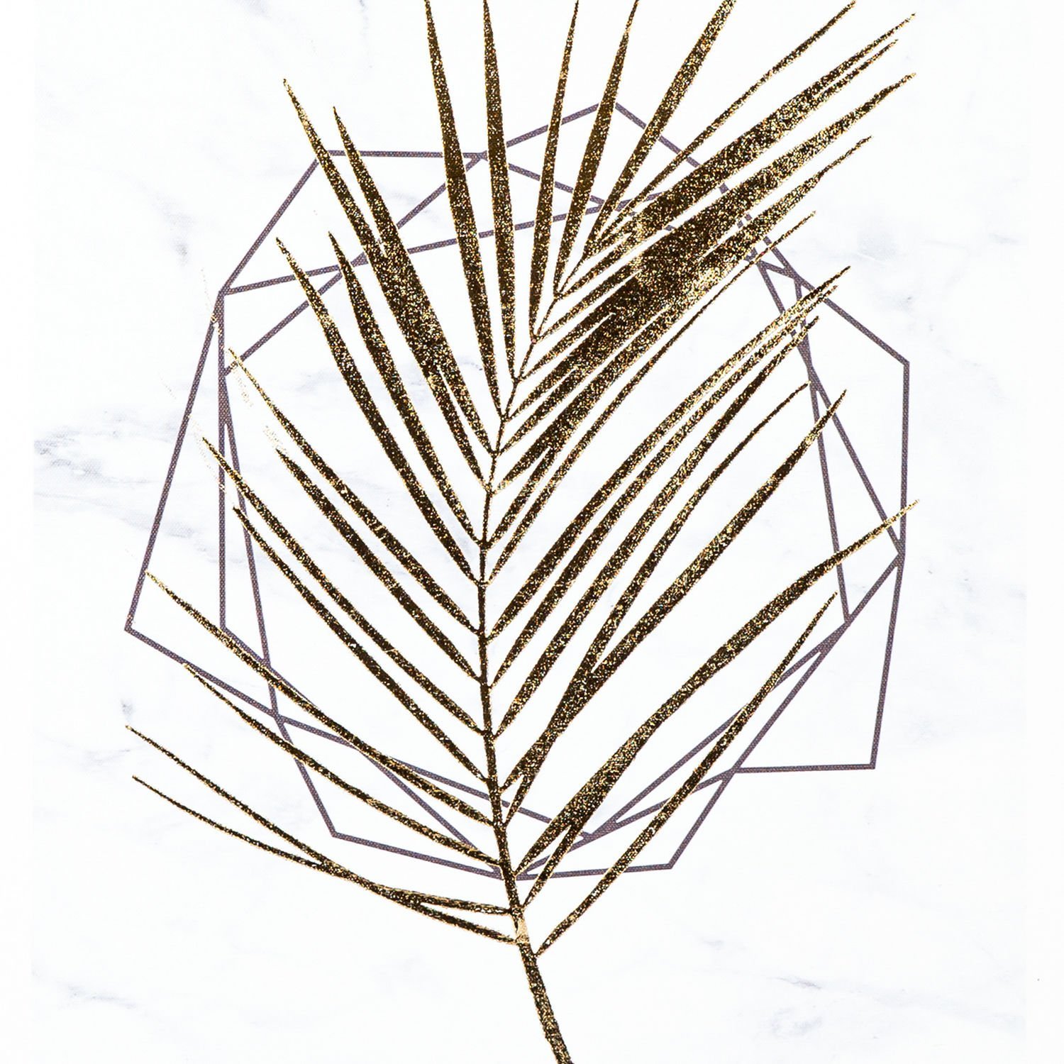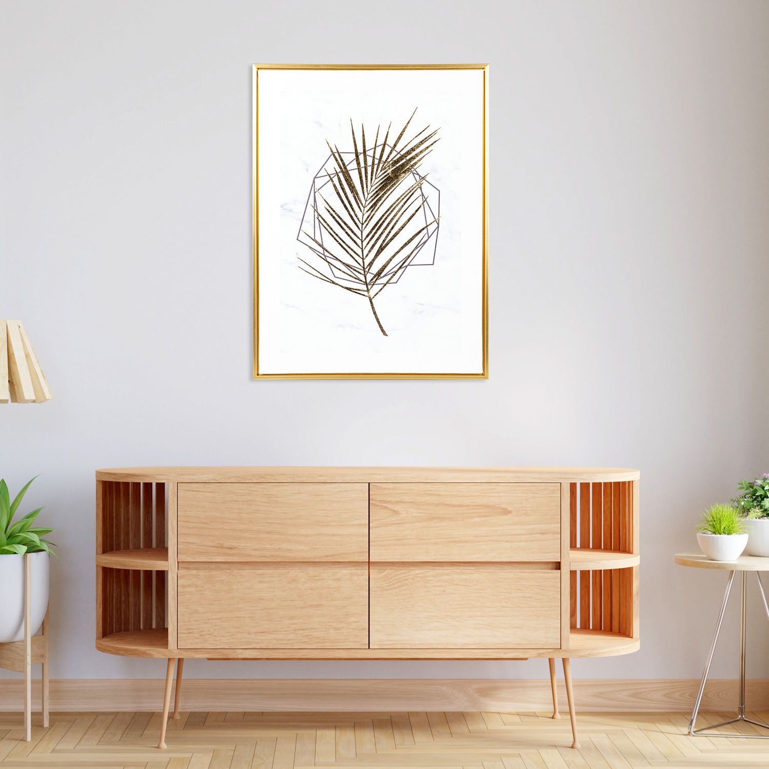 Kanvas Tablo, Palmiye Yaprağı, Gold Renk Ahşap Çerçeveli, Gold Kabartmalı, Gold-Beyaz - 45x2,5x60 cm