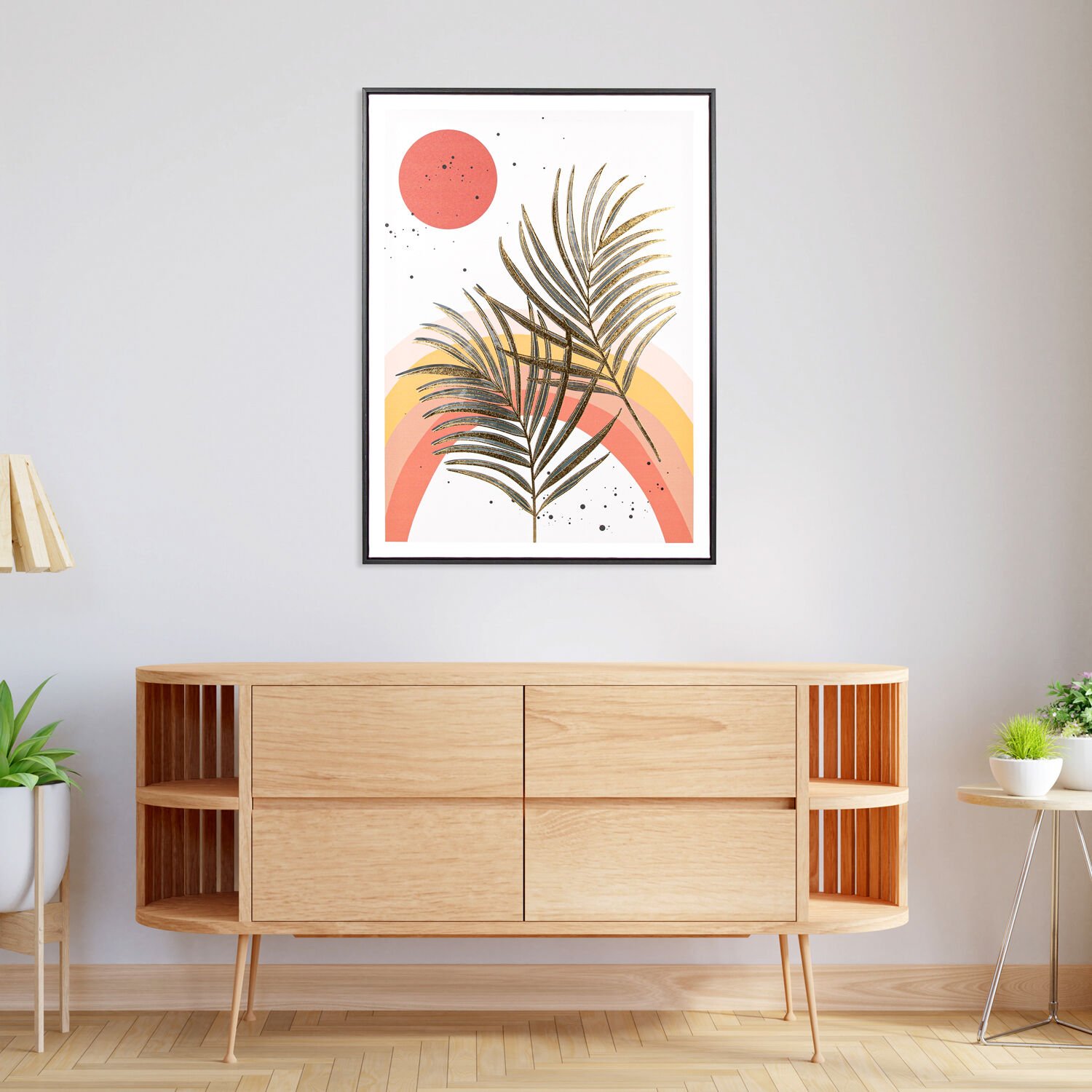 Siyah Ahşap Çerçeveli Gold Kabartmalı Palmiye Yaprağı Kanvas Tablo Bordo-Yeşil 60x80x3 Cm.