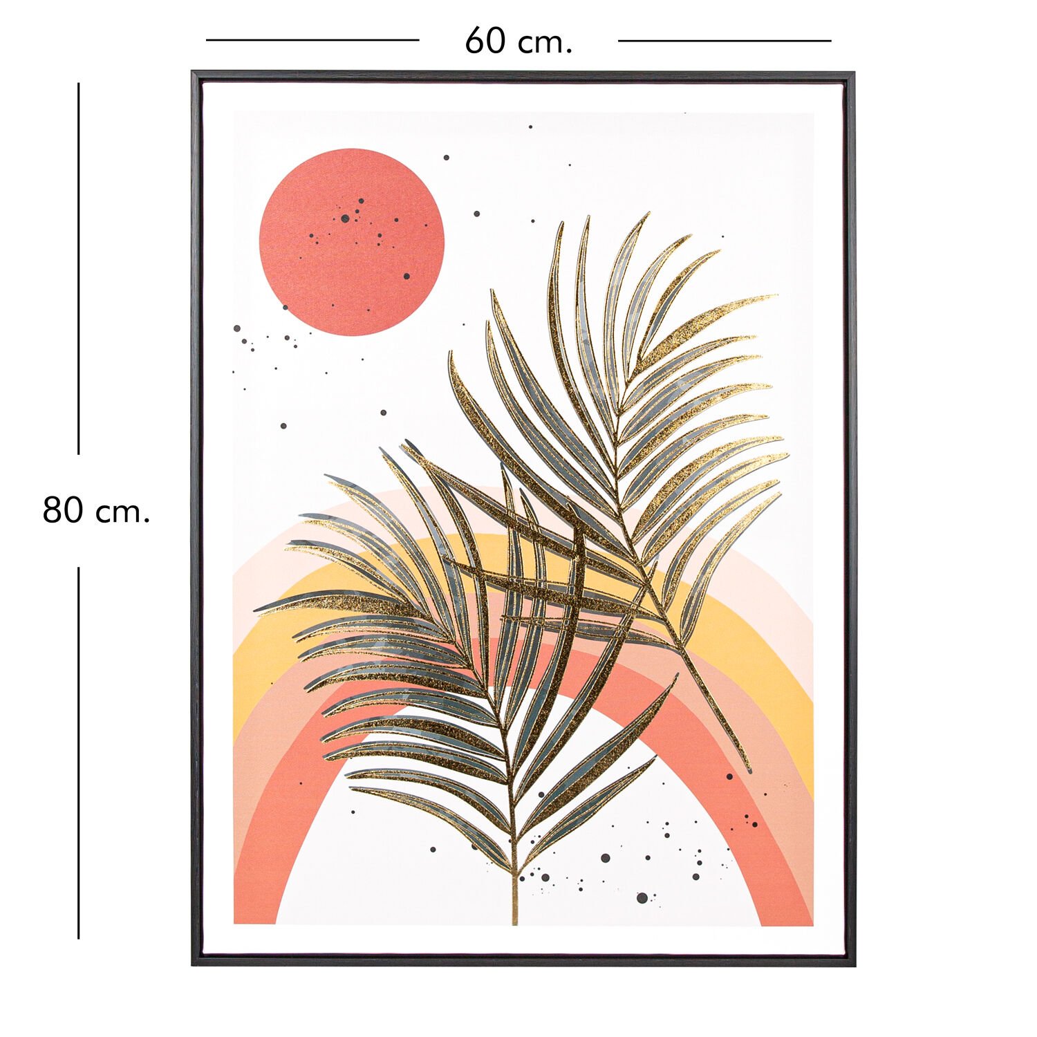 Kanvas Tablo, Palmiye Yaprağı, Siyah Ahşap Çerçeveli, Gold Kabartmalı, Bordo-Yeşil - 60x3x80 cm