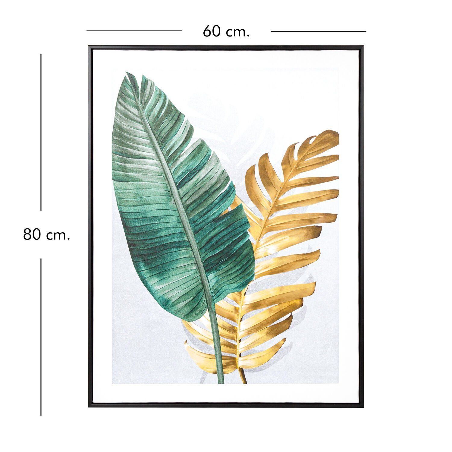 Siyah Ahşap Çerçeveli Palmiye Yaprağı Kanvas Tablo Gold-Yeşil 60x80x3 Cm.