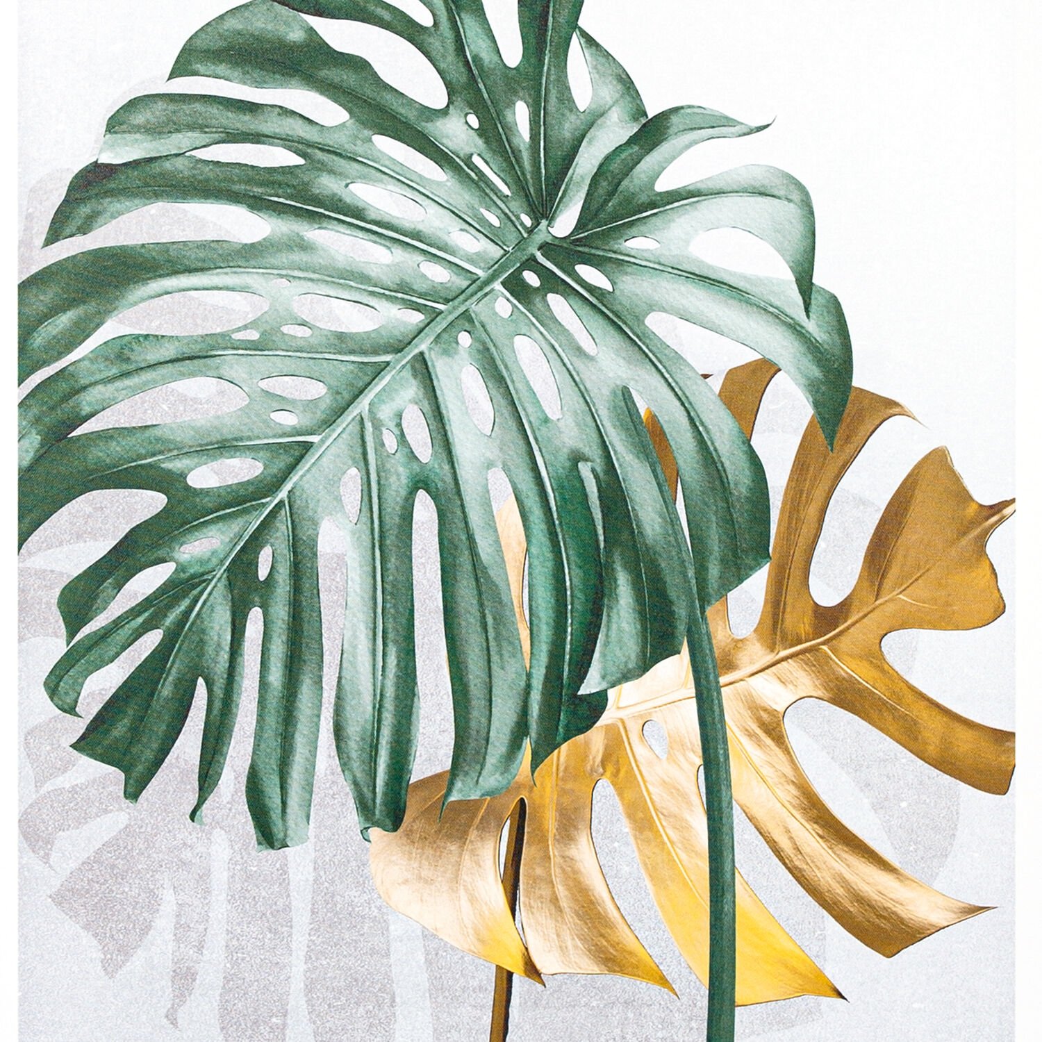 Siyah Ahşap Çerçeveli Palmiye Yaprağı Kanvas Tablo Gold-Yeşil 60x80x3 Cm.