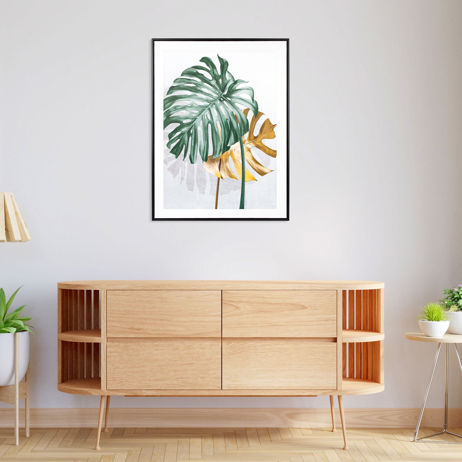 • Bir adet Siyah Ahşap Çerçeveli Palmiye Yaprağı Kanvas Tablo