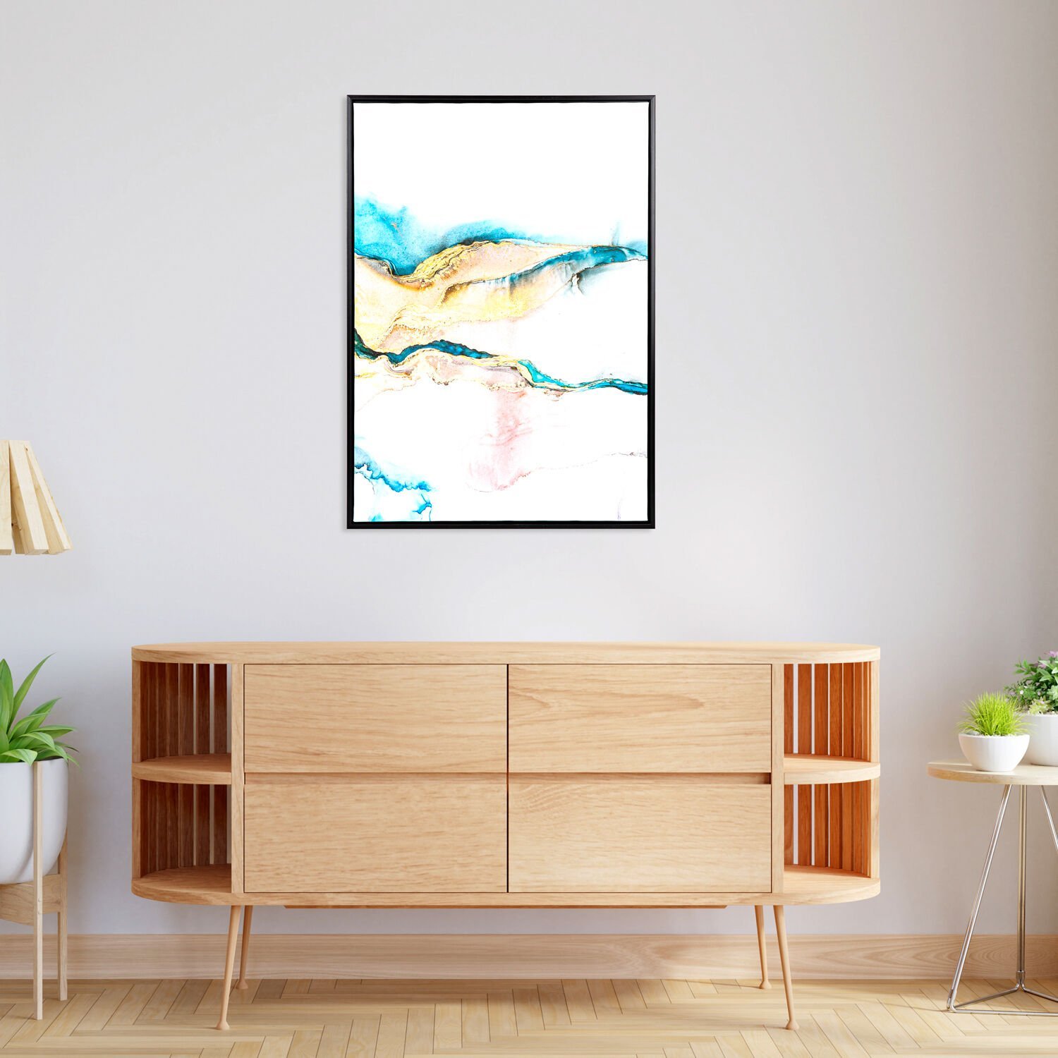 Siyah Ahşap Çerçeveli Soyut Kanvas Tablo Mavi-Sarı 50x70x3 Cm.