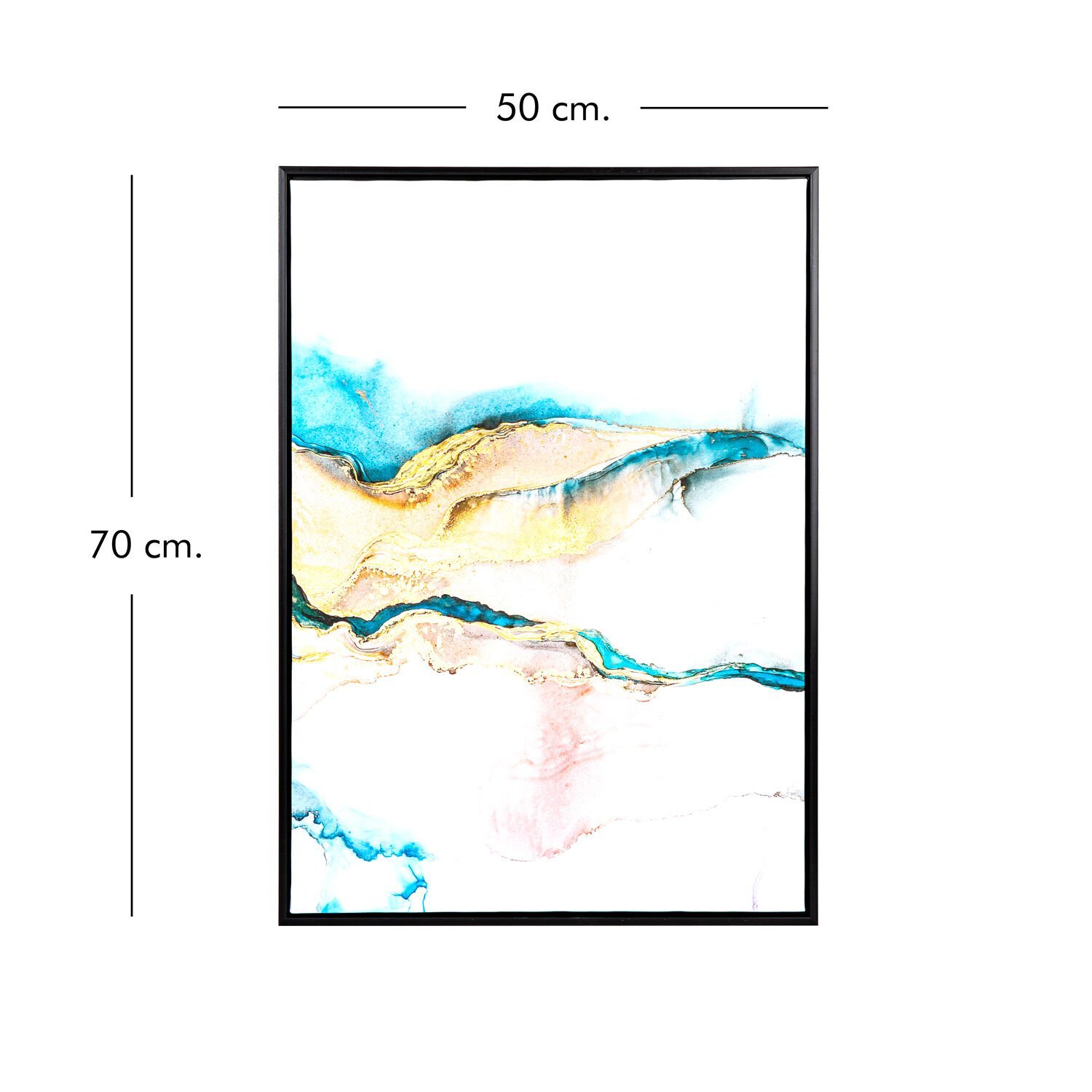 Kanvas Tablo, Soyut, Siyah Ahşap Çerçeveli, Mavi-Sarı - 50x3x70 cm
