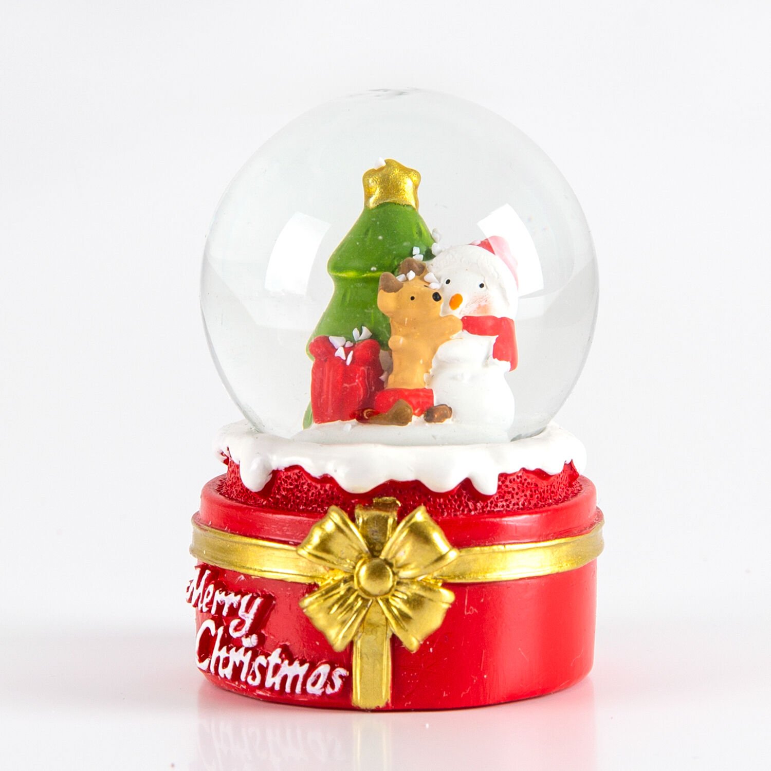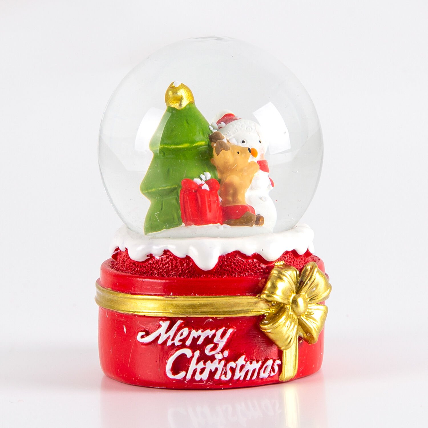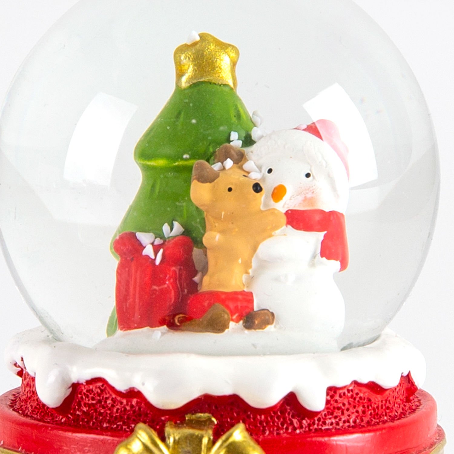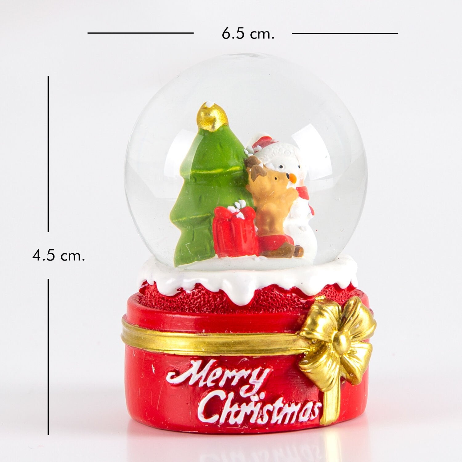 Kar Küresi, Kardan Adam, Sevimli Köpek ve Çam Ağacı Figürlü, Kırmızı-Beyaz - 6,5x4,5 cm