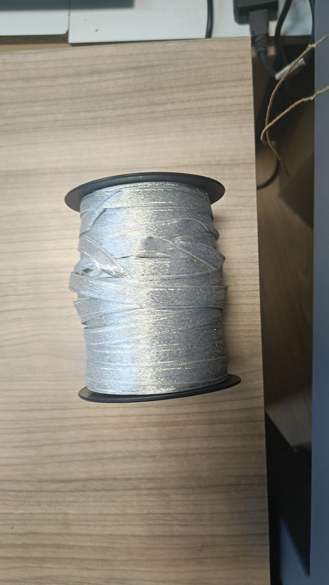 Kurdele, Saten, Gümüş Simli - 10 mm, 1 mt