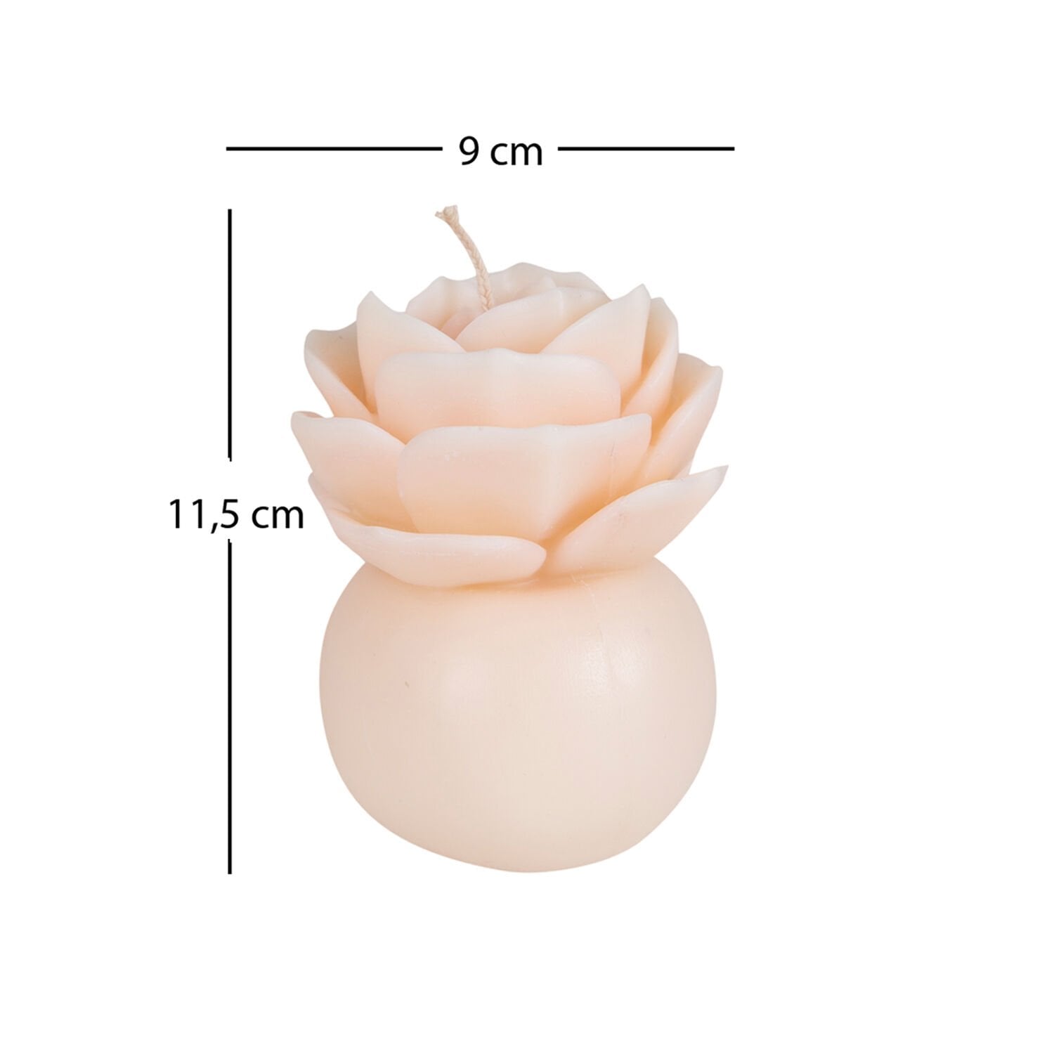 - Bir adet Dekoratif Gül Buketli Küre Mum Krem 9 x 12 cm.