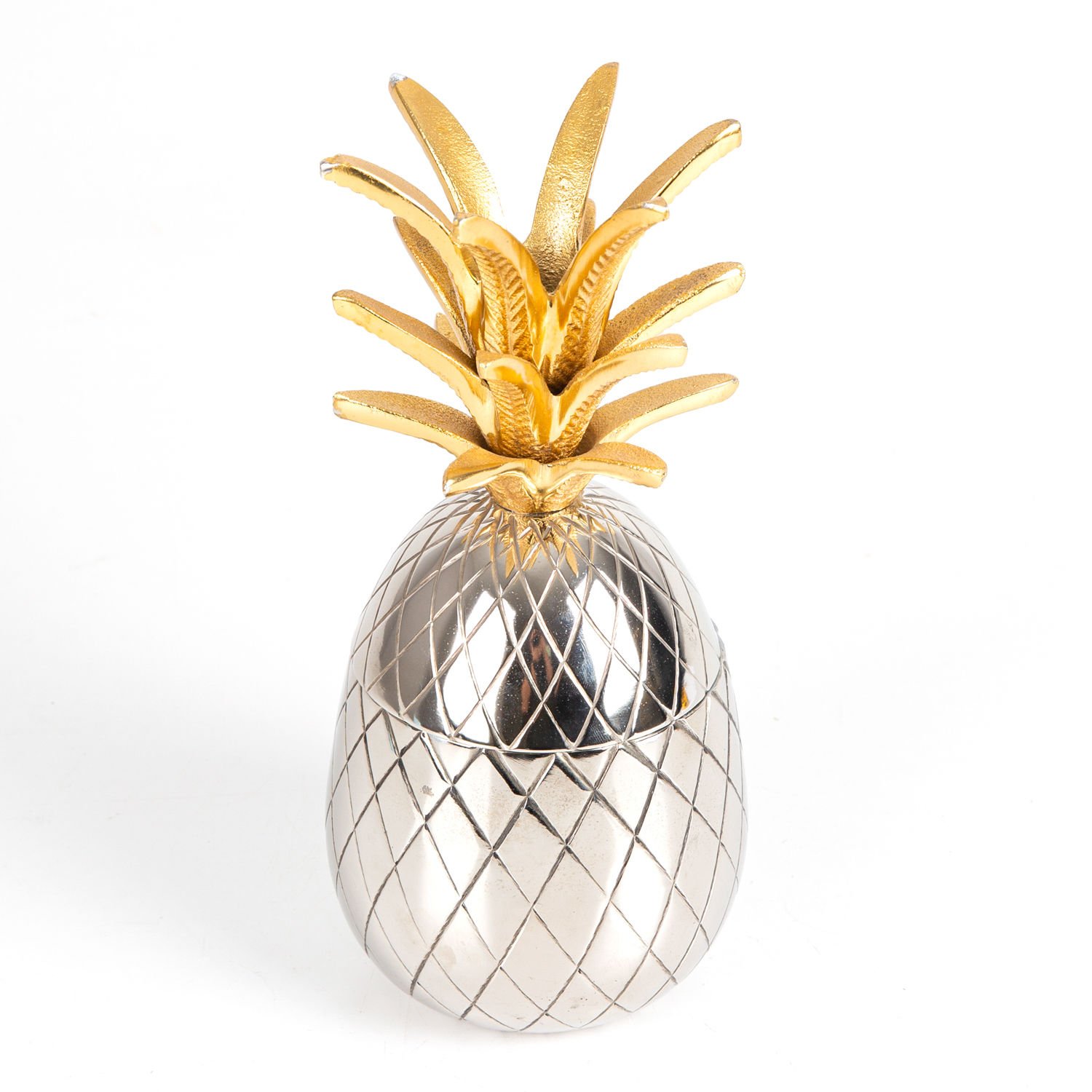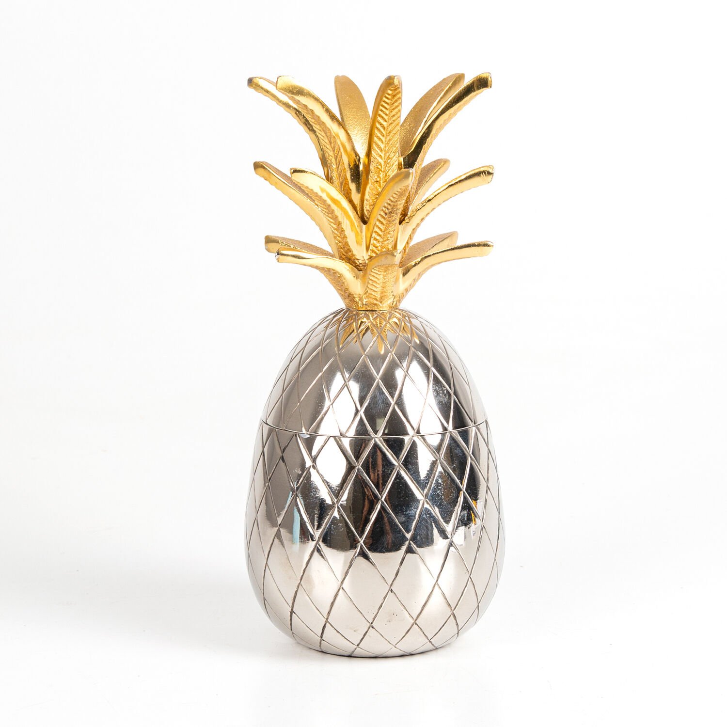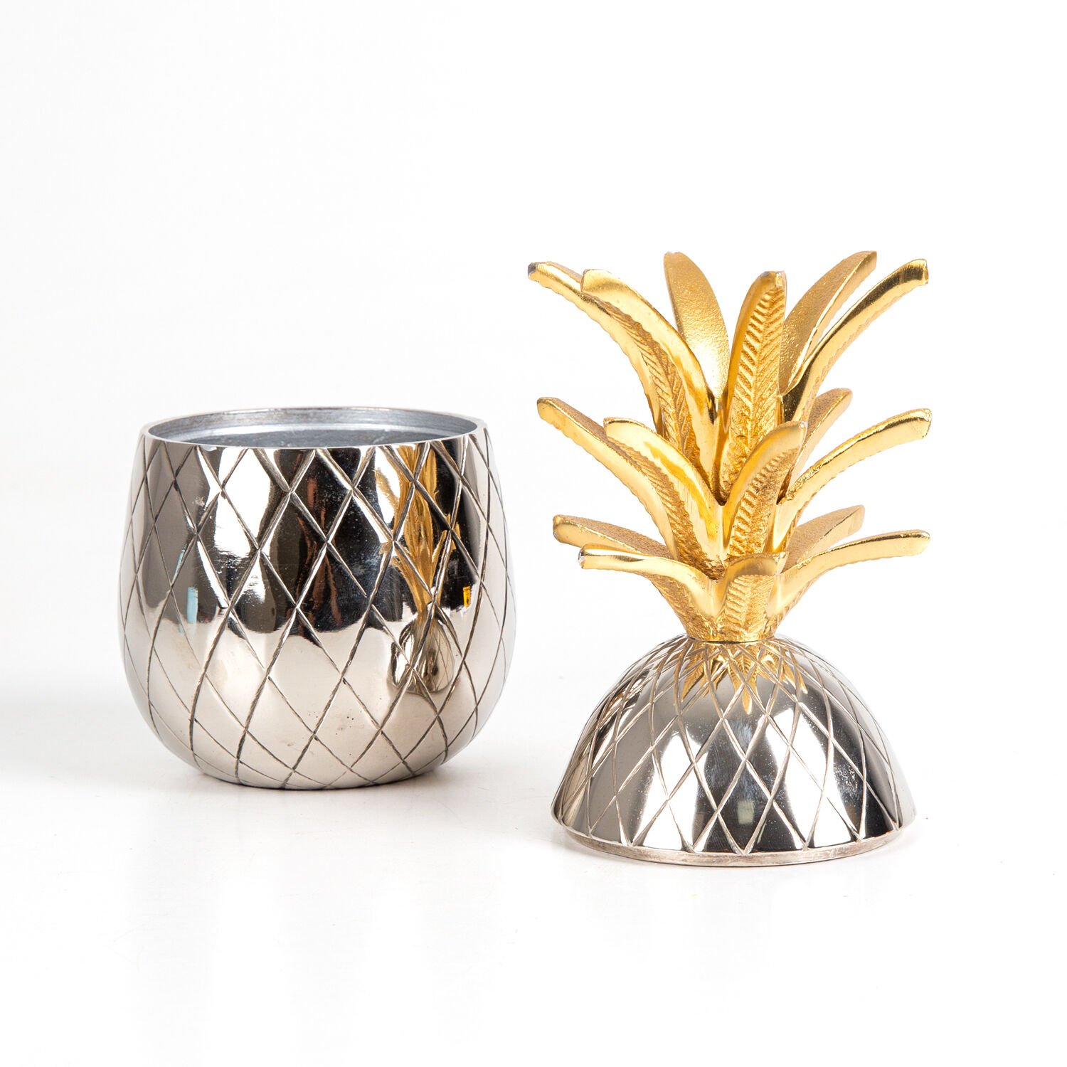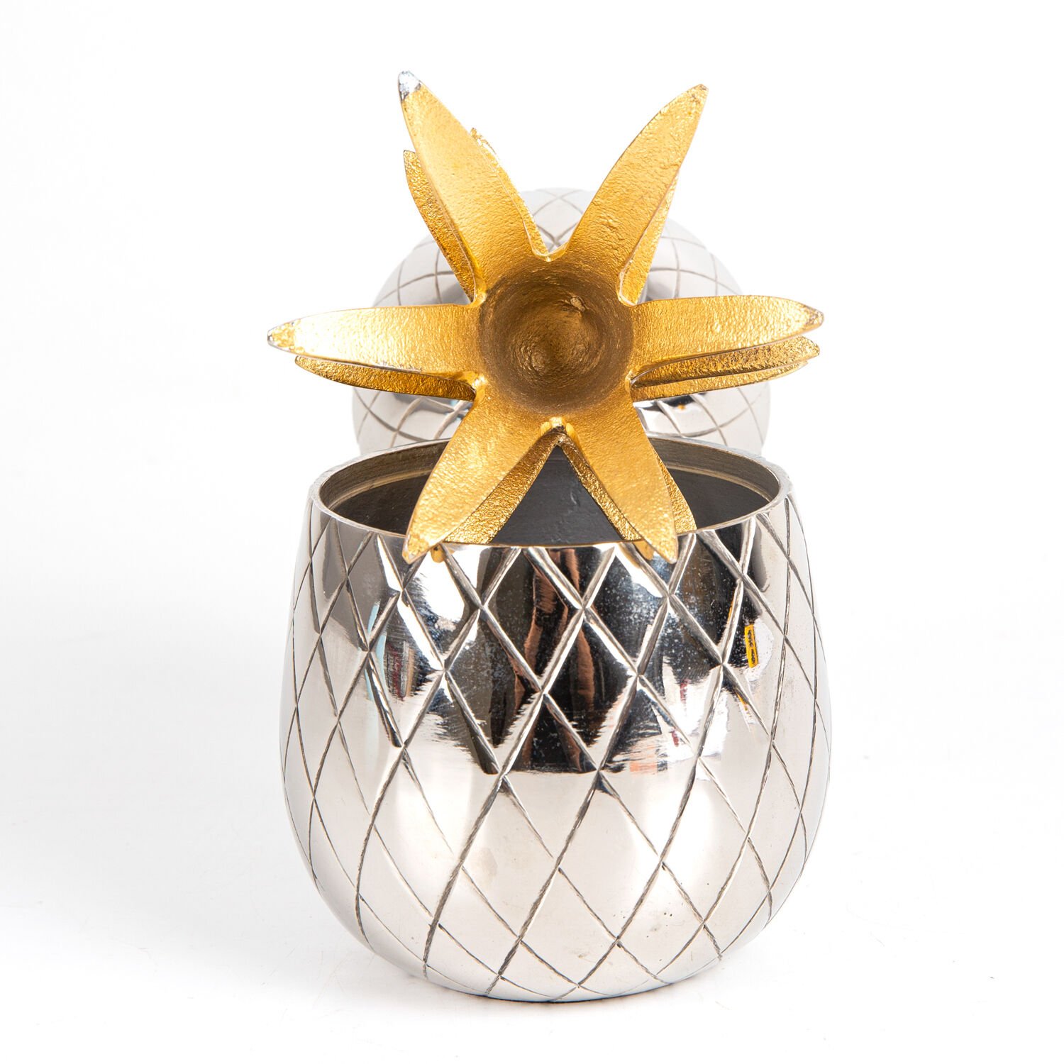 Ananas Şekilli Kapaklı Kutu-Mumluk Gümüş- Gold 10 x 24 Cm.