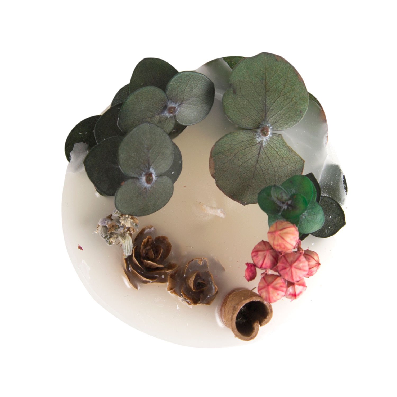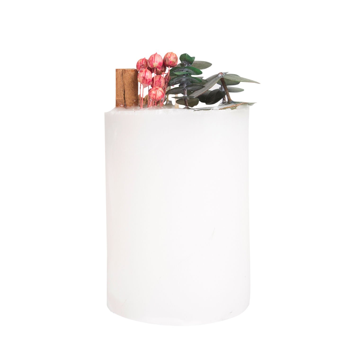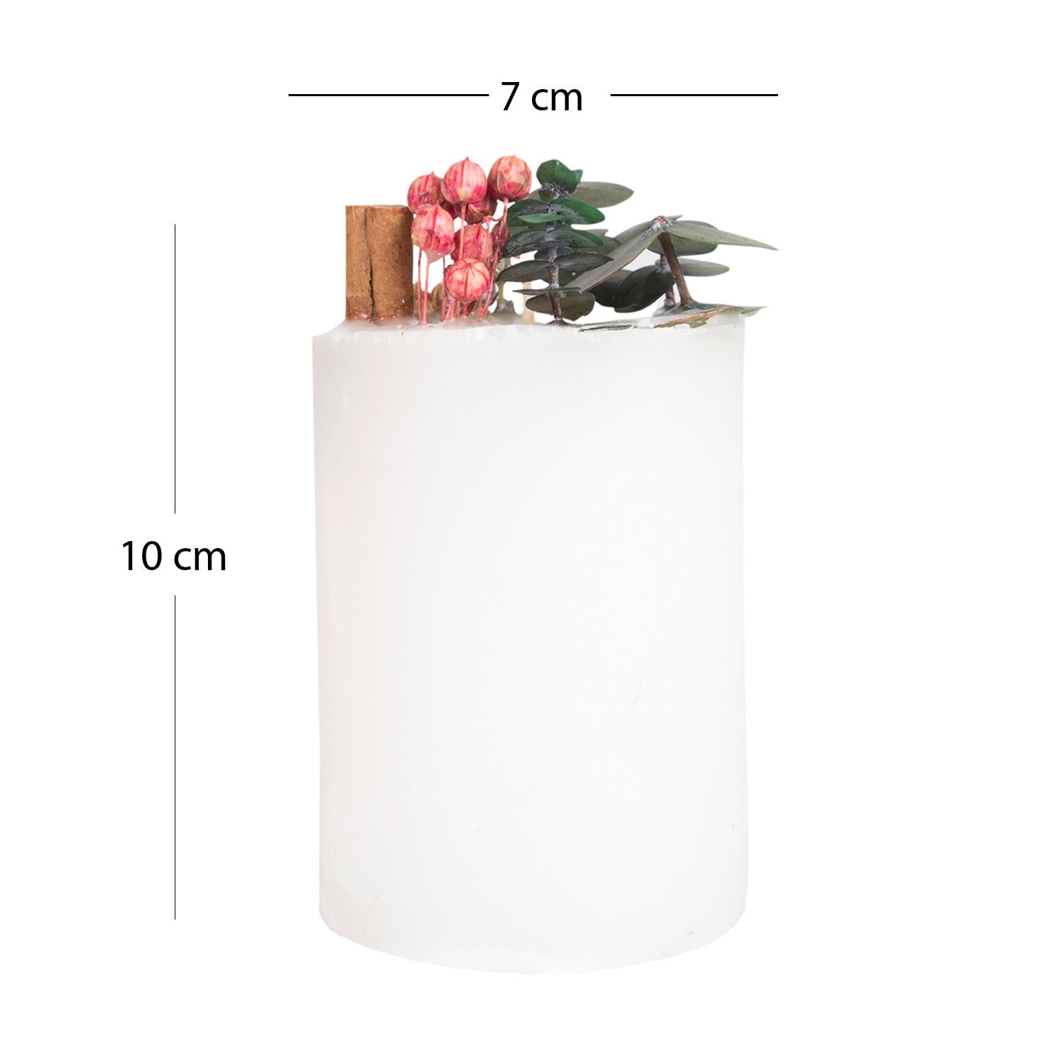 Kütük Mum, Silindir, Krem - Bitki Aranjman Parçacıklı, 7 x 10 cm