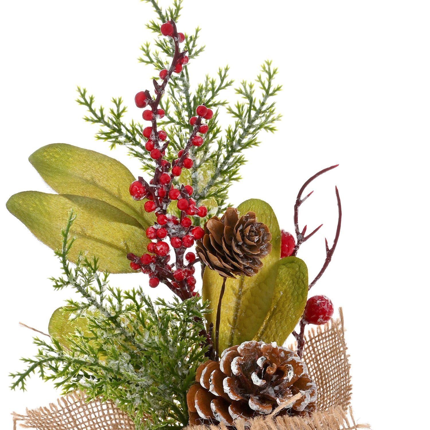 Üzerindeki kırmızı berry topları , doğal çam kozalağı figürleri ve yeşil yapraklarla aranjman yapılıp jüt kumaşa sarılan yılbaşı temalı süslerle göz alıcı bir konsepte dönüştürebileceğiniz Dekoratif Masa Çamı süsü kendine hayran bırakacak güzellikte özel bir üründür . Dekoratif yılbaşı süsümüzü , yılbaşlarında , özel günlerde ve her türlü dekorasyon stilinde kullanabilir , harika tasarımlar elde edebilirsiniz. Evinizin ve ofisinizin birçok yerinde dekoratif malzeme olarak kullanabilirsiniz .