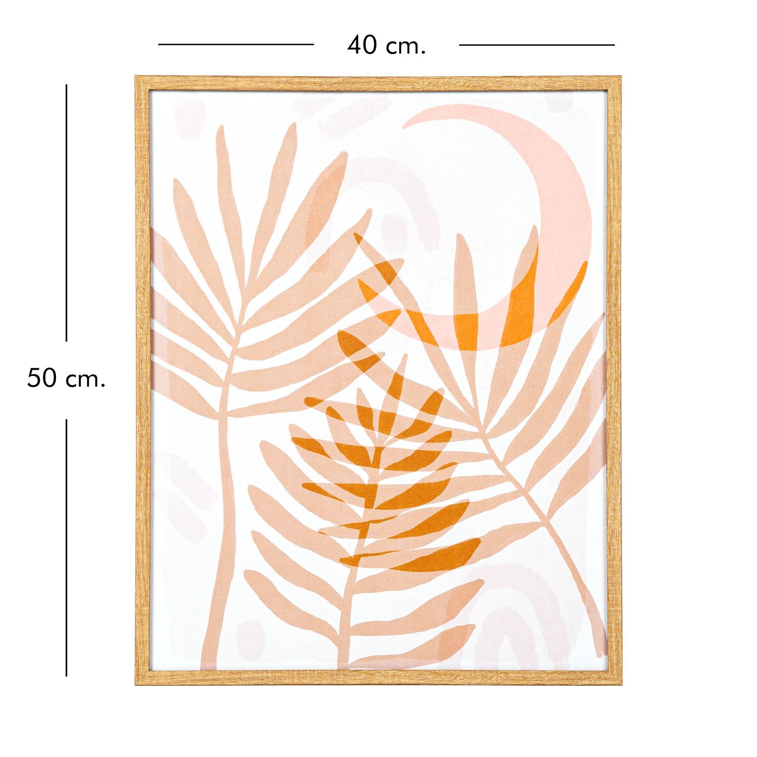 Ahşap Çerçeveli Areka Palmiyesi Yaprağı MDF Üzeri Baskı Tablo Somon-Beyaz 40x50x1,8 Cm.