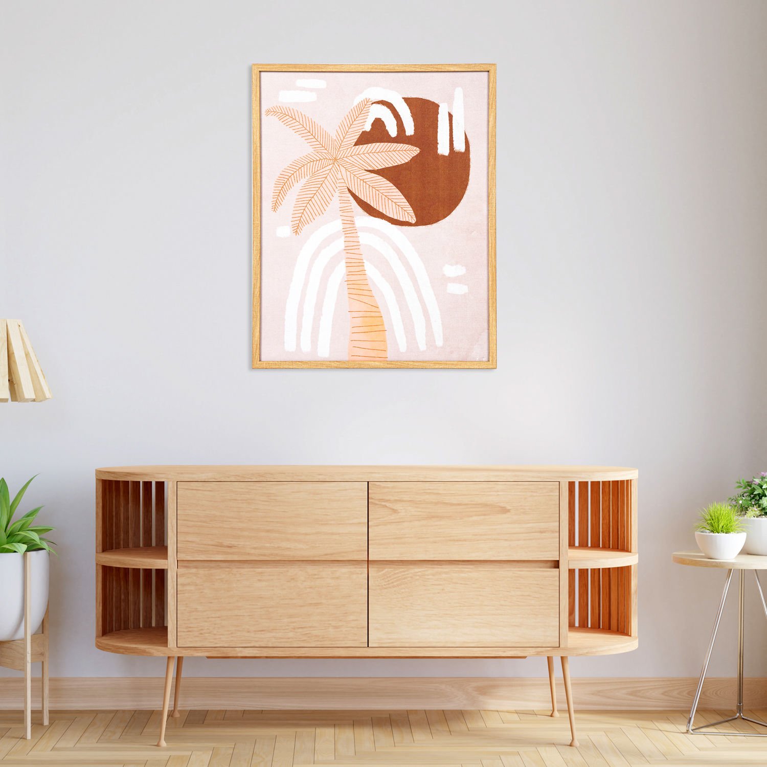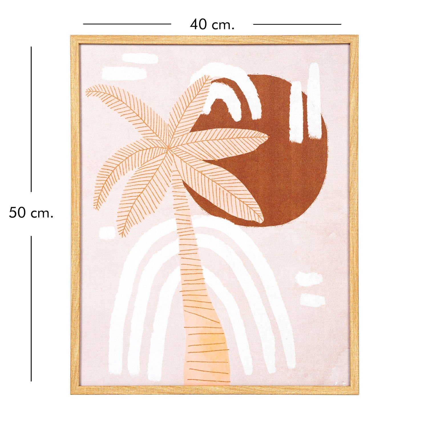 MDF Üzeri Baskı Tablo, Palmiye Ağacı, Doğal Ahşap Çerçeveli, Somon-Kahverengi - 40x1,8x50 cm