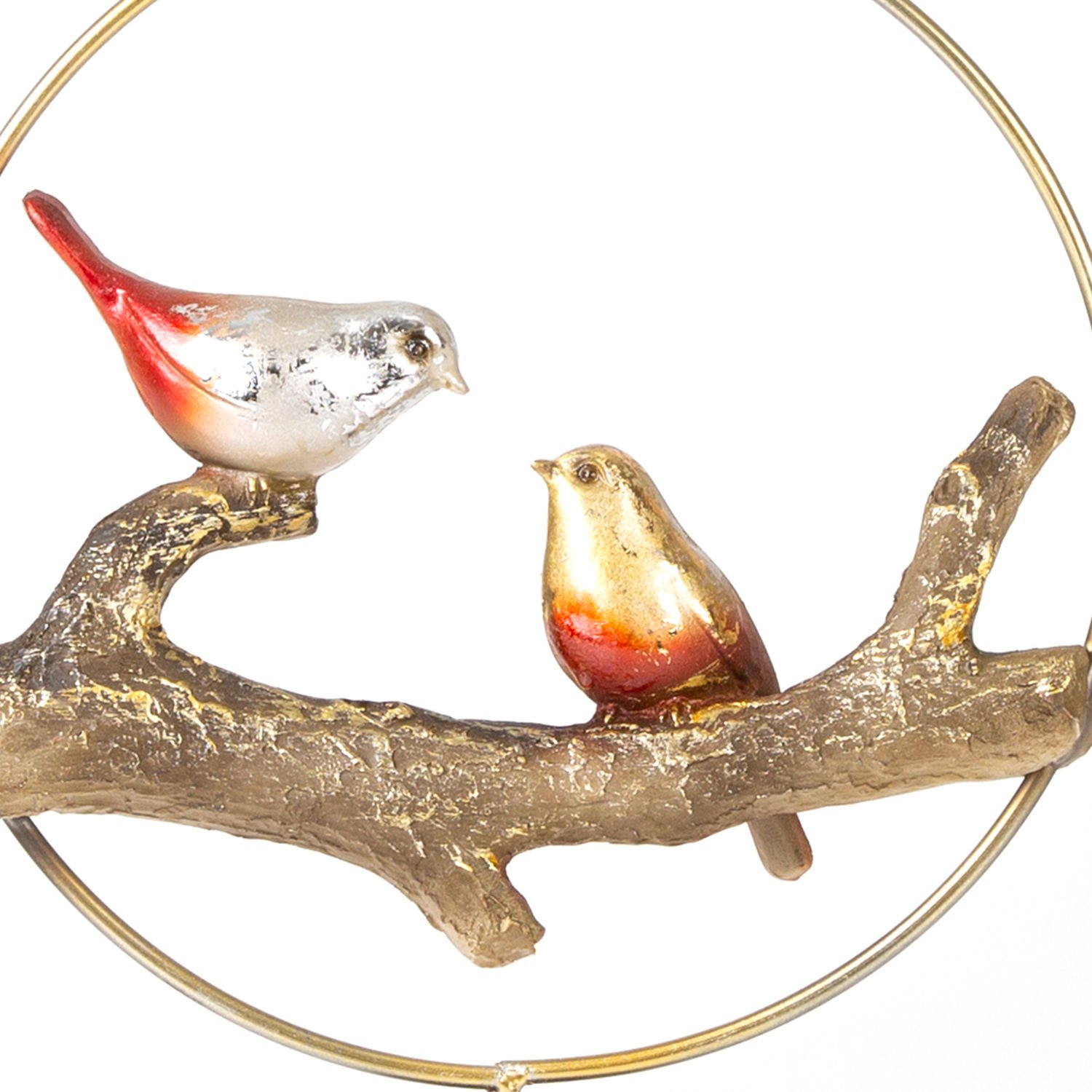 Metal Daire İçinde İki Kuş Biblo Lame-Bordo ( Ebat 25x38x11 Cm.)