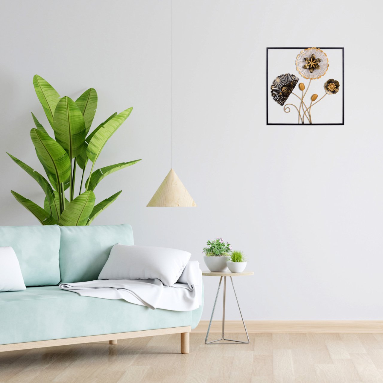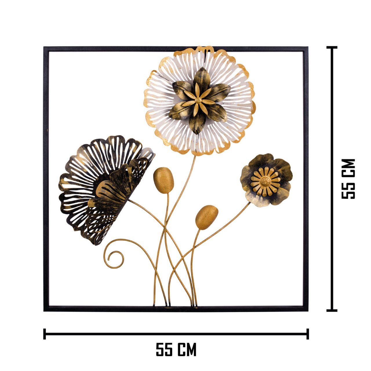 Metal Çiçek Kare Duvar Panosu 55x55 Cm