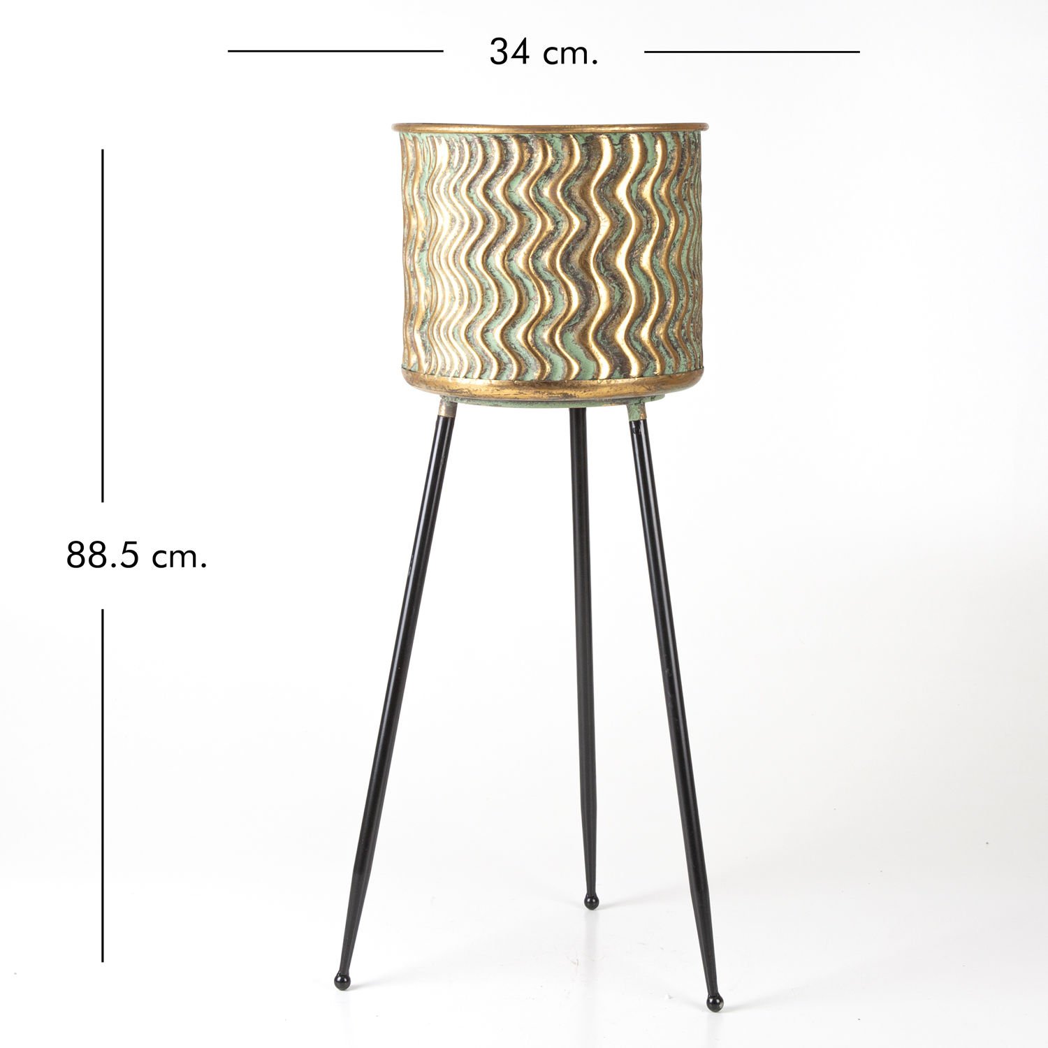 Ayaklı Metal Çiçeklik Altın Eskitme-Siyah, Kabartma Dalga Desenli 34x88,5x34 Cm.