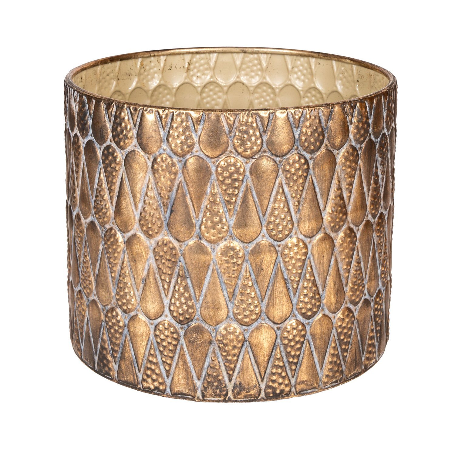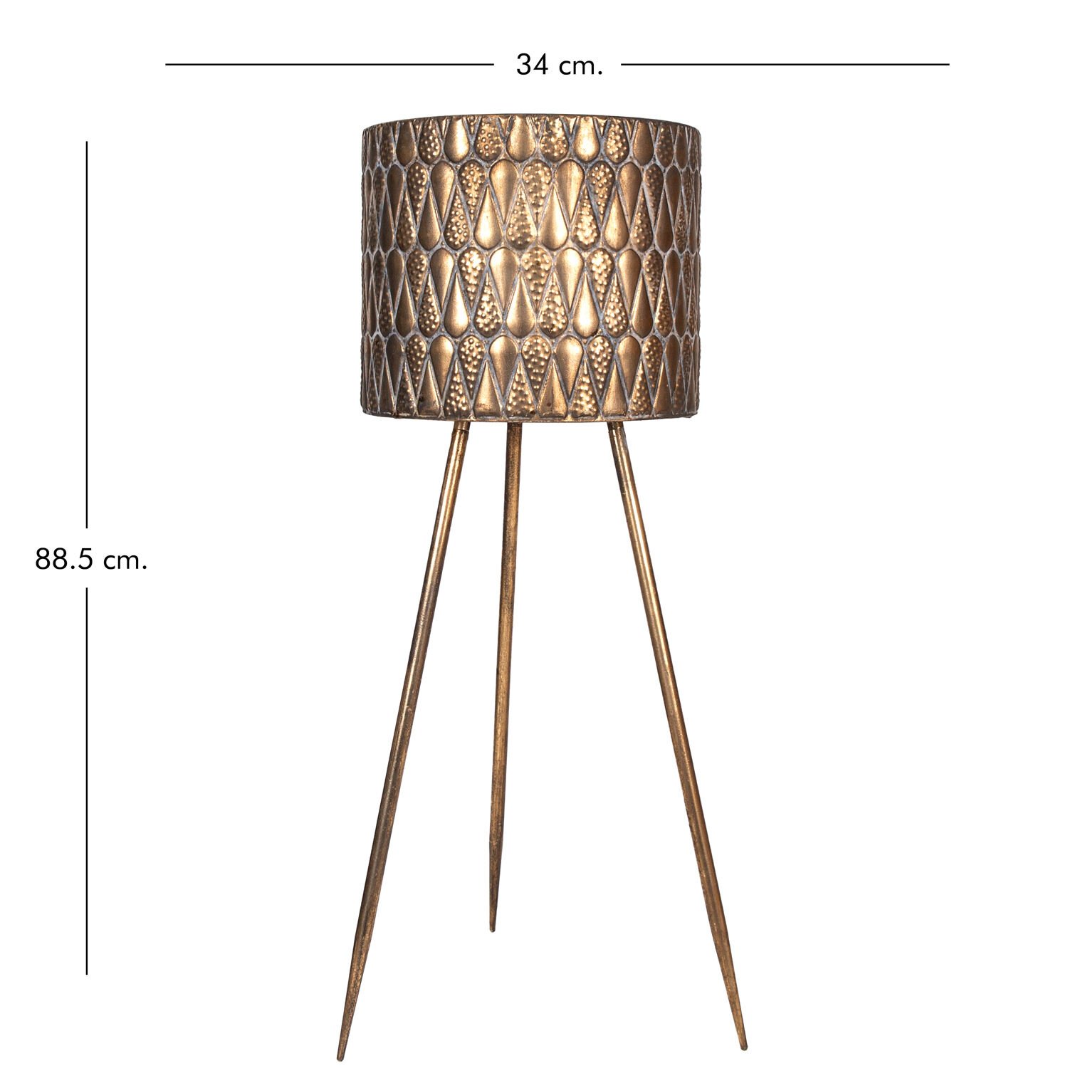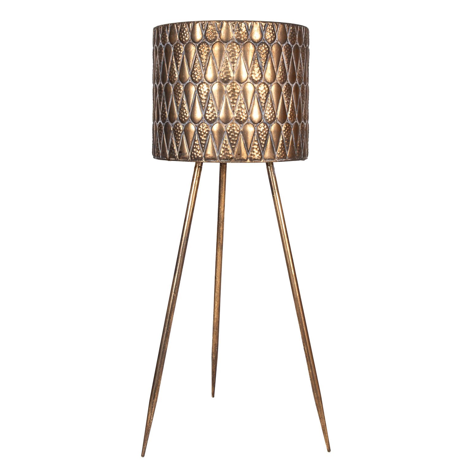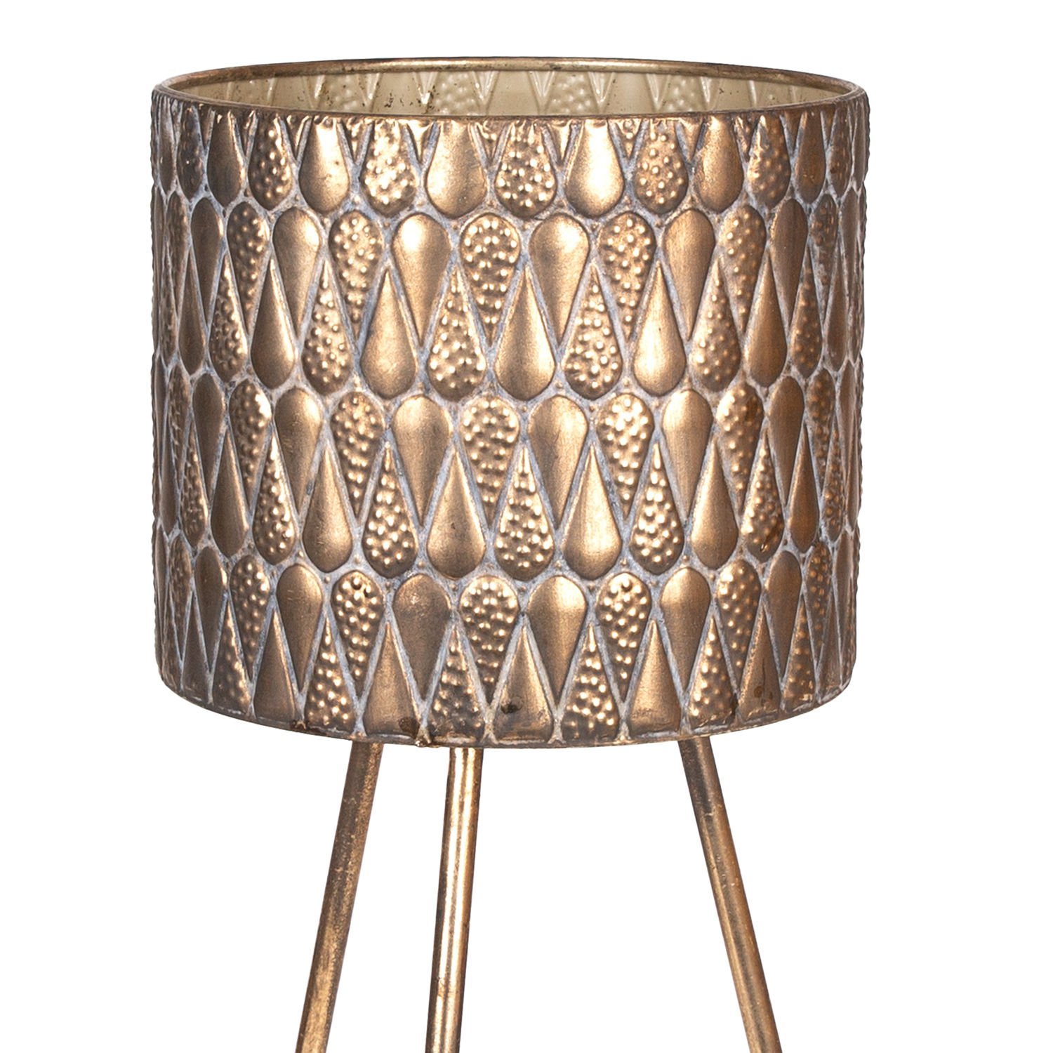 Metal Çiçeklik Saksı, Ayaklı, Kabartma Damla Desenli, Altın Eskitme - 33x88 cm