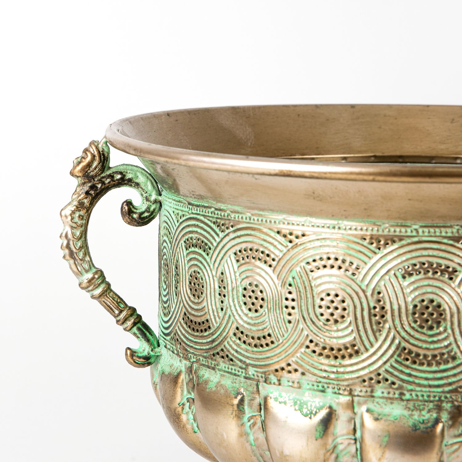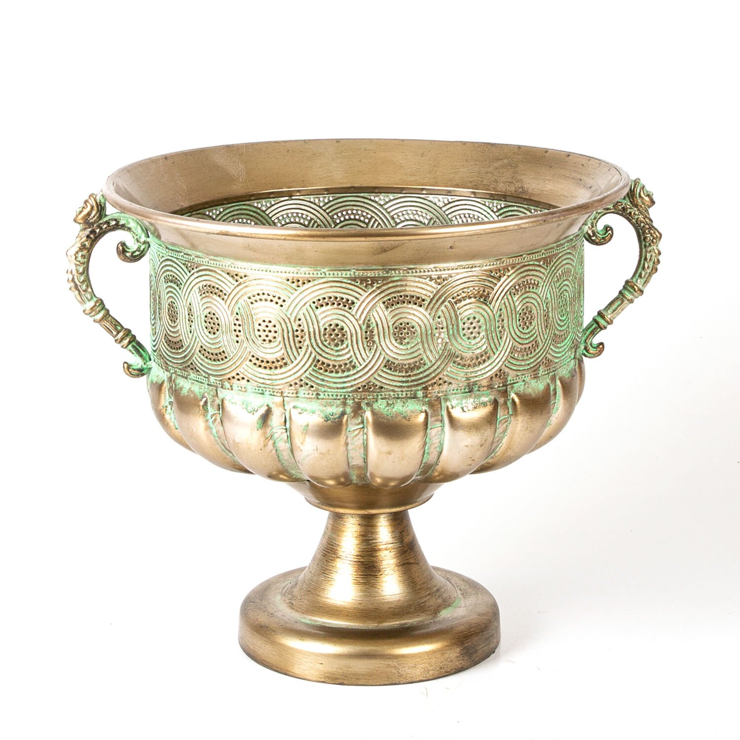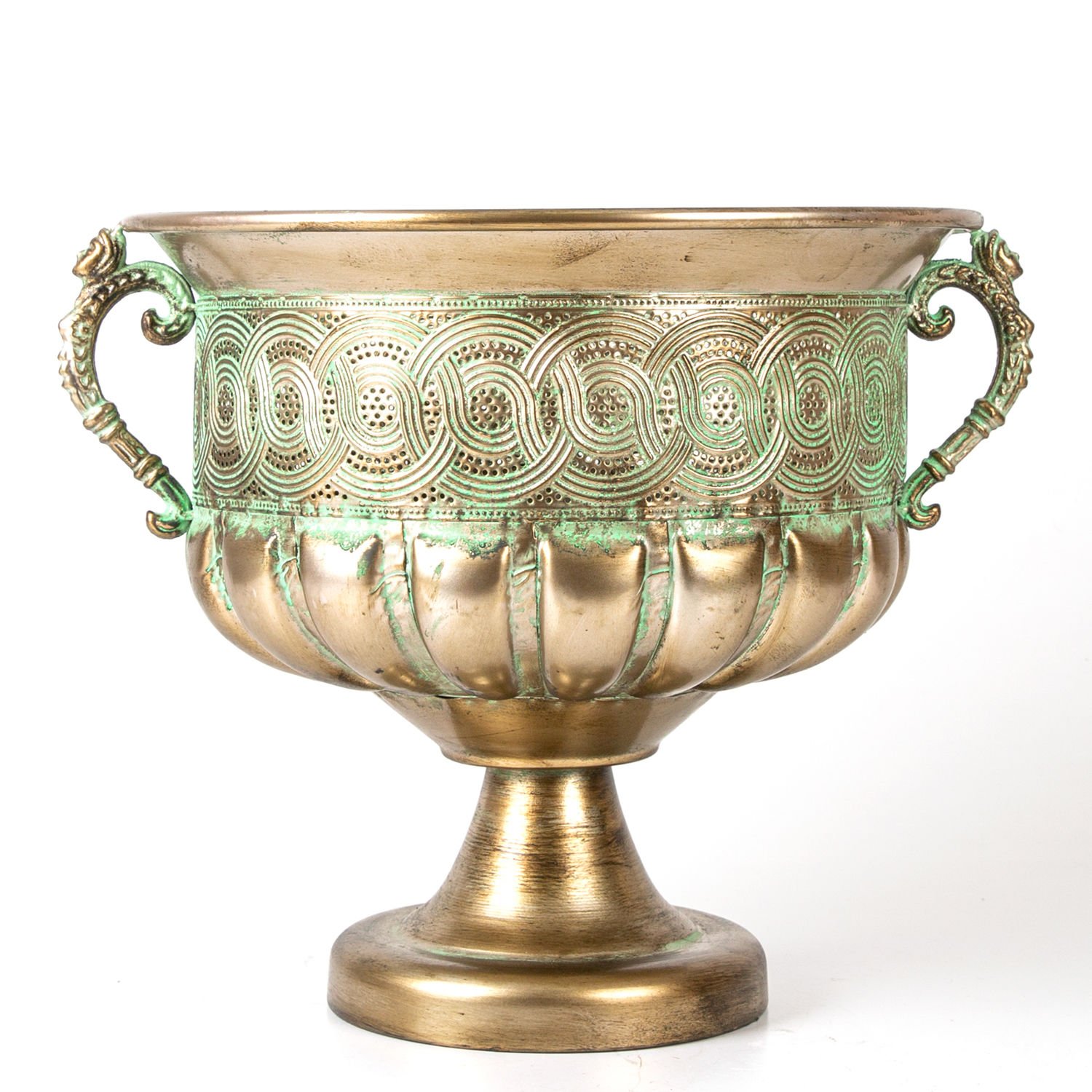 Yer yer yeşil renkle kaplı Eskitme gold kaplaması , iki tarafında bulunan Deniz Kızı figürlü kulpları ve şık tasarımı ile içine koyacağınız yapay çiçekler ile dekore edebileceğiniz Deniz kızı Figürlü Kulplu Metal Çiçeklik. Kendi ithalatımız olan ürünümüz özel tasarımı ile bulunduğu mekanda şıklığınızı ve zerafetinizi yansıtacaktır.