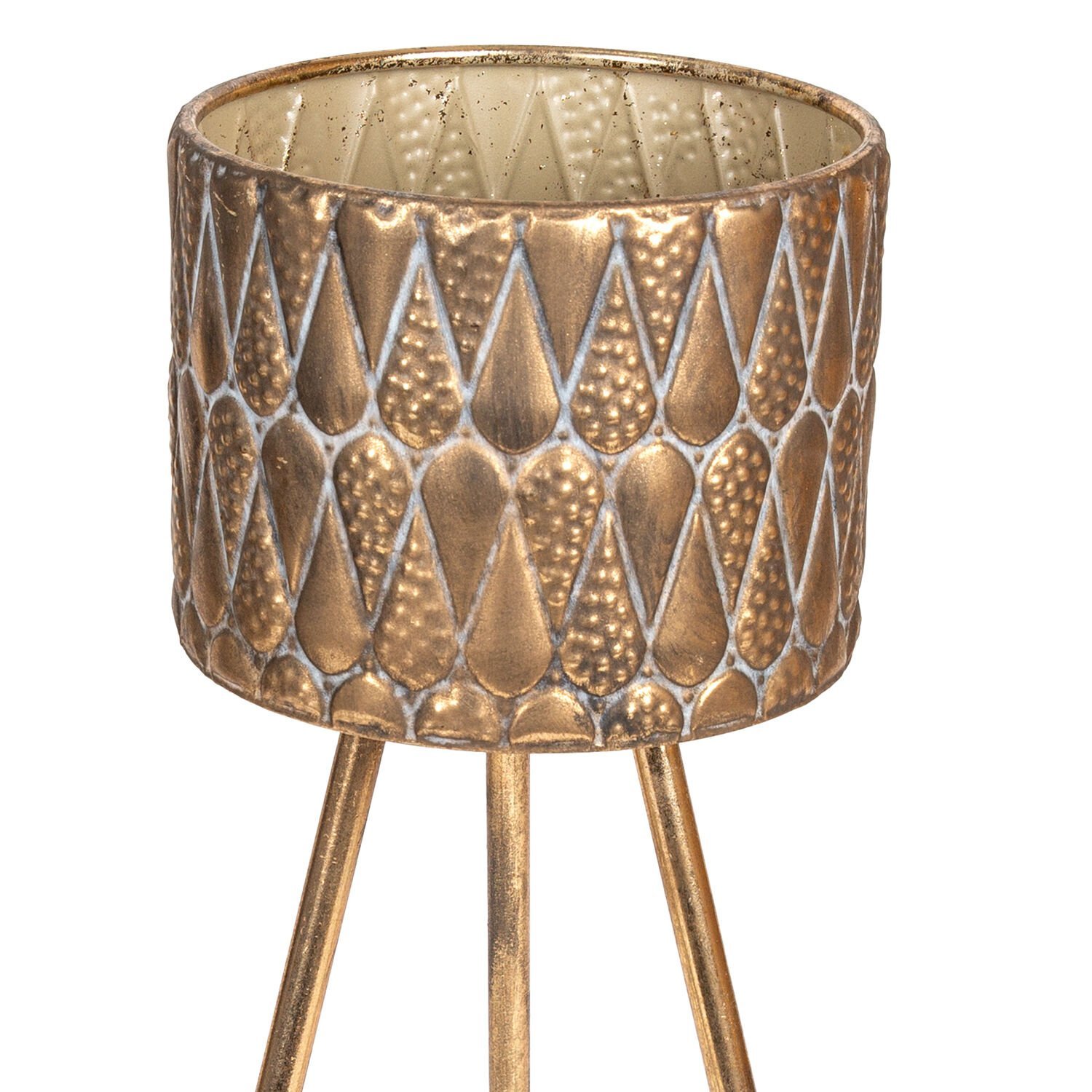 Metal Çiçeklik Saksı, Kabartma Damla Desenli, Altın Eskitme - 28x77,5 cm