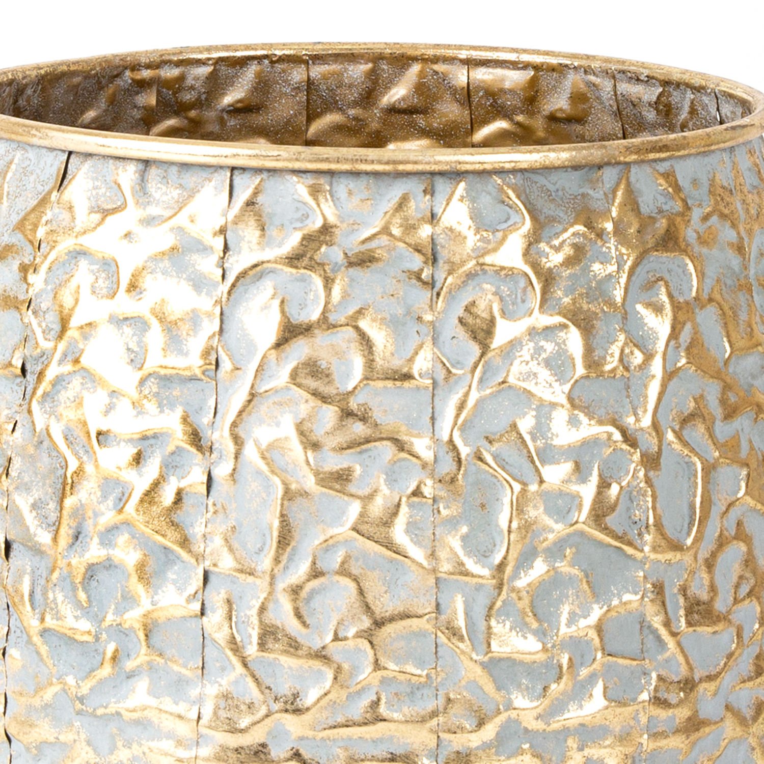Metal Çiçeklik Saksı, Kabartma Desenli, Altın Eskitme - 27,5x26,5x27,5 cm