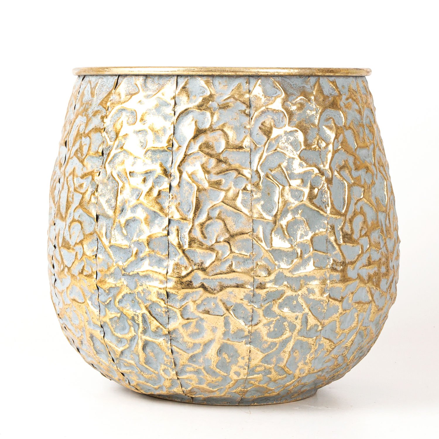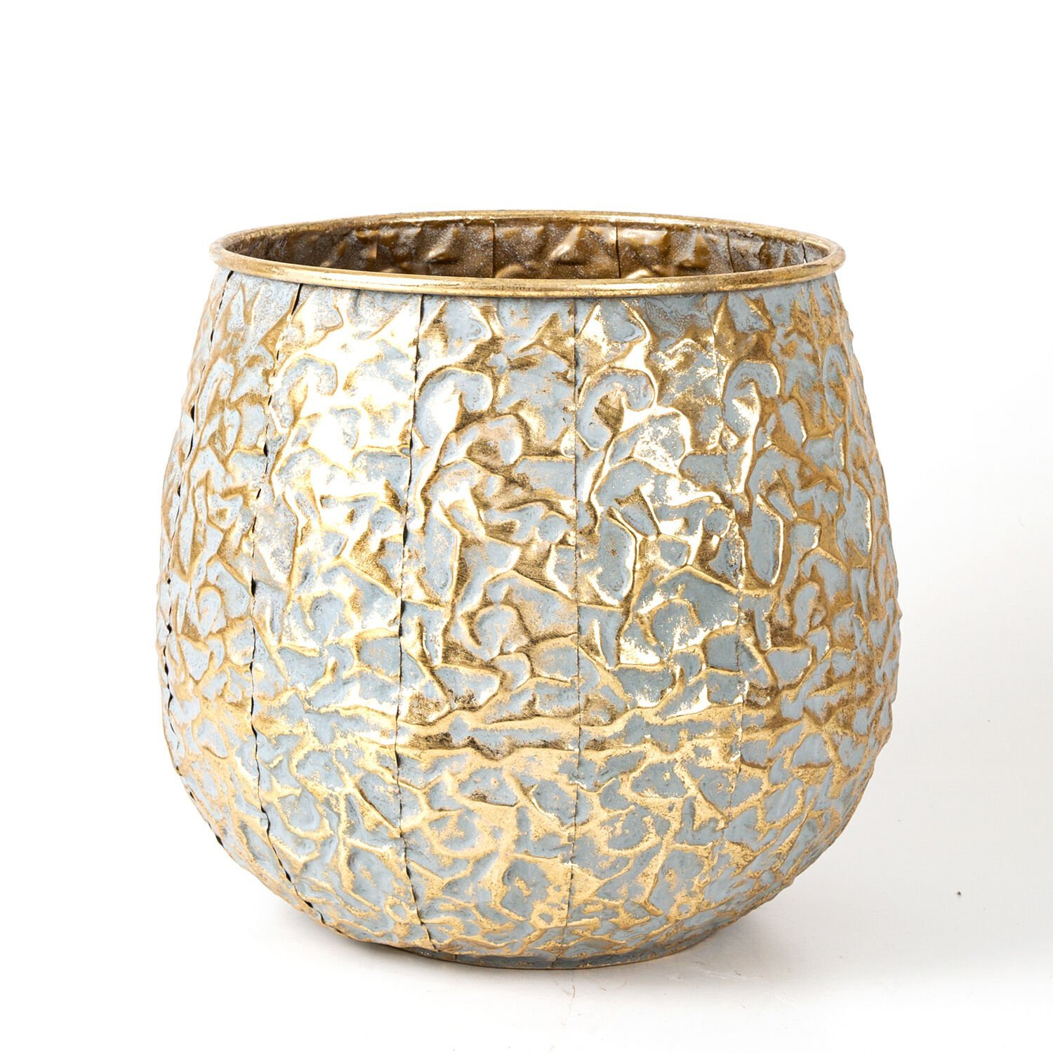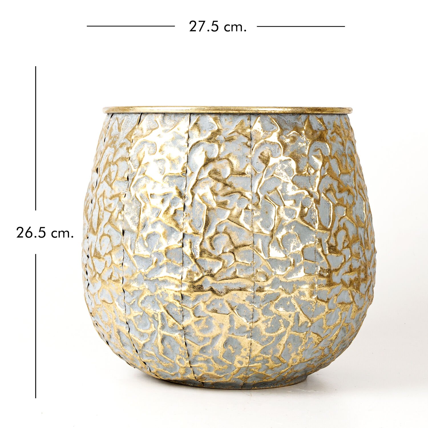 Kabartma Desenli Metal Çiçeklik Saksı Altın Eskitme 27,5x26,5x27,5 Cm.