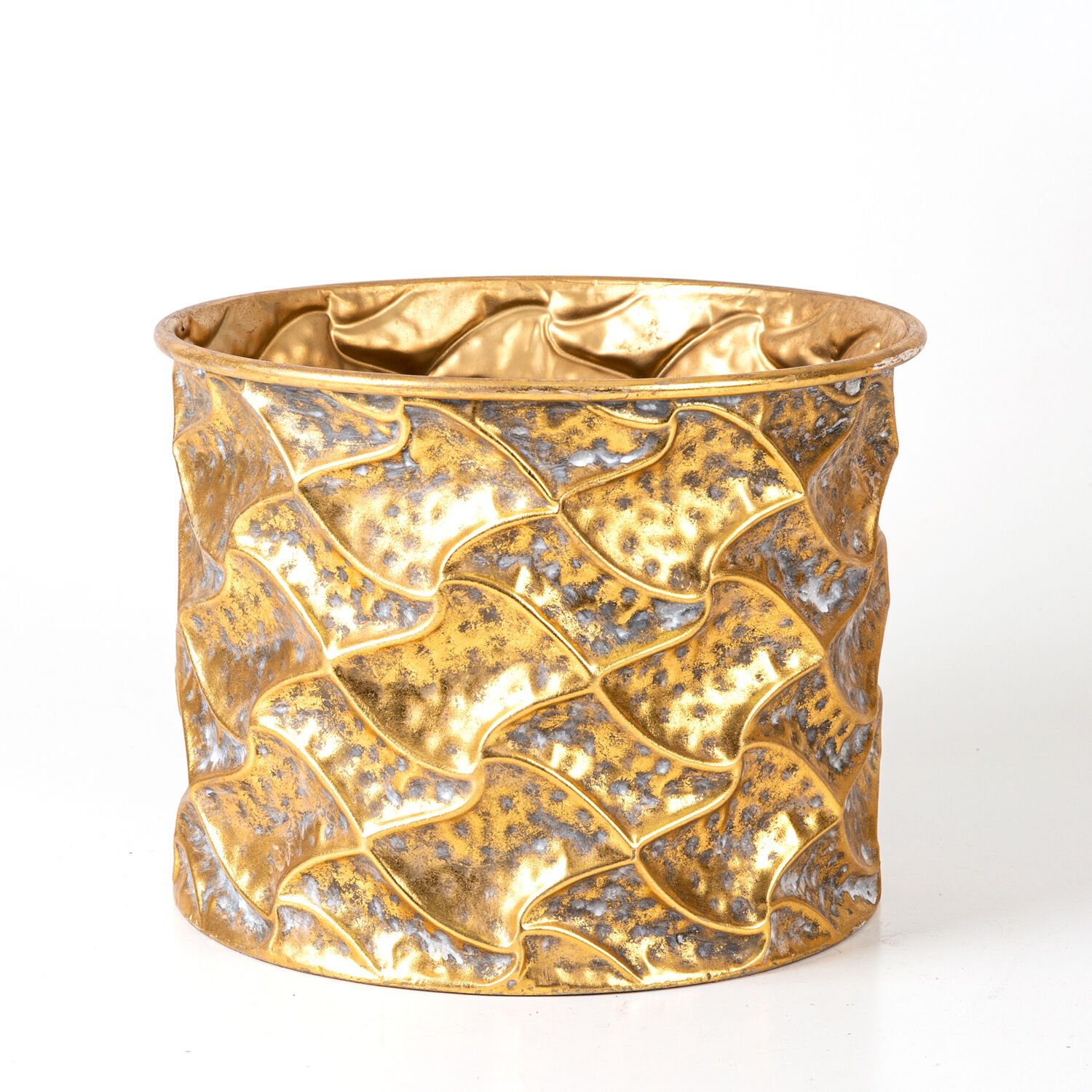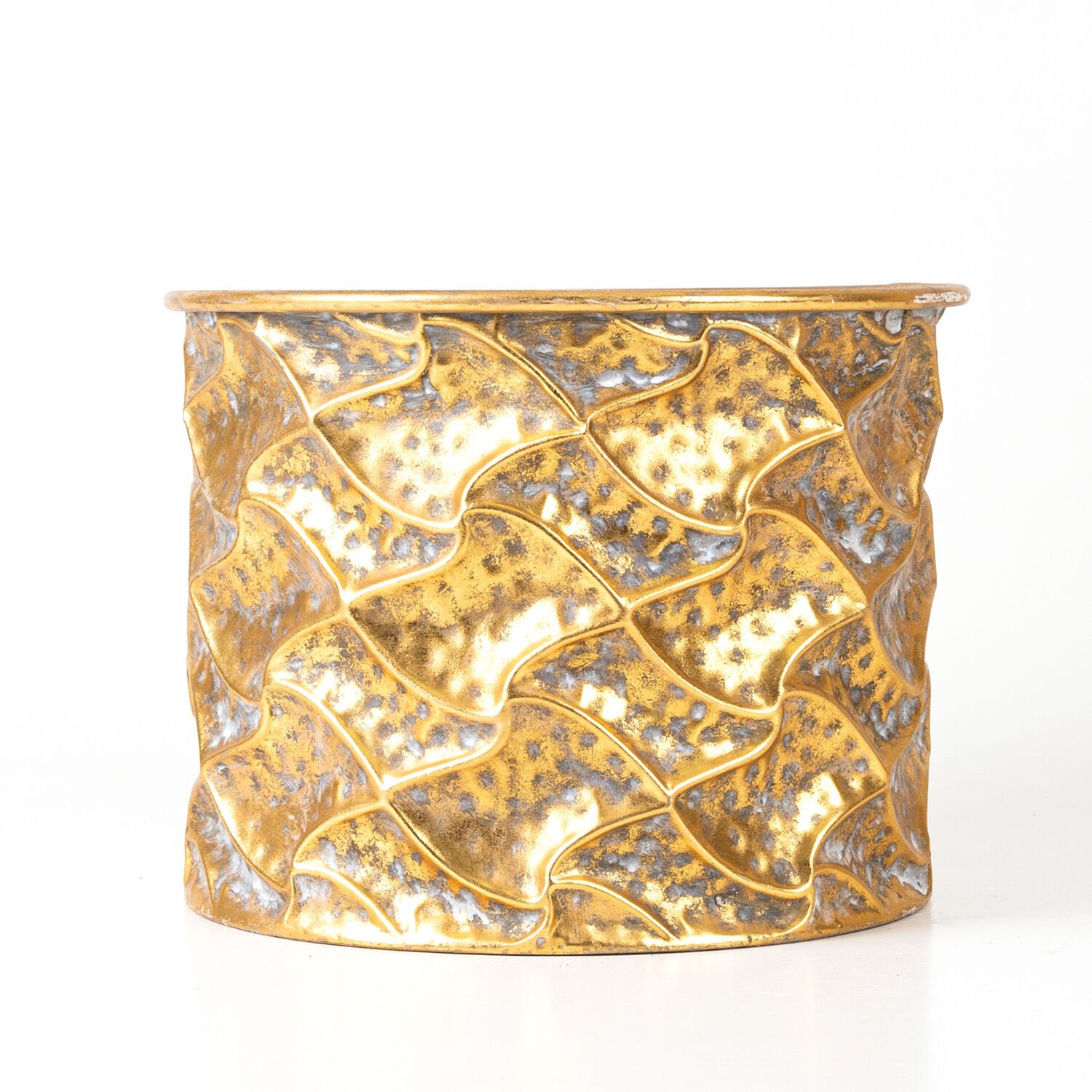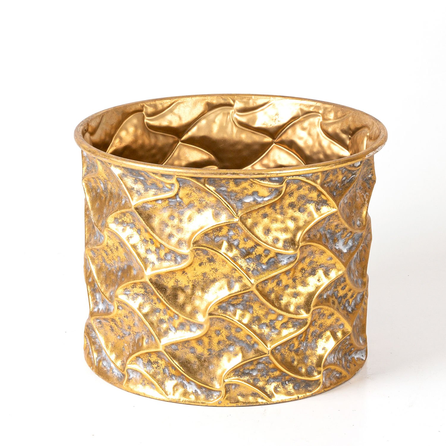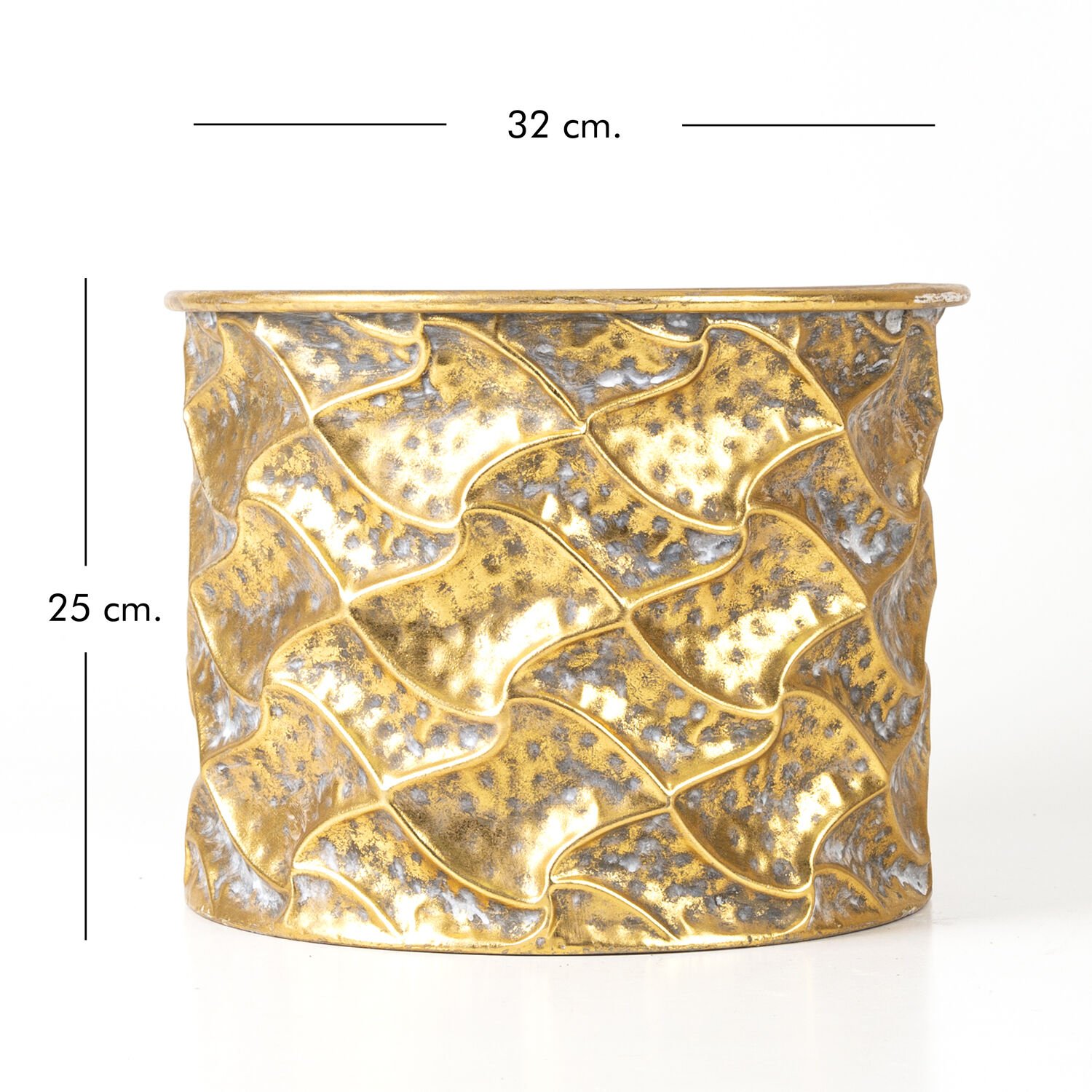 Kabartma Desenli Metal Çiçeklik Saksı Altın Eskitme 32x25x32 Cm.