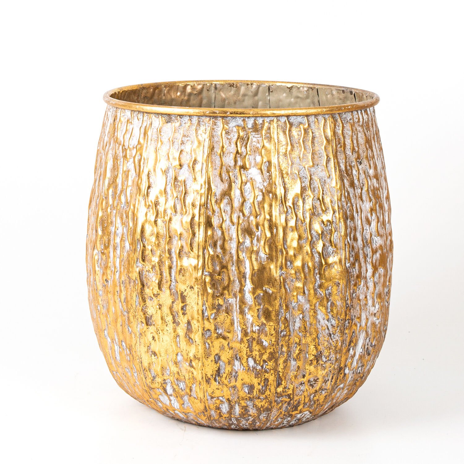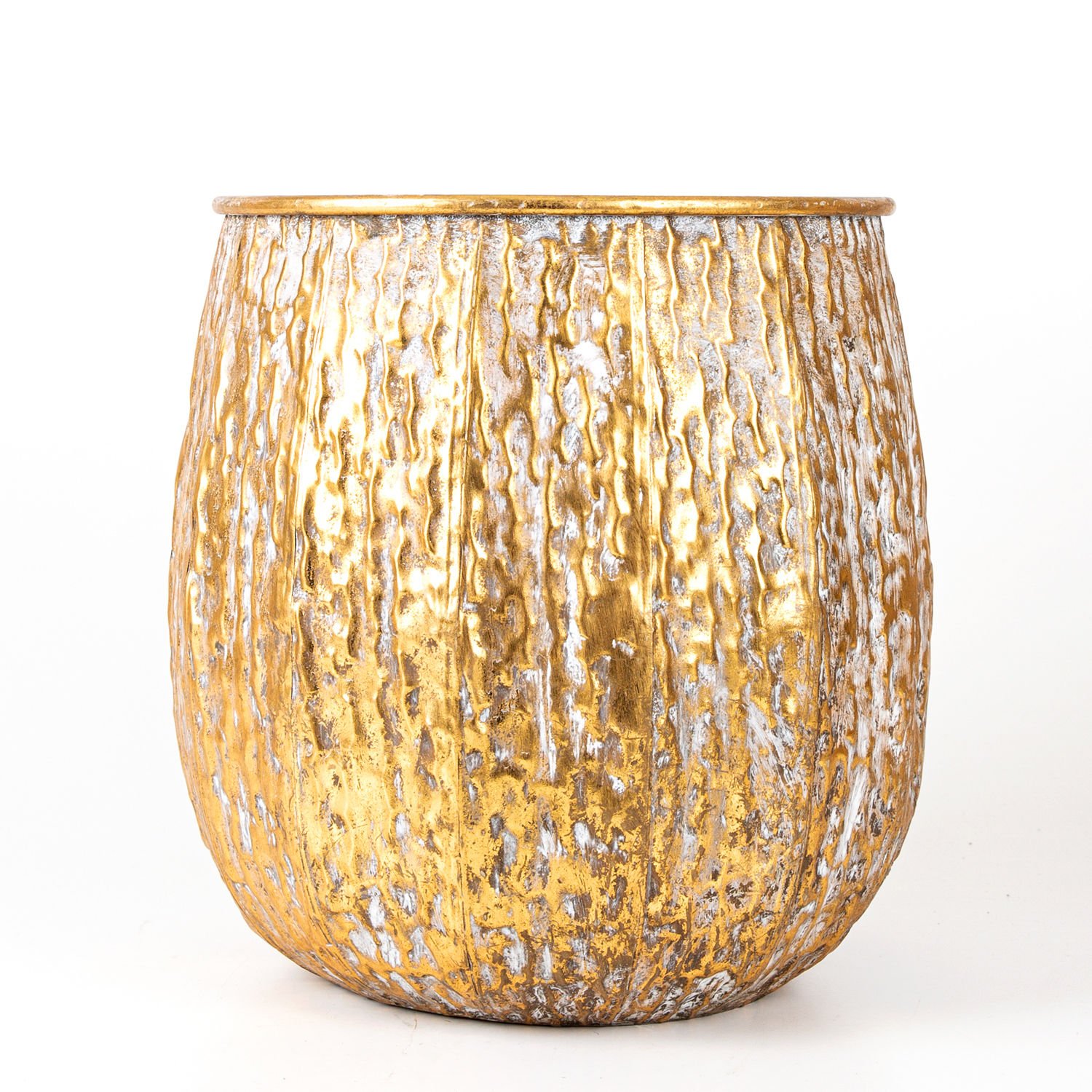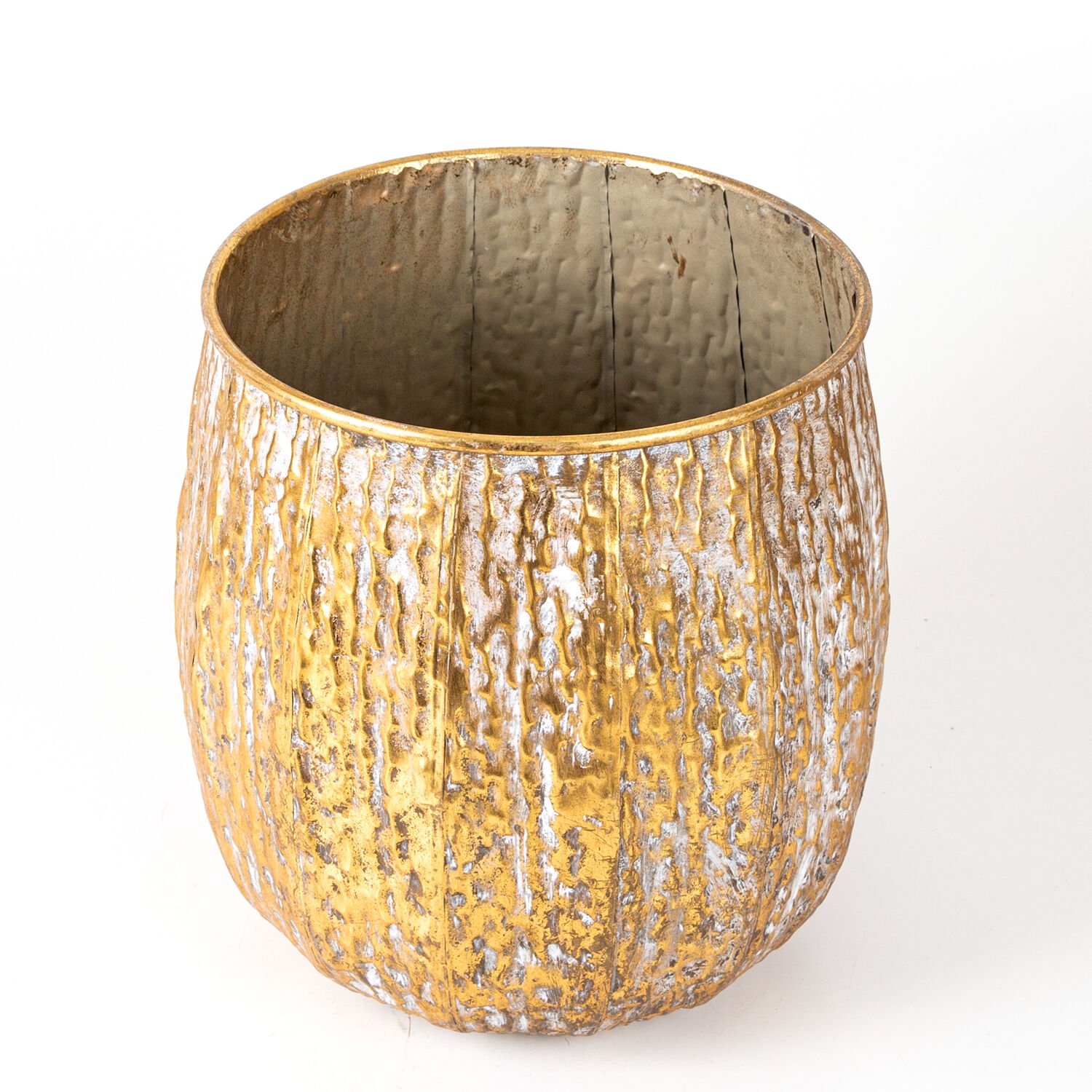 Kabartma Desenli Metal Çiçeklik Saksı Altın Eskitme 36x37x36 Cm.