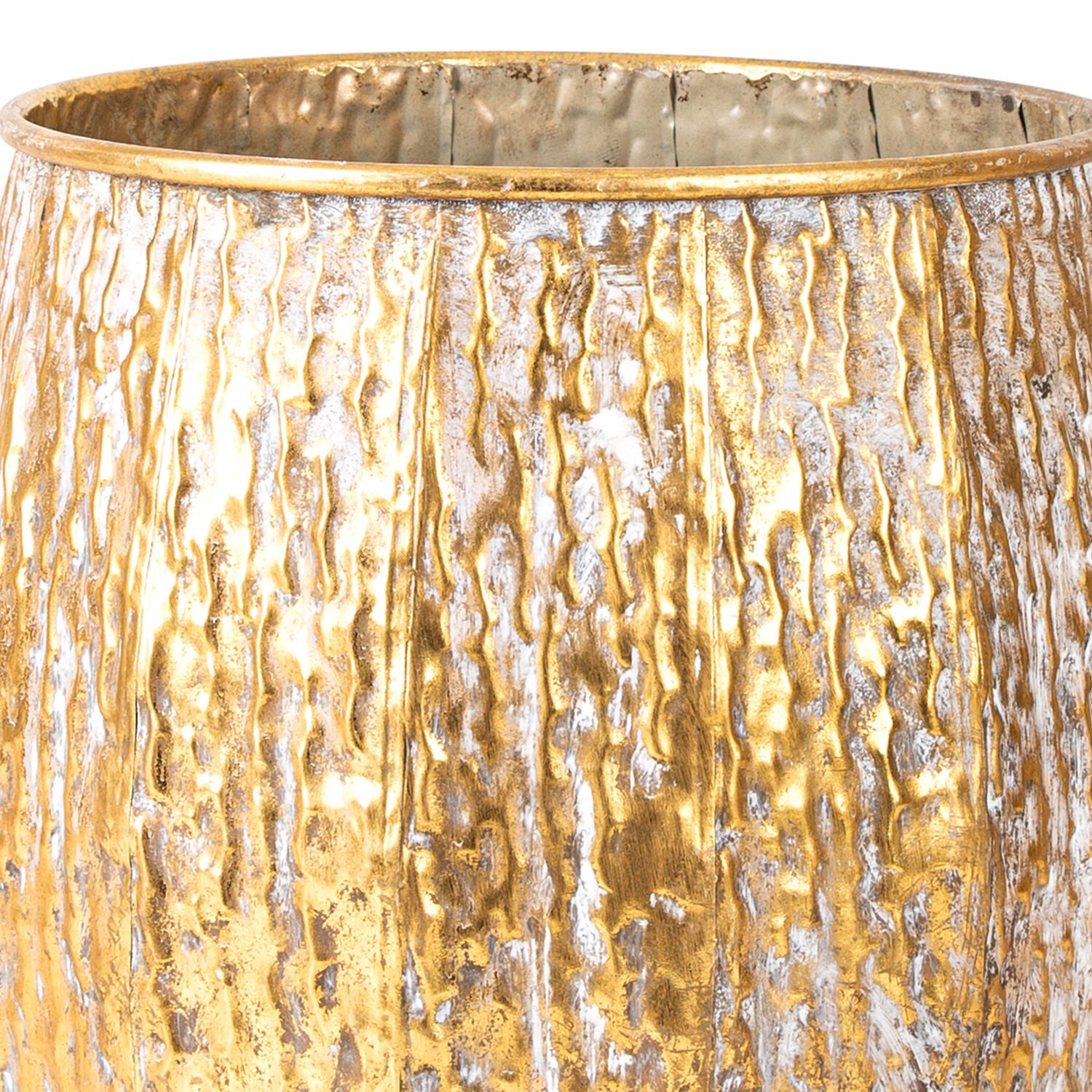Metal Çiçeklik Saksı, Kabartma Desenli, Altın Eskitme - 36x37x36 cm