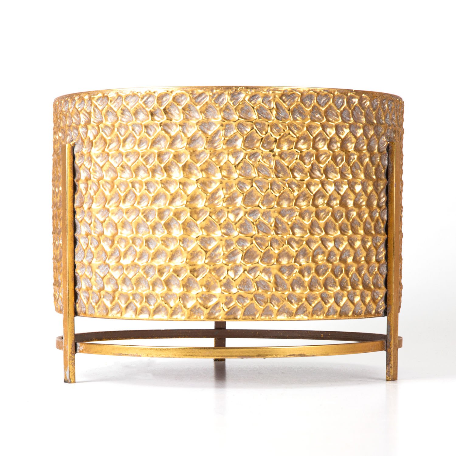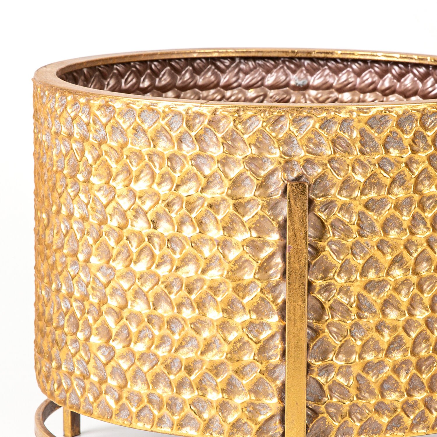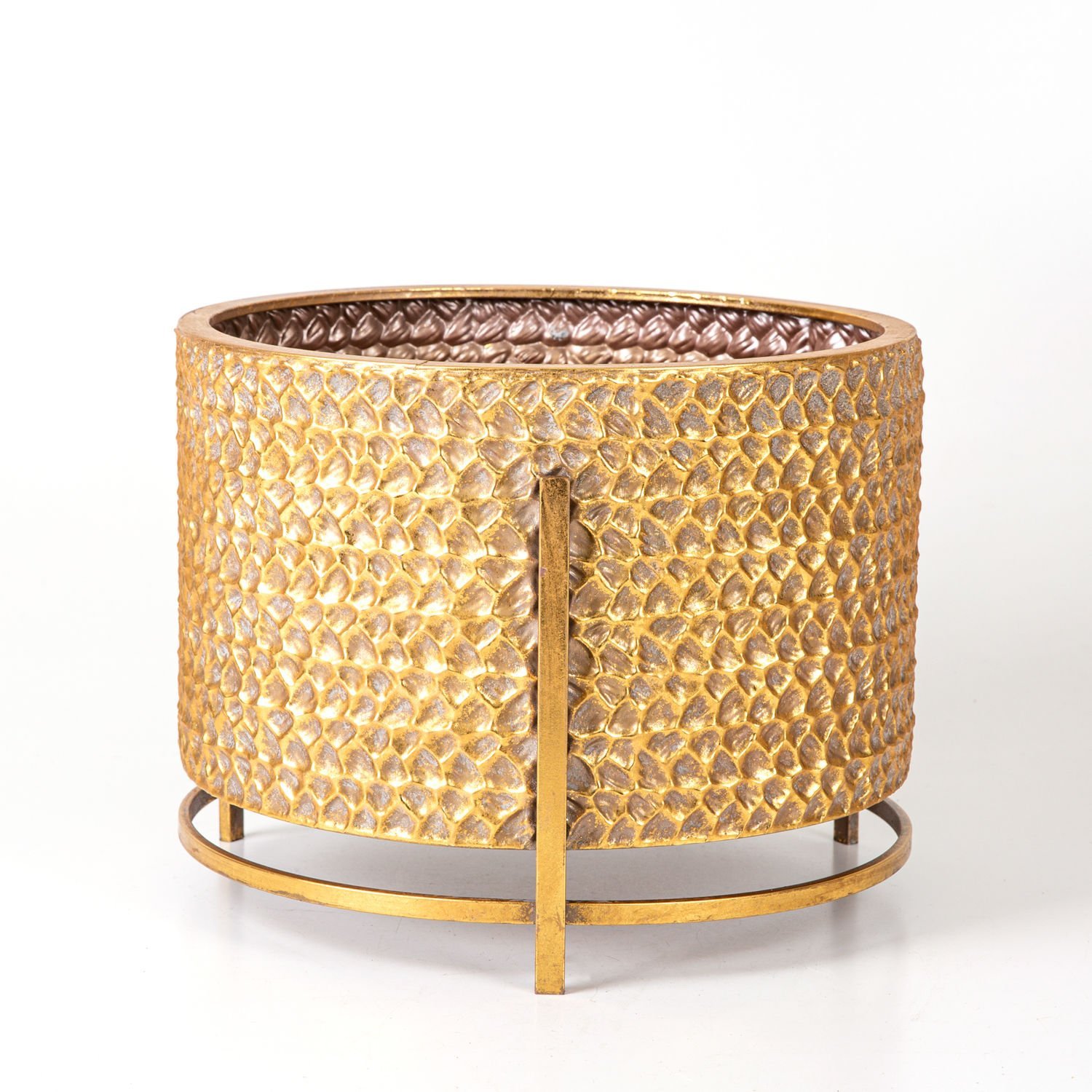 Kabartma Desenli Çıkarılabilir Ayaklı Metal Çiçeklik Saksı Gold 31x25x30 Cm.
