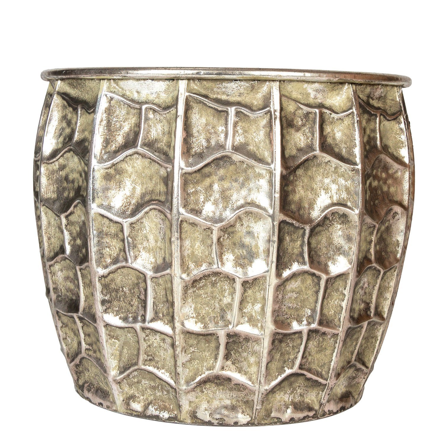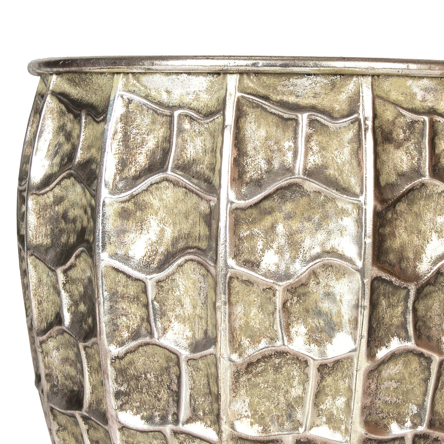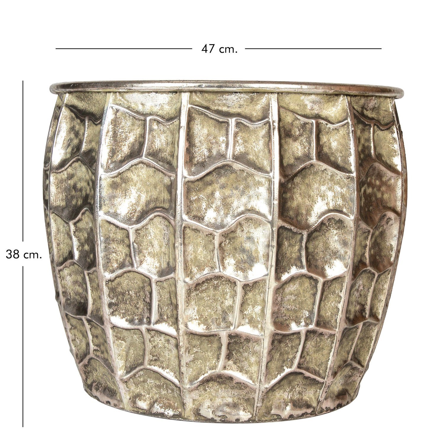 Kabartma Desenli Metal Çiçeklik Saksı Gümüş Eskitme 45x38,5 Cm.