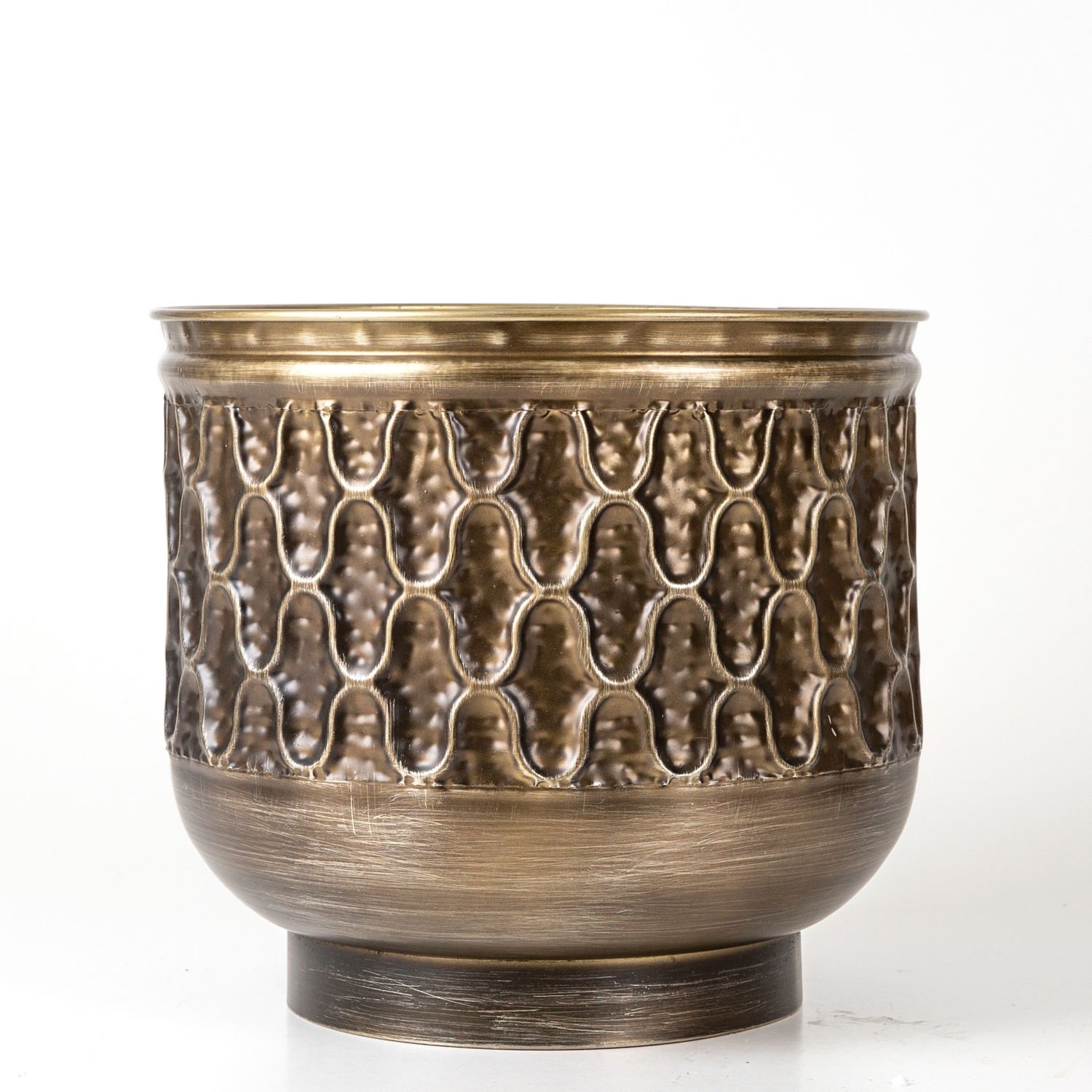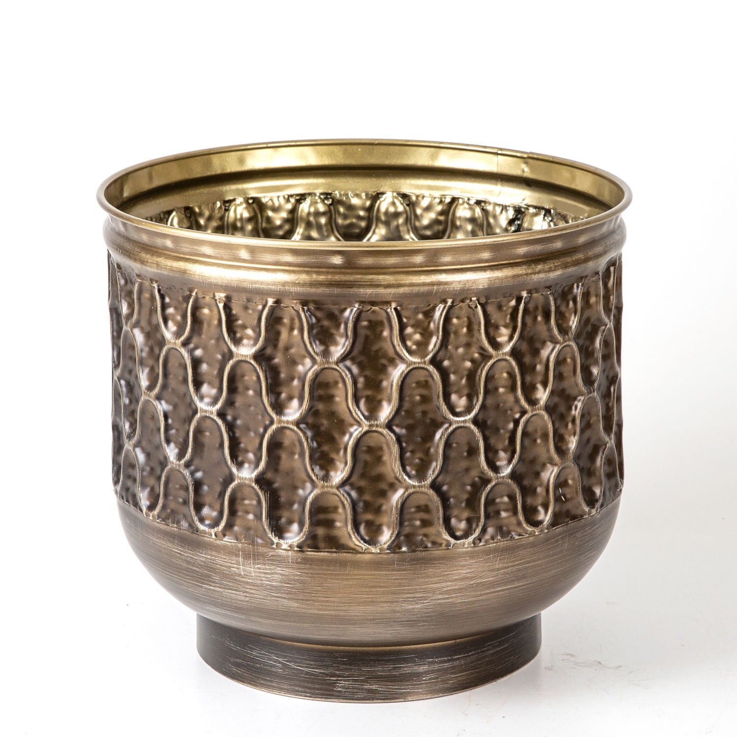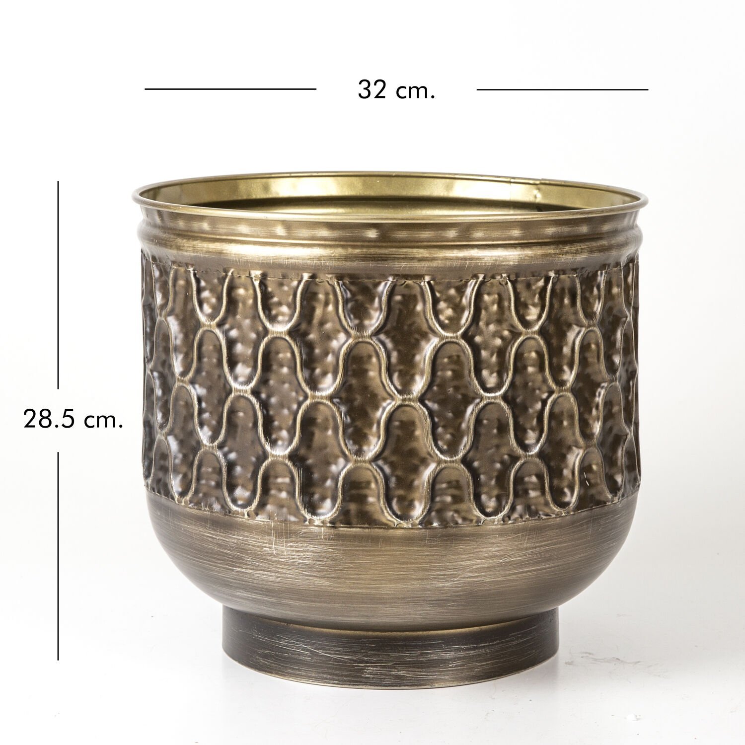 Kabartma Desenli Metal Çiçeklik Saksı Kahverengi 32x28,5x32 Cm.