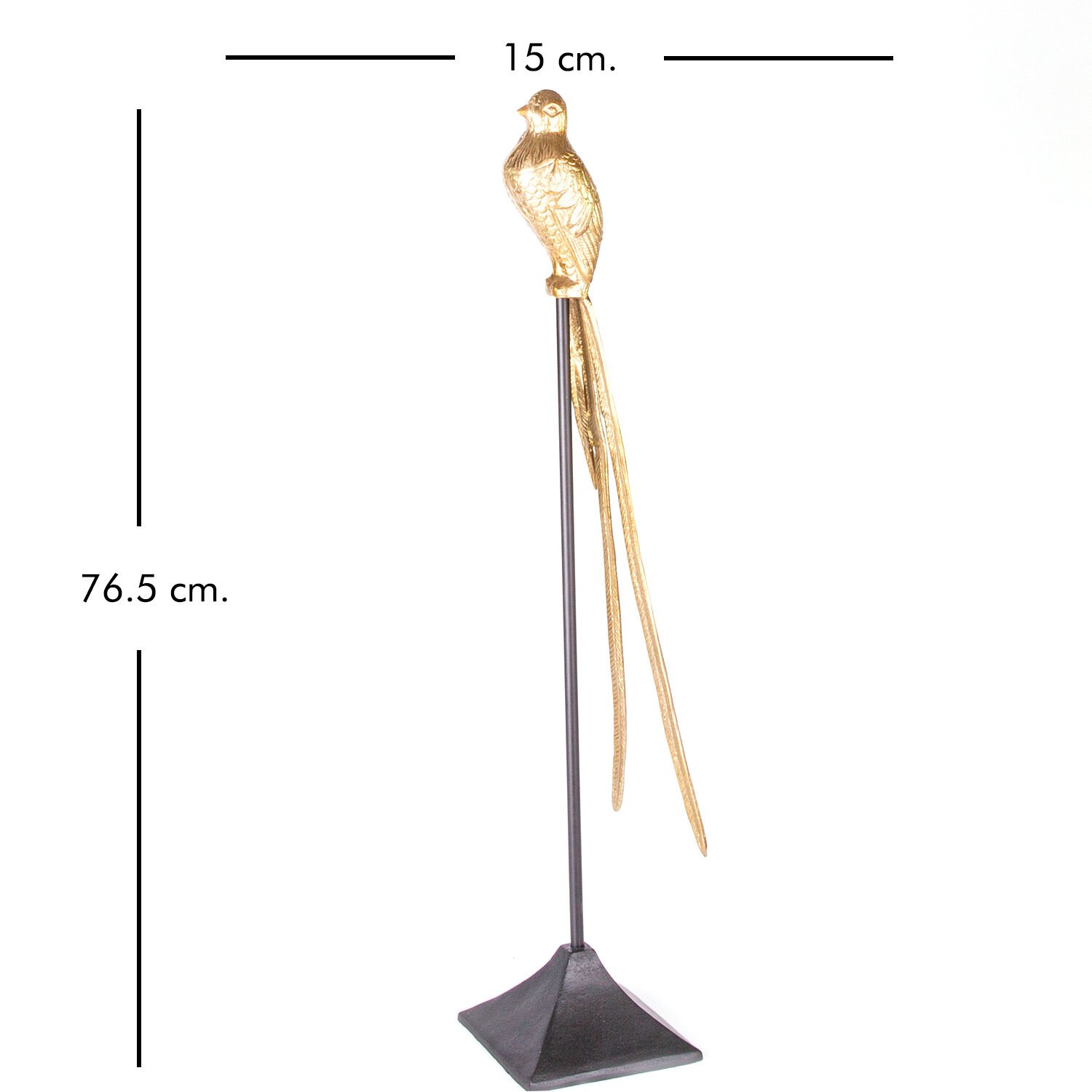 Metal Dekor Obje, Kuş Figürlü, Gold-Siyah - 15x15x76,5 cm