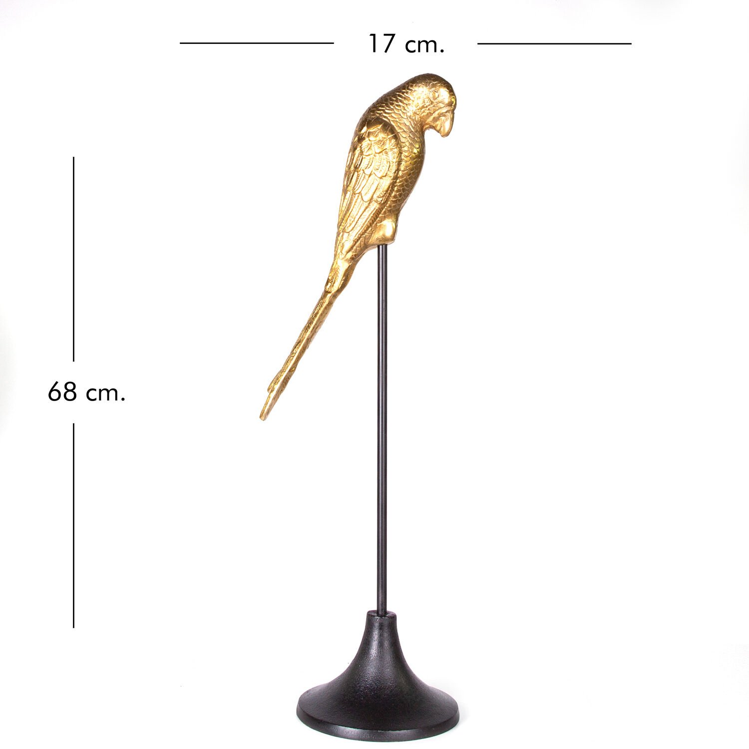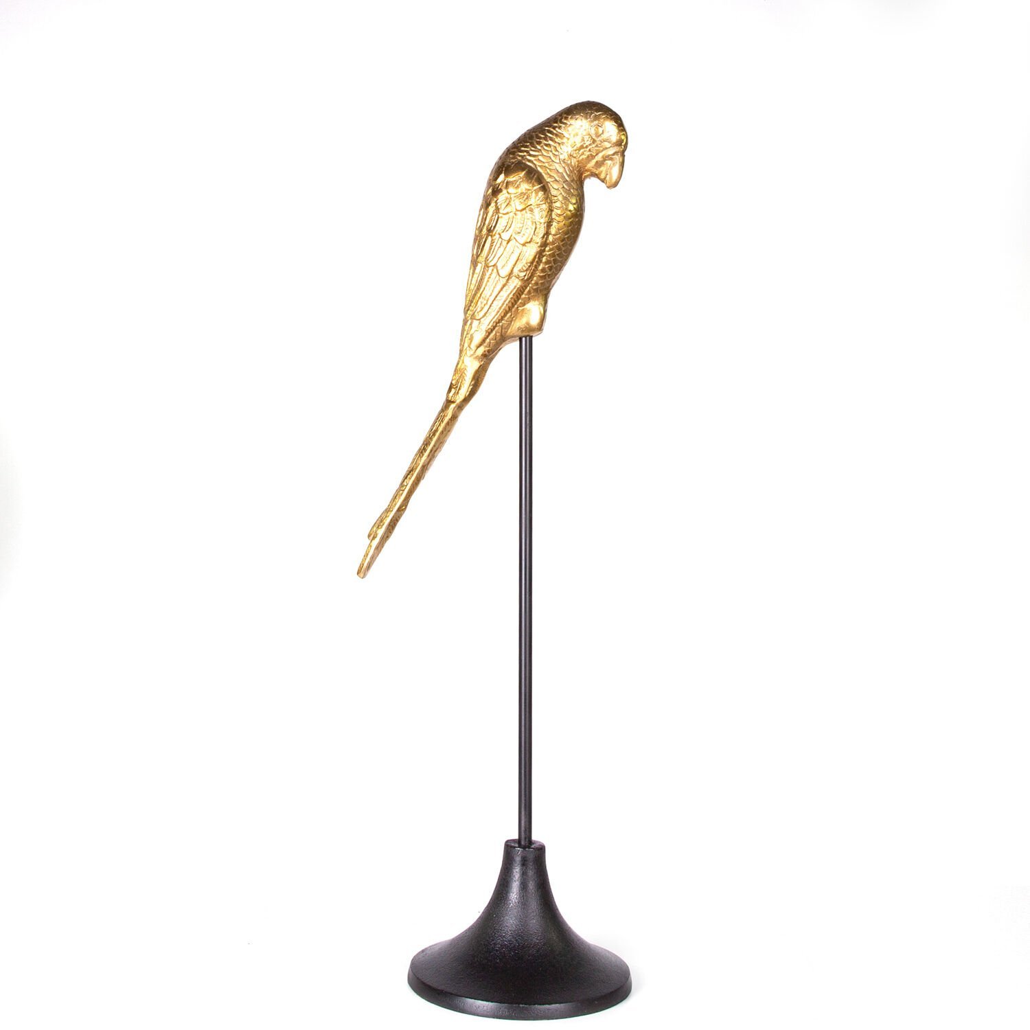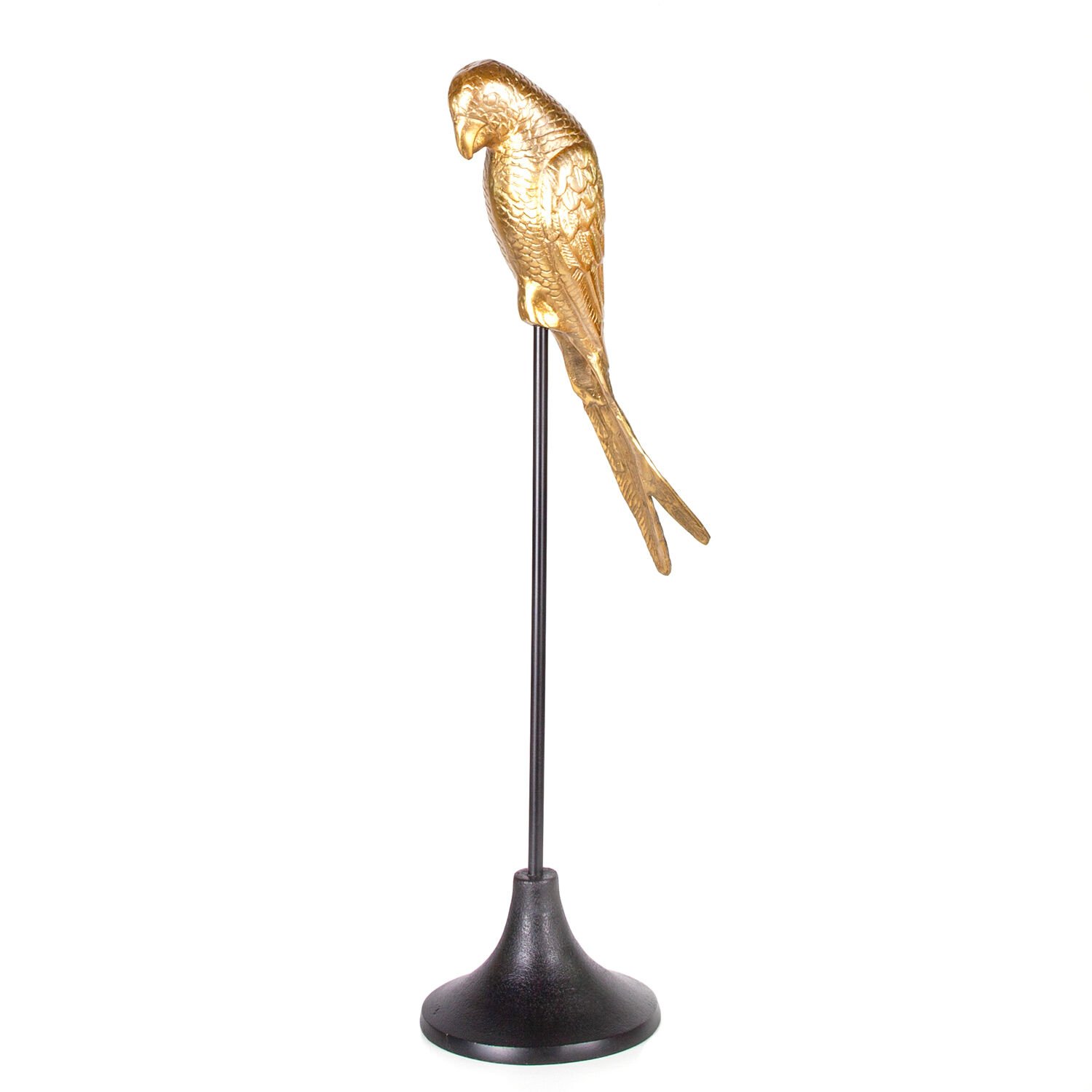 Metal Dekor Papağan, Gold-Siyah - 17x20x68 cm