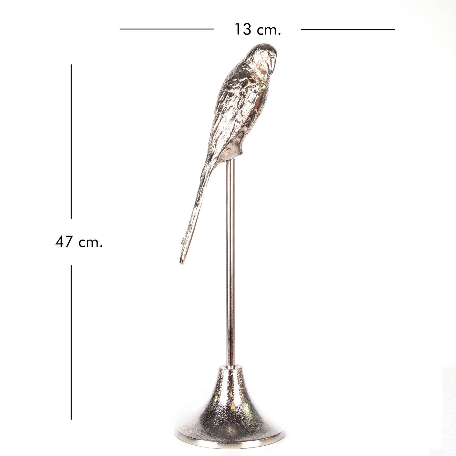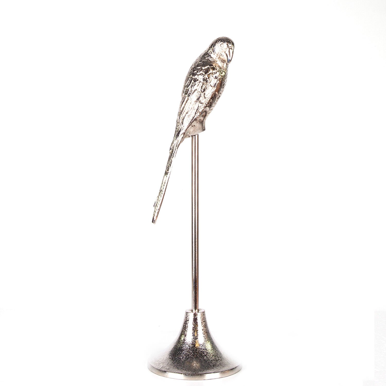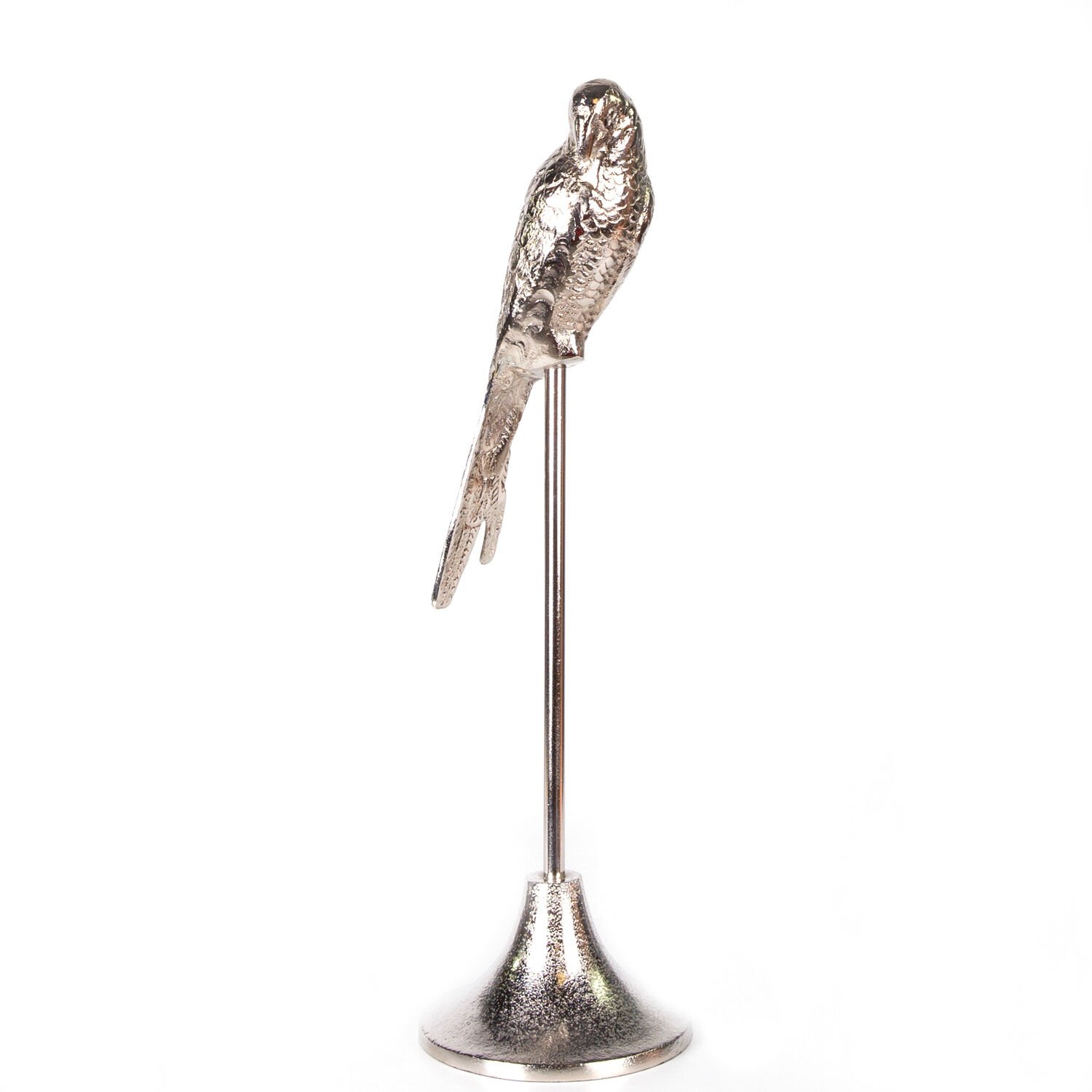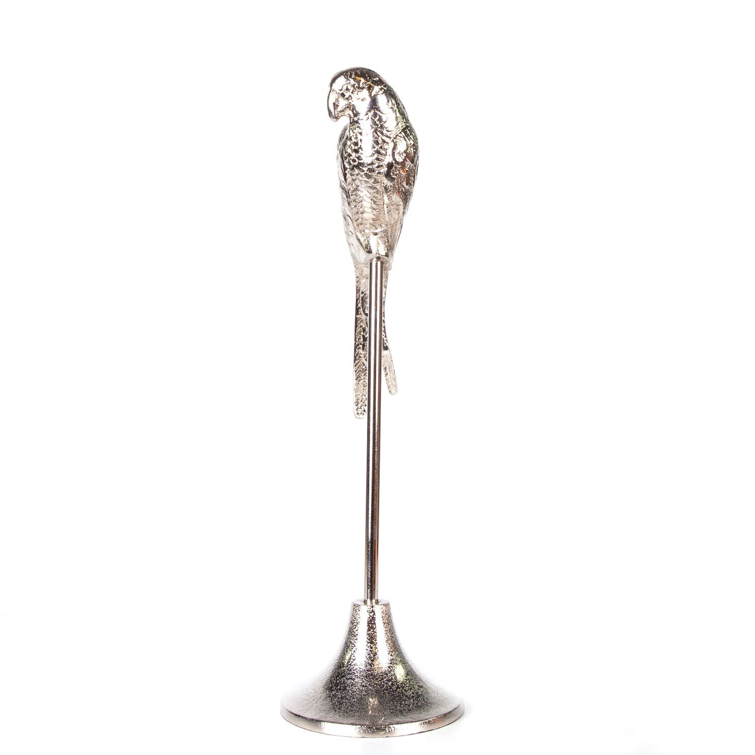 Metal Dekor Papağan Gümüş 13x13x47 Cm.