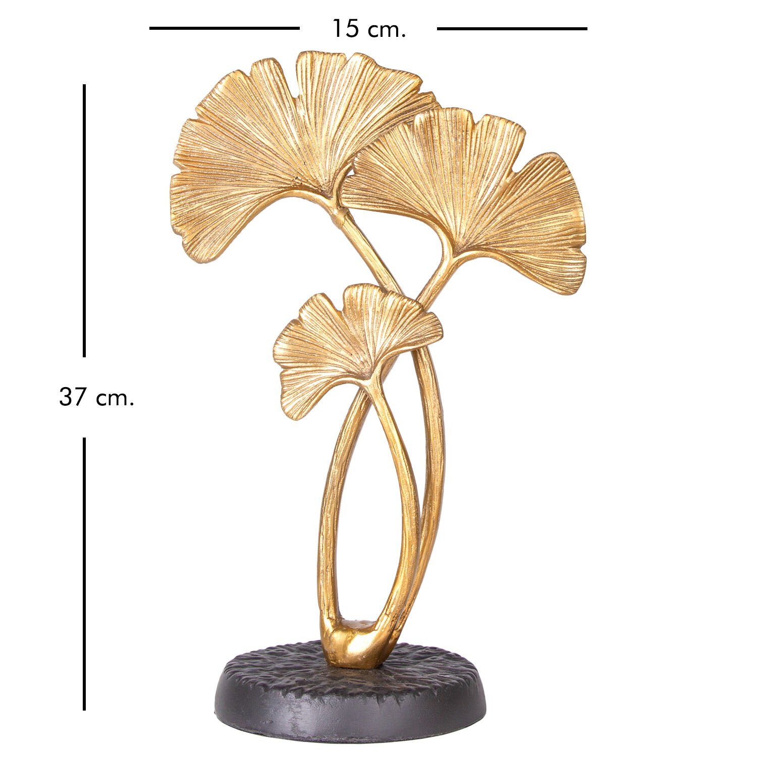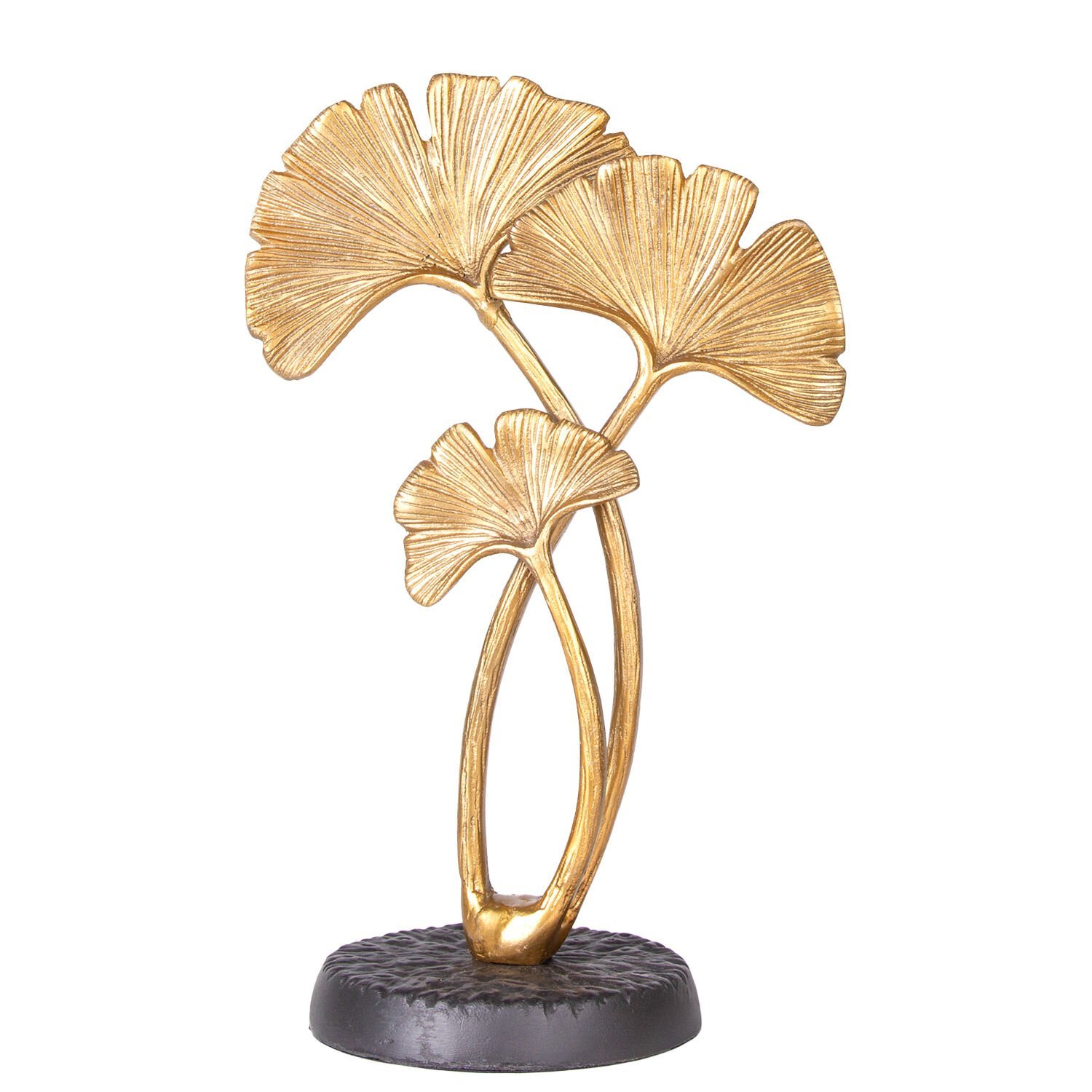 Metal Dekoratif Obje, Ginkgo Biloba Ağaç Figürlü, Gold-Siyah - 15x14x37 cm