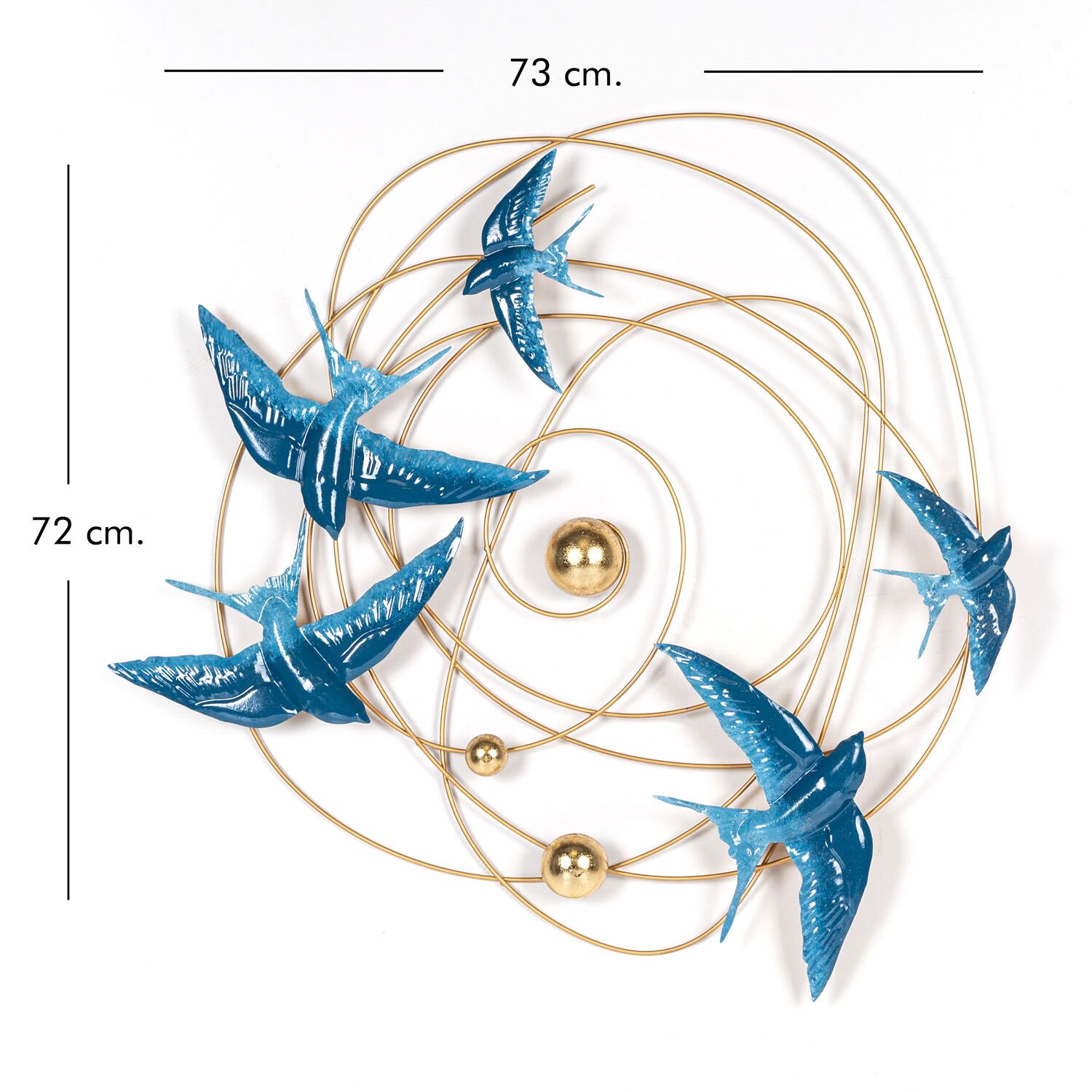 Metal Duvar Panosu, Kuş Figürlü, Gold-Mavi - 73x72x5 cm