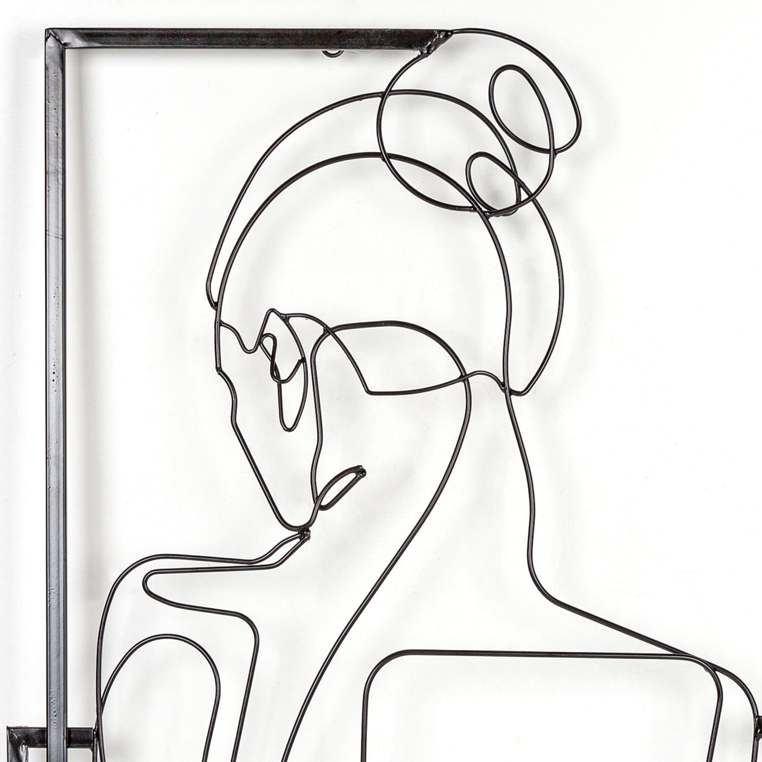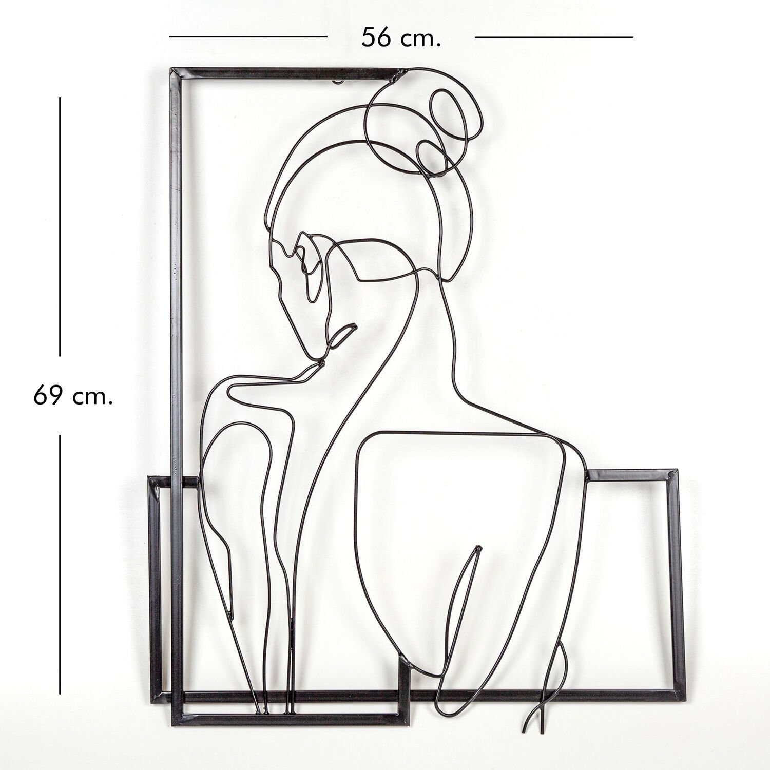 Metal Duvar Panosu, Sırtı Dönük Kadın Figürlü, Siyah - 56x69x3 cm